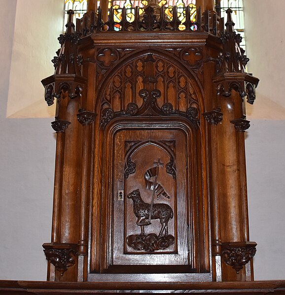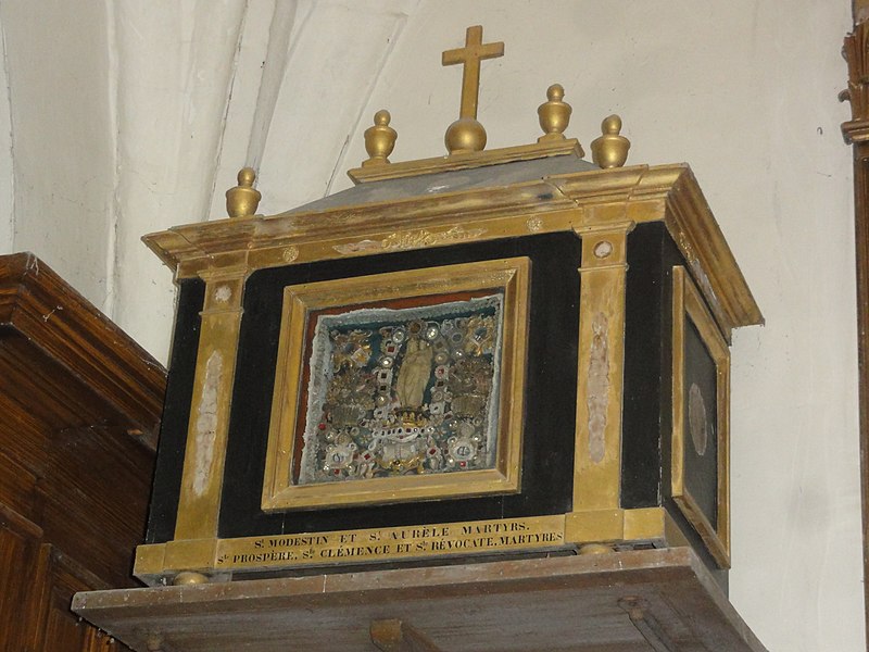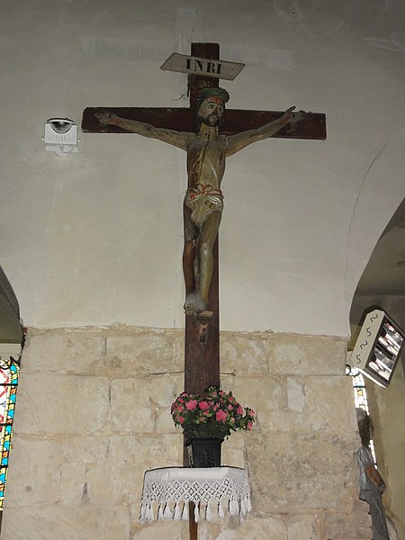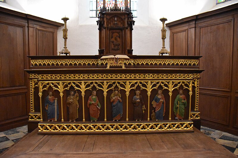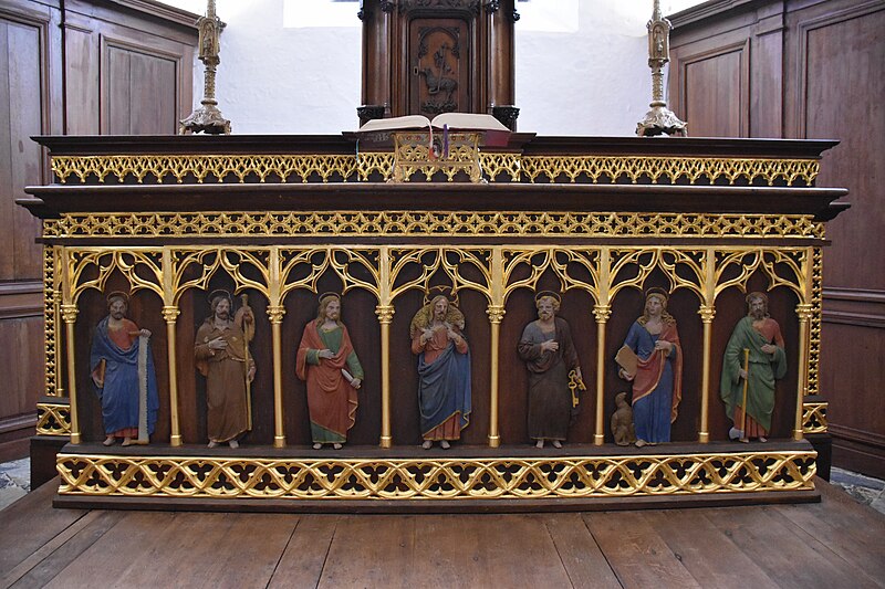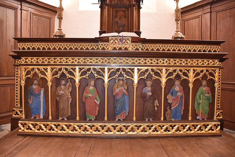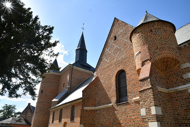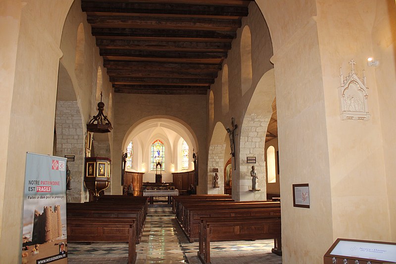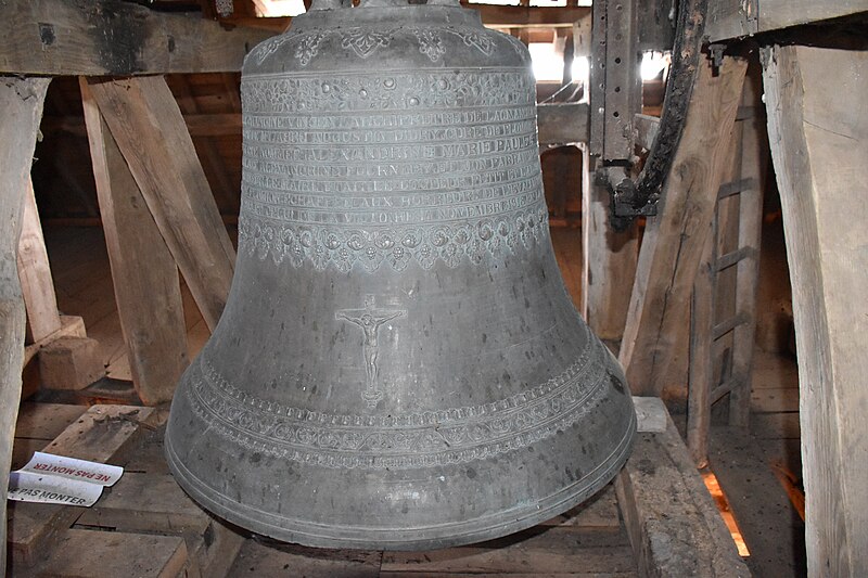Les cloches originelles ont été déposées et détruites par les Allemands pendant la Première Guerre mondiale ; la charpente, découpée à cet effet, témoigne encore de ce traumatisme pour la population. Enfin, la documentation iconographique rassemble des vues de la façade, de la nef, de l'escalier menant à la tour nord, de la salle des gardes du second étage de la tour sud, de l'extérieur sud‑est, d'une statuette de Notre‑Dame et d'un restaurateur au travail sur l'autel en octobre 2022.