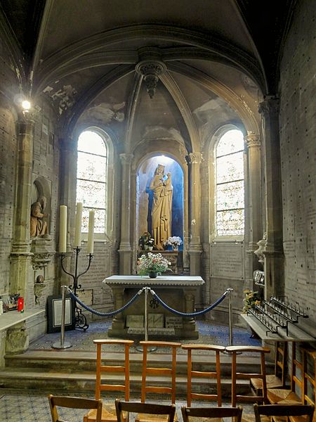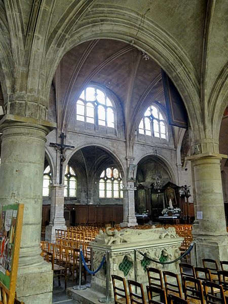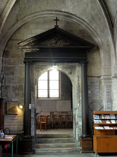 L'église Notre-Dame de Pontoise, dans le Val-d'Oise, est une paroisse catholique dont la réputation repose principalement sur le tombeau de saint Gauthier et une Vierge à l'Enfant du XIIIe siècle, réputée miraculeuse. Elle succède à une vaste basilique gothique rayonnante, autrefois admirée pour sa taille et la qualité de son architecture, dont peu de vestiges subsistent. Une statue, quelques fragments de dalles funéraires et des tapisseries constituent les rares témoins matériels de cet édifice disparu. La grande basilique avait été partiellement détruite par les Anglais au XVe siècle puis relevée, avant de périr durant le siège de Pontoise en juillet 1589 ; les circonstances exactes de sa destruction restent discutées. Après ces dégâts irréparables, la ville ne disposant plus des moyens nécessaires, on édifia rapidement une nouvelle église provisoire conçue pour être mise en œuvre à moindre coût. L'édifice actuel, d'un style Renaissance simplifié, semble devoir beaucoup à l'atelier des Le Mercier ; Nicolas Le Mercier est généralement retenu comme l'auteur du plan, son nom étant lié aux travaux et à la famille qui avait déjà œuvré sur la basilique antérieure. La nouvelle église, délibérément sobre et pragmatique, fut dédiée à la fin du XVIe siècle, avec la bénédiction de plusieurs autels et l'achèvement du pignon et du clocher au début du XVIIe siècle; le porche qui subsiste date de 1729. La statue médiévale de la Vierge, sauvée des décombres et mise à l'abri à l'abbaye Saint-Martin, a continué d'attirer pèlerins et dévotions : elle fut replacée dans la chapelle qui lui est aujourd'hui consacrée lors du rétablissement du culte après la Révolution. Au XIXe siècle, d'importants travaux de restauration intérieure furent menés, notamment en 1843-1844 avec la pose de clés de voûte, le bétonnage du sol et le renouvellement du mobilier ; des peintures murales furent ajoutées en 1895 et de nouveaux vitraux posés au tournant du XXe siècle. L'église a été inscrite au titre des monuments historiques en 1926. À la fin du XXe siècle un diagnostic mené par l'architecte en chef des monuments historiques propose un programme de restauration pluriannuel qui s'est déroulé dans les années 2000 : façade, chapelle de la Vierge, clocher, bas-côtés, chevet et sacristie ont été restaurés et les pierres dégradées remplacées par des pierres de Saint-Leu-d'Esserent et de Saint-Maximin ; les vitraux ont été démontés pour nettoyage et restauration. Ces travaux, qui ont respecté la lisibilité et la simplicité de l'édifice, ont été menés à terme en 2010. Malgré son apparence modeste et les contraintes de sa genèse, l'église Notre-Dame a ainsi traversé les siècles et conserve des éléments de grand intérêt historique et artistique issus de la basilique disparue et de ses propres campagnes de construction et de restauration.
