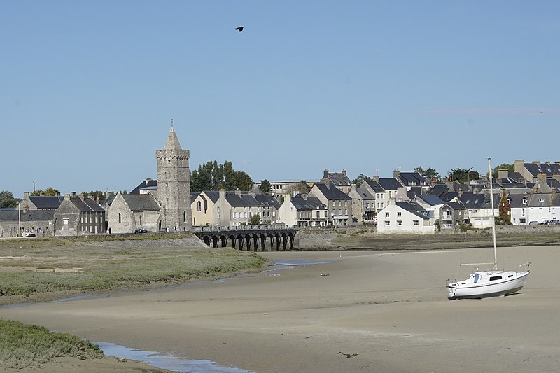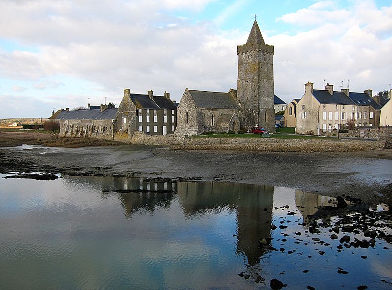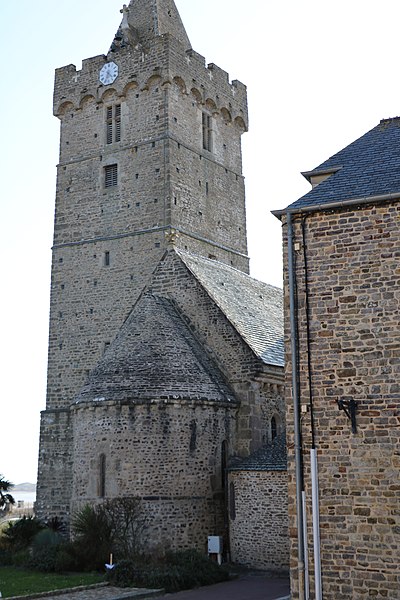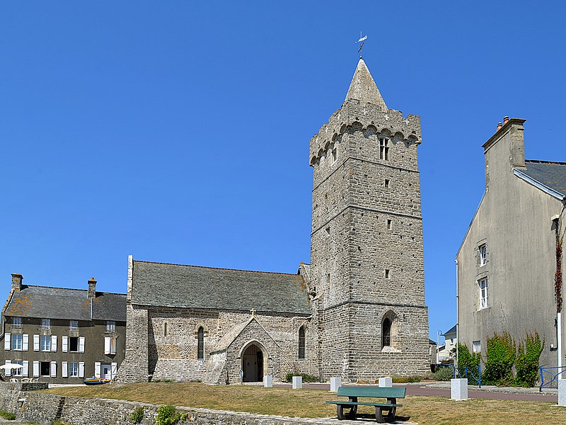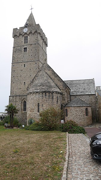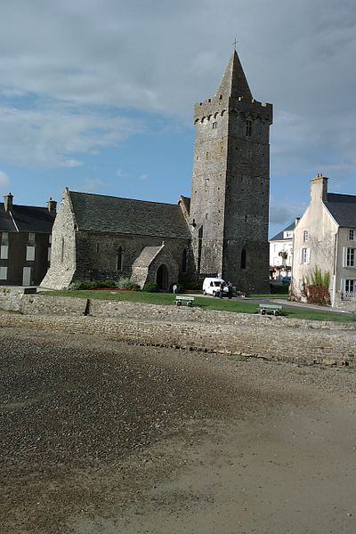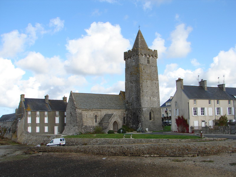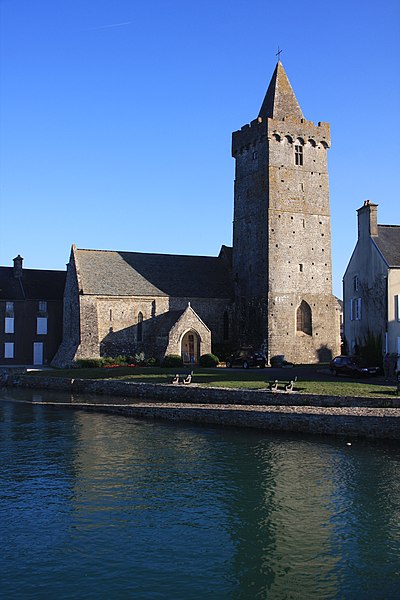 L'église Notre‑Dame de Portbail, ancien édifice catholique aujourd'hui désacralisé, se dresse sur la commune déléguée de Portbail, dans le département de la Manche, en bordure du havre et à proximité du pont aux treize arches et du baptistère paléochrétien. Classée au titre des monuments historiques, elle accueille des expositions d'avril à septembre. L'édifice, le plus ancien de la région, relève de l'époque romane et appartient à l'école de Lessay ; son appareil en arête-de-poisson et des remploi romans dans la façade nord‑ouest en témoignent. Lors de fouilles menées en 1968 sous la nef, on a mis au jour un hypocauste, vestige de thermes d'une villa du IIe siècle. Les chartes de l'abbaye de Saint‑Wandrille signalent l'existence de Port‑Bail au VIIe siècle et mentionnent un monastère détruit par les Normands en 856. En 1026, une donation place l'église au centre d'un « territoire d'abbaye » appelé Port Bahil ; elle fut ensuite donnée par Anquetil de Claids et son fils Robert à l'abbaye bénédictine de Lessay et devint un prieuré, déserté dans la seconde moitié du XIIIe siècle. La présence, à quelque 250 mètres, de l'église Saint‑Martin de Gouey reflète l'existence jusqu'en 1803 de deux paroisses distinctes, Portbail et Gouey. Restaurée à l'origine par l'acte de 1026, Notre‑Dame fut d'abord église conventuelle puis paroissiale, fonction qu'elle a cessé d'exercer en 1909 ; en 1665 Jacques Poërier reçut le patronage honoraire de Notre‑Dame et de l'église Saint‑Martin du Mesnil. L'édifice conserve une nef unique très simple du XIIe siècle, avec la décoration sculptée de ses grands arcs, et un chœur modifié par l'adjonction de deux chapelles : Sainte‑Barbe, ouest du XVe siècle qui forme la base de la tour, et la chapelle seigneuriale Saint‑Jacques du XVIe siècle. La tour clocher, hors‑œuvre et fortifiée, est couronnée d'un chemin de ronde crénelé en encorbellement sur de faux mâchicoulis à arcatures et surmontée d'une flèche pyramidale en pierre ; le transept et le porche méridional datent également du XVe siècle, le porche étant placé au sud et non à l'ouest comme il est habituel. L'église abrite une charpente en bois du XVe siècle, une litre funéraire peinte, des statues en pierre polychrome et des dalles funéraires du XVIe siècle, ainsi que de beaux chapiteaux romans historiés du XIIe siècle. La tour a servi de tour de guet et d'ouvrage de défense ; elle fait aujourd'hui office de point d'amer pour l'entrée du havre et apparaissait peinte en blanc sur des clichés du début du XXe siècle. La seule verrière figurée, intitulée « Cœur Immaculée de Marie », est répertoriée à l'Inventaire général du patrimoine culturel. Sur le mur nord, dans une chapelle, subsiste un fragment de litre funéraire portant les armes de la famille Hellouin, patrons honoraires en raison de leur fief de Lanquetot ; les Hellouin furent anoblis par lettres enregistrées en 1640 après l'achat en 1604 par Jean Hellouin d'une charge de conseiller du Roi. L'église, classée monument historique par arrêté du 10 juillet 1968, conserve en outre un mobilier comprenant une Vierge à l'Enfant et un saint Jacques du XVIe siècle ainsi que des verrières de Sylvie Gaudin (XXe siècle) et de Champigneulle (XIXe siècle).
