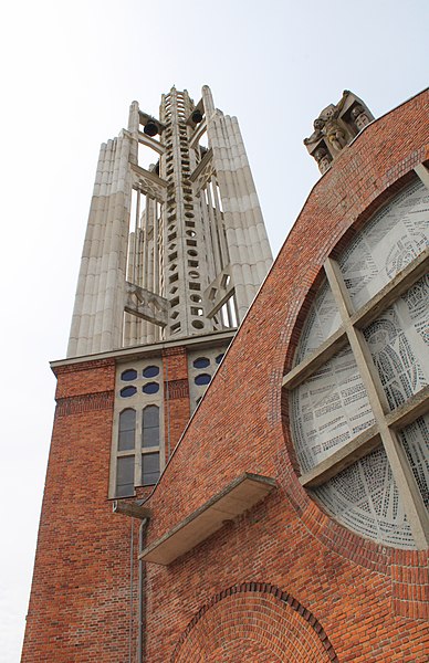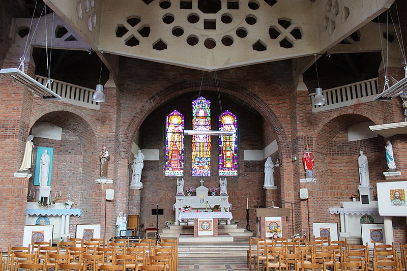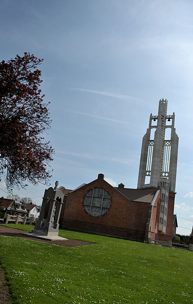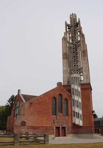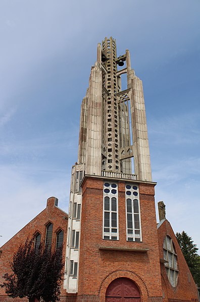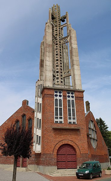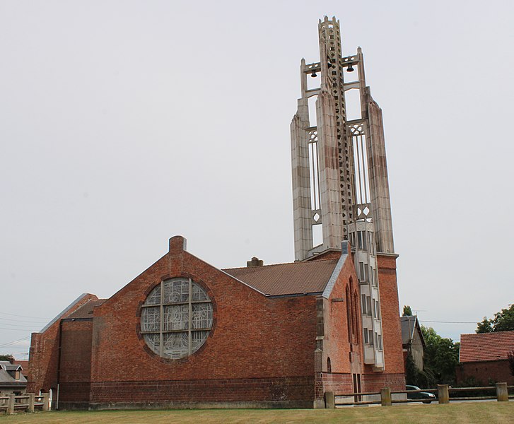 L'église Notre-Dame de Rocquigny est située sur la route départementale 20, à Rocquigny, dans le département du Pas-de-Calais en région Hauts-de-France. L'édifice reconstruit après sa destruction pendant la Première Guerre mondiale a été issu d'un concours remporté par l'architecte Jean-Louis Sourdeau. Sourdeau a conçu un bâtiment à l'esthétique nouvelle faisant largement appel au béton armé, notamment pour son clocher en campanile, unique dans la région. L'originalité du plan et la qualité du décor font de cette église un élément majeur de l'architecture de la Première Reconstruction dans le Pas-de-Calais. Le projet a été approuvé par le diocèse d'Arras le 6 mars 1928 et l'église a été édifiée au cours des années 1929-1930. Elle est ornée de vitraux en dalles de verre réalisés par Jean Gaudin et de mosaïques des frères Mauméjean ; la verrière de l'abside est signée Mayeur et Bertrand (Arras). L'ensemble de l'église a été classé au titre des monuments historiques le 7 septembre 2001. En raison de la dégradation du mortier des joints des briques et des éléments en béton armé du clocher, celui-ci a dû être déposé et des travaux de confortation provisoire ont été entrepris, l'édifice restant fragilisé. Il a été décidé de reconstruire la tour à partir d'éléments préfabriqués plutôt qu'avec les coffrages glissants utilisés lors de la construction initiale. Après dix ans de travaux, l'église a été inaugurée en 2013. En 2024, La Monnaie de Paris a émis une pièce souvenir à l'effigie de l'église Notre-Dame de Rocquigny. Les images et vues disponibles montrent l'extérieur (côté nord, mosaïque nord, structure du clocher, escalier en colimaçon menant au sommet) ainsi que l'intérieur (la nef vue depuis le balcon, la nef elle-même, les vitraux du chœur, la mosaïque de l'autel, la chaire, la station V du chemin de croix et un grand vitrail circulaire côté sud).