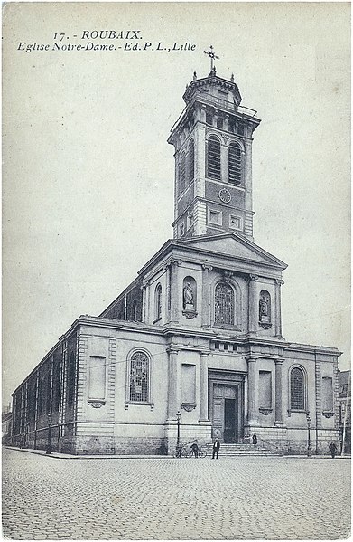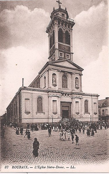 L'église Notre-Dame est une ancienne église catholique de Roubaix (Nord), inscrite à la liste supplémentaire des monuments historiques le 3 octobre 1983. Dédiée à Notre-Dame, elle a été désaffectée au culte en 1983 et louée par la municipalité à un traiteur roubaisien comme salle de banquets de 1992 à 2011. Bâtie en briques dans le style néo-classique d'après les plans d'Achille Dewarlez, architecte de la ville, elle a été érigée de 1842 à 1844 et consacrée en 1846. La construction répondait à la saturation de l'église Saint-Martin, située à 500 mètres, provoquée par l'afflux de main-d'œuvre dans les filatures. La nouvelle église, conçue pour accueillir jusqu'à trois mille fidèles, a vu sa paroisse érigée en entité indépendante en 1849 et définitivement fixée par décret en 1852 ; quarante ans plus tard elle desservait vingt-neuf mille paroissiens. En 1893, la paroisse comptait un curé assisté de cinq vicaires. La population roubaisienne était fortement attachée à la religion catholique jusque dans les années 1970, mais la pratique a diminué à partir de la décennie post-conciliaire, et le coût des réparations a conduit à la désaffectation avec l'accord du diocèse, qui a préféré conserver Saint-Martin. Inscrite in extremis aux Monuments historiques, l'église a ainsi échappé à la démolition ; la mairie ayant dépensé dix millions d'euros pour la restauration du conservatoire de Roubaix n'a cependant pas trouvé les 800 000 euros nécessaires à la réfection de la toiture, et l'édifice est depuis dans un état alarmant. Sur le plan architectural, l'édifice présente une façade de pierre calcaire à deux niveaux ; le niveau supérieur porte un fronton à la grecque soutenu par quatre colonnes ioniques, avec une fenêtre centrale encadrée de deux niches abritant des statues. Il s'agit d'une église sans transept, à longue nef flanquée de deux bas-côtés, surmontée d'un clocher de briques dont la flèche n'a pas été installée. Les vitraux sont signés du maître-verrier parisien Claudius Lavergne et réalisés par Girodon. L'orgue, conçu par Pierre-Alexandre Ducroquet et considéré comme le cinquième de France par ses dimensions, a obtenu une médaille d'or à l'Exposition universelle de Paris de 1855 ; acheté pour 35 000 francs de l'époque, il a été posé dans l'église en 1856. Cet instrument comprenait vingt-huit registres répartis sur trois claviers à mains et un clavier à pédales ; il a été restauré en 1876 puis démonté en 1996. La partie instrumentale de l'orgue et le buffet sont également inscrits aux monuments historiques, de même que la chaire à double escalier et divers objets liturgiques tels qu'un ostensoir, deux calices, plusieurs ciboires dont un émaillé, et des patènes.