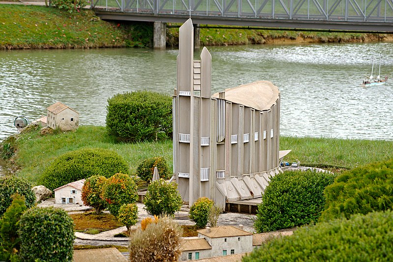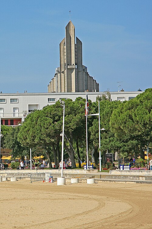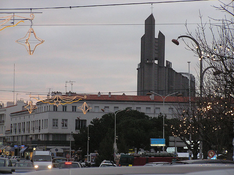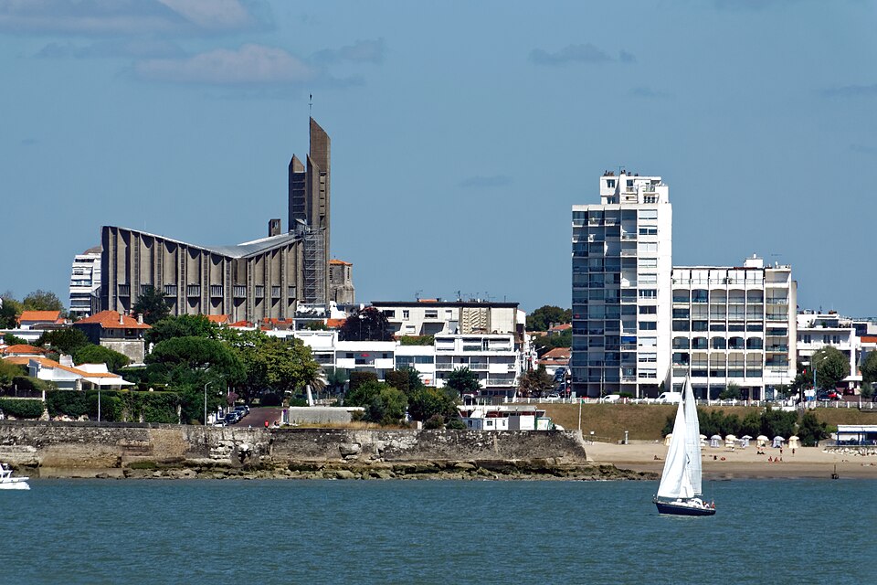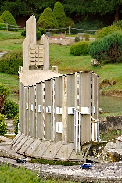 L'église Notre-Dame de Royan, située en Charente‑Maritime, a été élevée à partir de 1955 près de l'emplacement de l'ancien sanctuaire néo‑gothique détruit lors du bombardement du 5 janvier 1945 et inaugurée le 10 juillet 1958. Conçue par l'architecte Guillaume Gillet, assisté de Marc Hébrard, avec les études de béton armé assurées par Bernard Lafaille puis René Sarger, l'édifice est un exemple majeur de l'architecture moderne. Pensée comme un "ouvrage d'art" de la famille des silos, elle se signale par son plan elliptique et sa couverture en forme de selle de cheval, un paraboloïde hyperbolique constitué d'un voile mince de béton armé de 8 cm. Cette toiture est portée par des éléments verticaux en V du système Lafaille et contreventée par deux ceintures intérieures. La nef elliptique, longue de 45 mètres sur 22 mètres, peut accueillir environ 2 000 personnes et s'ouvre sur un déambulatoire et une tribune élevée à trois mètres du sol. Les voûtes paraboliques atteignent des hauteurs importantes, de l'ordre de 35–36 mètres aux extrémités et environ 28 mètres au centre, et l'édifice est dominé par un clocher élevé, surmonté d'une croix de six mètres. Les vastes verrières, d'une surface totale d'environ 500 m², sont l'œuvre des maîtres verriers Henri et Jean‑Baptiste Martin‑Granel ; d'autres vitraux, dont le vitrail du chœur représentant la Vierge de l'Apocalypse, sont de Claude Idoux. Construite en béton brut, l'église a été classée au titre des monuments historiques en 1988.
