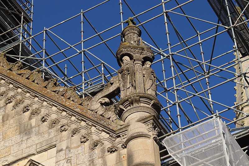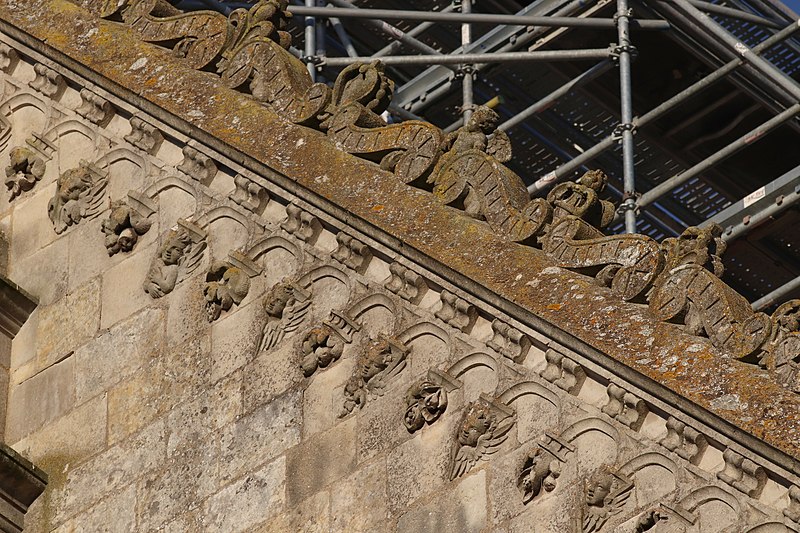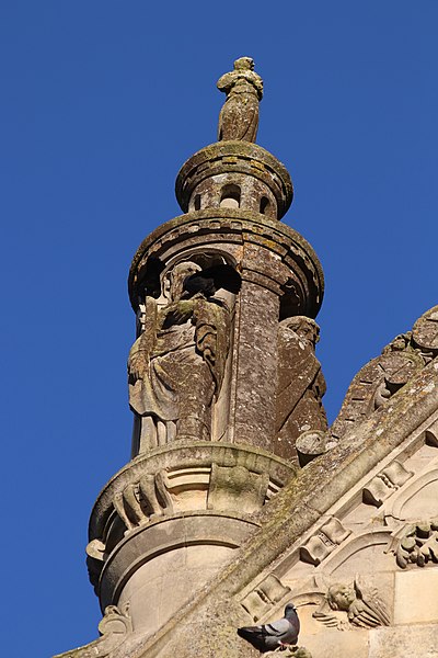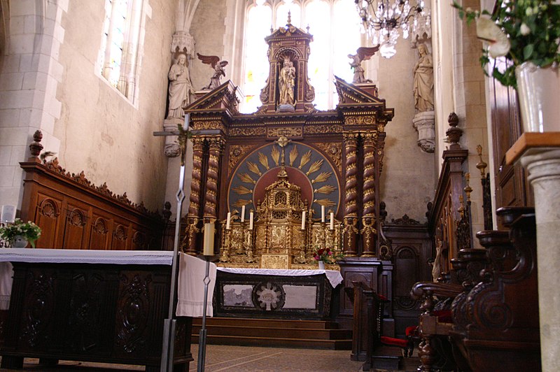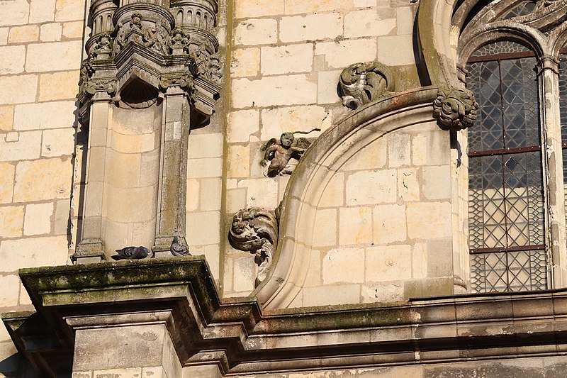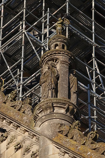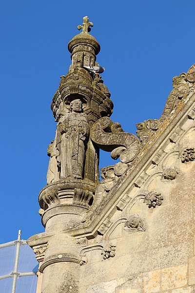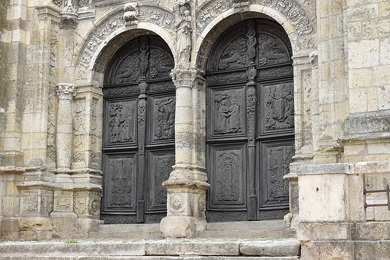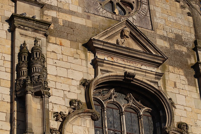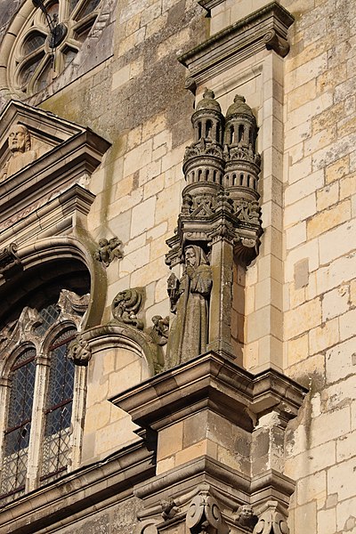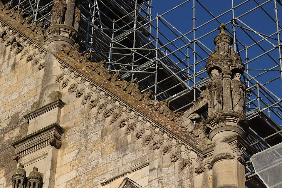 L’église Notre‑Dame de Saint‑Calais, située dans la Sarthe, date essentiellement des XVe et XVIe siècles et a été classée au titre des monuments historiques par la liste de 1840. Avant le XIIIe siècle, la paroisse semblait ne pas disposer d’une église propre et utilisait l’église abbatiale de l’abbaye de Saint‑Calais, fondée sous Childebert Ier au cours du haut Moyen Âge. Grégoire de Tours mentionne l’abbaye et la vie des premiers abbés est conservée dans les recueils hagiographiques qui évoquent saint Calais et saint Siviard ; un acte tardif prétend une donation datant de 515. La première église paroissiale était modeste, en bois, et le curé était nommé par l’abbé. La construction de l’édifice actuel commence à la fin du XVe siècle avec le chœur et les deux dernières travées de la nef, de style gothique, voûtées d’ogives triangulaires à clés simples retombant sur des piles octogonales. En 1518 on refait partiellement le pignon du chevet et on agrandit la fenêtre ; les trois premières travées du bas‑côté nord sont alors construites et achevées en 1520, suivies de l’extension de la nef et du collatéral sud. La façade est engagée à partir de 1522 ; des dates sculptées de 1540 et 1549 figurent sur le pignon. Les portes anciennes du portail central, en bois, conservent quatre scènes de la vie de la Vierge encadrées par une guirlande et portent les initiales M.G.L.H., attribuées à un maître menuisier, peut‑être Guillaume Le Houx, qui aurait également été l’auteur d’un banc d’œuvre aujourd’hui supprimé. Une sacristie est ajoutée au nord du chœur en 1592 et, en 1615, un oculus recevant une horloge du maître horloger du Mans Guillaume Pelard est percé dans le pignon ; l’horloge a probablement été modifiée en 1769. Le clocher, placé au droit de la cinquième travée du bas‑côté sud et commencé lors de la première campagne, abritait la chapelle de la sonnerie ornée au XVe siècle de peintures de l’Annonciation ; il communique avec la chapelle Notre‑Dame‑du‑Rosaire, établie autour de 1612 à l’initiative du curé frère Jean Girard et achevée par le maître maçon Gervais Billot, sur un plan carré de 5,80 m et voûtée d’une coupole surbaissée. La construction du clocher a été interrompue lors des guerres de religion et de l’incendie de l’abbaye en 1562, reprise en 1619 et parachevée en 1623 ; l’étage octogonal et la flèche ont été remaniés en 1667, au XVIIIe siècle et en 1893, la base ayant été refaite en 1889. Pendant la Révolution le mobilier de trésor fut détruit ou confisqué, mais l’édifice échappa aux dégradations ; après le Concordat de 1801 l’église fut rendue au culte et l’intérieur badigeonné. La façade en tuffeau a fait l’objet d’une restauration en 1841, Prosper Mérimée déclina une aide une dizaine d’années plus tard, et plusieurs campagnes de restauration ont eu lieu en 1880, 1891, 1893, 1919, 1922, puis une restauration de quatre ans, achevée et inaugurée le 29 février 2020, pour un montant de 2,2 millions d’euros. L’église présente une nef de cinq travées et un chœur de deux travées sans fenêtres latérales, terminé par un chevet plat, avec des bas‑côtés qui longent la nef et la première travée du chœur. Les trois premières travées de la nef et des collatéraux, construites après 1518, sont gothiques : les voûtes d’ogives à liernes possèdent des clés pendantes et retombent sur des piles rondes coiffées de chapiteaux d’inspiration ionique, et la décoration reprend des motifs italiens ; la façade est de style Renaissance. L’orgue est classé au titre des objets ; son buffet date du XVIIe siècle et a été classé en 1971, tandis que la partie instrumentale, réalisée en 1845 par la maison Daublaine‑Callinet, a été classée en 1973. Les vitraux comprennent notamment un carton d’Henri‑Marcel Magne représentant l’archevêque Louis Dubois présenté par saint Louis, ainsi que des verrières signées Hucher, probablement Ferdinand Hucher, datées de 1894 et représentant notamment sainte Lucie, saint Laurent et la Vierge du Rosaire avec saint Dominique et sainte Catherine de Sienne. Le suaire de Saint‑Calais est un tissu d’origine sassanide représentant une scène persane avec un arbre de vie stylisé ; le fond est bleu foncé et le dessin ocre jaune. Il enveloppait depuis 1171 des reliques de saint Calais et de saint Besorius et, selon un document de 1653, ces reliques furent alors conservées dans la chapelle du château de Blois ; les reliques transférées en 1792 à l’église de Saint‑Calais furent placées dans une châsse, dans laquelle un tissu a été retrouvé lors d’une ouverture en 1947, ce qui permet de supposer que le suaire primitif avait été découpé pour être réparti avec les reliques.