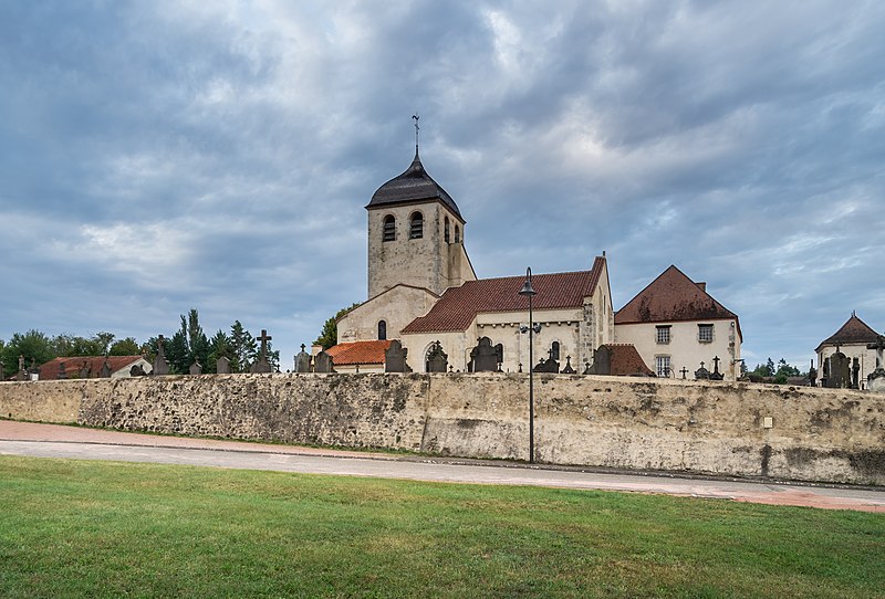 L'église Notre‑Dame se situe à Saint‑Germain‑des‑Fossés (Allier) et fait partie de l'ensemble du prieuré de la commune. Elle ne doit pas être confondue avec la basilique Notre‑Dame, établie en centre‑ville et devenue l'église paroissiale. L'édifice roman date du XIIe siècle et est classé au titre des monuments historiques depuis le 12 mai 1969. Sa nef comprend trois travées, est flanquée de bas‑côtés et voûtée en berceau sans doubleaux ; de grandes arcades en plein cintre relient la nef aux bas‑côtés, reposant sur des colonnes engagées insérées dans des piles rectangulaires. Le transept, non saillant, ouvre sur un chevet constitué d'une abside en hémicycle flanquée de deux absidioles. Le carré du transept est encadré de piliers cruciformes à colonnes engagées qui reçoivent les arcs en plein cintre ; la coupole de la croisée repose sur des trompes appuyées sur des tablettes horizontales. Les bas‑côtés sont couverts par des voûtes en quart de cercle. Une chapelle latérale a été ajoutée au nord au XVe siècle et, à l'extérieur, le porche en bois date du XVIe siècle ; quelques modillons subsistent sous la corniche du chevet. Le clocher, de plan carré et élevé sur la croisée, est percé de deux baies en plein cintre sur chaque face et est coiffé d'un dôme à impériale. Par ses dispositifs et ses proportions, l'édifice est caractéristique de l'architecture romane du Bourbonnais. L'intérieur conserve des peintures murales du XIIIe siècle. Une statue de la Vierge, autrefois placée dans l'absidiole nord et objet d'un pèlerinage le 2 juillet, a été transférée dans la nouvelle basilique. Depuis 1994, l'église a accueilli un orgue Haerpfer‑Erman de plus de 800 tuyaux ; après démontage pour déplacement, il a été entreposé et s'y trouve toujours.