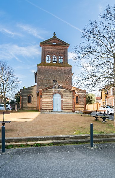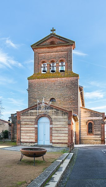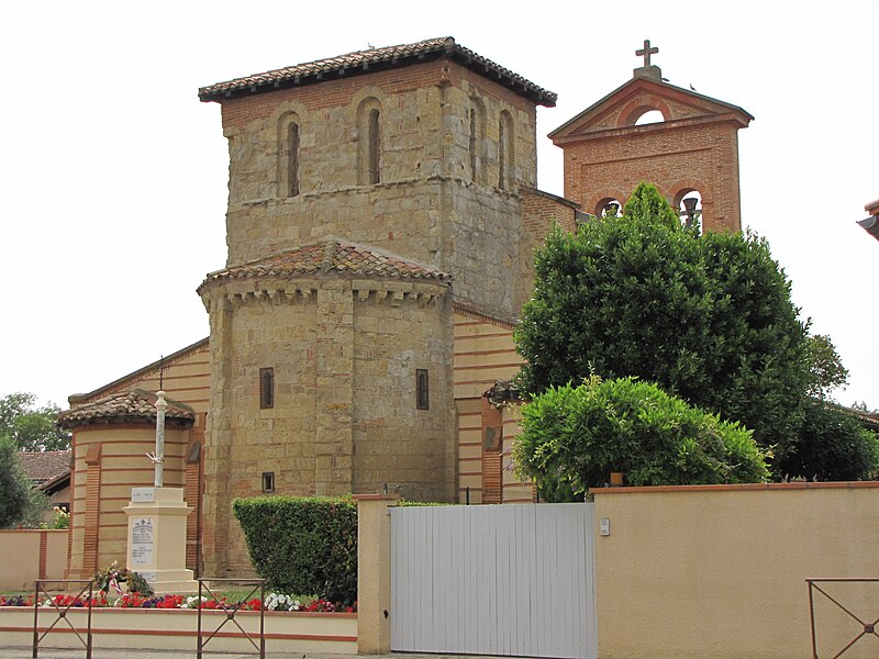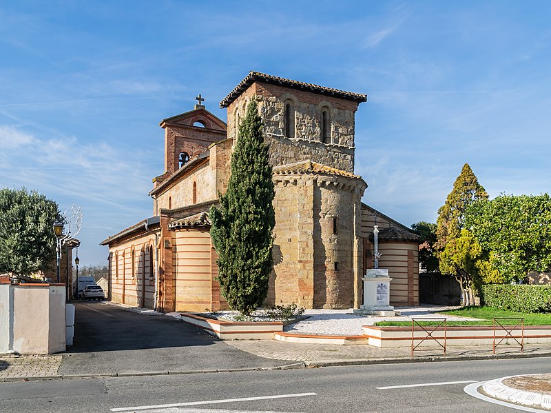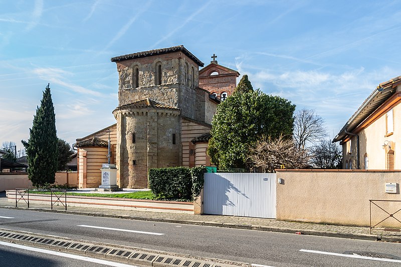 L'église Notre-Dame de Saubens, fondée à la fin du XIIe siècle par les Bénédictins de la Daurade de Toulouse, est un édifice de style roman classé monument historique depuis 1995. Les parties les plus anciennes sont le chevet et le clocher romans du XIIe siècle. La nef et les bas-côtés semblent appartenir aux XVIIe‑XIXe siècles selon les sources. De nombreux travaux ont été entrepris en 1816, 1836 et 1892 ; ceux de 1892, réalisés d'après les plans de Romestier, ont abouti à la construction du clocher‑mur du porche d'entrée et vraisemblablement à la modification des bas‑côtés. En 1901 des ouvertures furent percées pour recevoir les vitraux actuels. Le plan primitif, comme celui de beaucoup d'églises romanes, dérive de la basilique : une abside semi‑circulaire voûtée en cul‑de‑four précédée d'une travée rectangulaire forme le chœur, prolongé par une nef unique rectangulaire ; chapelles et sacristie ont été ajoutées ultérieurement. Jusqu'à la moitié du XIXe siècle, l'église était entourée de son cimetière. Construite en grès tendre du lit de la Garonne, elle figure parmi les rares églises conservées dans la plaine de la Garonne. Tout autour de l'abside, une corniche de modillons, quoique usée, montre un modillon à copeau, une tête de démon aux oreilles pointues, un oiseau aux ailes déployées, des personnages accroupis et la femme au serpent, symbole de luxure. Le clocher‑mur abrite une cloche de 1473, classée monument historique depuis 1914, décorée de trois bas‑reliefs représentant le Christ en pitié, une Vierge à l'Enfant et saint Michel terrassant le démon ; on y lit aussi une inscription évoquant Bernard de Gramont et les seigneurs de Saubens, ainsi qu'un sceau avec une cloche et un écusson, une cordelière guillochée ornée de roses et l'inscription AVE MARIA. Pendant la Révolution, l'édifice fut transformé en « Temple de la Raison » et la cloche descendue pour être fondue, sans être finalement transformée en canon. Rendue au culte au début du XIXe siècle, l'église était alors en mauvais état. Au début du XXe siècle, l'abbé Joseph Colombe réalisa au pochoir les peintures intérieures de la nef et des chapelles ; ces décors ont été restaurés avec l'aide de l'École des Beaux‑Arts de Toulouse et ont fait l'objet d'une inscription aux monuments historiques. Les bas‑côtés présentent des décors au soubassement composés de motifs géométriques et, sur les murs, de petites arcatures surmontées de décors floraux, chaque élément architectural étant souligné par un motif différent.