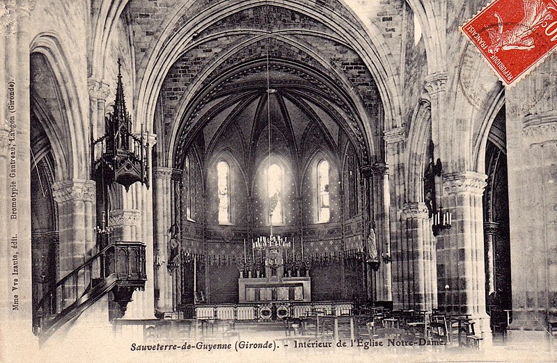 L'église Notre‑Dame est une église catholique située au cœur de Sauveterre‑de‑Guyenne, en Gironde, à l'angle des rues Saint‑Léger et du 8‑mai‑1945, à proximité de la place de la République, bordée d'arcades. L'édifice a été rebâti au XIXe siècle, mais son abside est plus ancienne. Cette abside gothique, à cinq pans coupés, est soutenue par des contreforts saillants. L'église présente plusieurs éléments remarquables visibles sur ses parements et dans son volume : le chevet au sud‑est, les vues latérales ouest et sud, le portail, la nef et un cadran canonial appuyé sur un contrefort au sud. Pour son abside du XIVe siècle, l'édifice a été classé au titre des monuments historiques par arrêté du 25 octobre 1920.