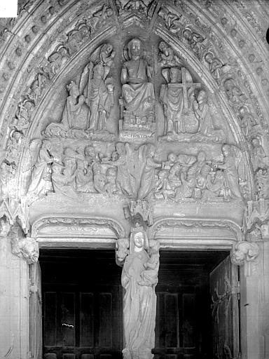 L’église Notre-Dame se situe au centre du bourg de Sillé‑le‑Guillaume, dans le département de la Sarthe, à proximité du château. Ancienne collégiale castrale, elle fut la chapelle seigneuriale des barons de Sillé et abrita jadis une collégiale. De style roman, l’édifice a fait l’objet d’adjonctions et de modifications jusqu’au XIXe siècle. L’accès principal se fait par un grand portail occidental dont le trumeau porte une Vierge à l’Enfant. Dans la voussure, les douze apôtres sont encore identifiables par leurs attributs respectifs. Le tympan représente le Jugement dernier : dans sa partie supérieure apparaît un Christ souffrant qui expose son flanc droit ; ses mains, aujourd’hui brisées, devaient autrefois être ouvertes pour montrer les plaies de la crucifixion. Deux anges tiennent la couronne d’épines, la croix, la lance et un clou, instruments de la Passion. Une inscription du XVIe siècle, « ad judicandum Christo Sedente Omnes resurgemus », souligne cette scène, tandis que la partie inférieure illustre la Résurrection des morts. Le linteau laissait autrefois deviner l’inscription Janua Coeli, « porte du ciel ». L’édifice est classé au titre des monuments historiques depuis le 19 janvier 1911 ; le portail occidental ainsi que son archivolte et son tympan constituent des éléments remarquables. L’église conserve également plusieurs objets d’art protégés au titre des monuments historiques, notamment des statues de la Vierge à l’Enfant, de saint Jean‑Baptiste, d’un diacre et de saint Jacques le Majeur.