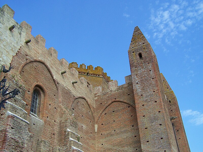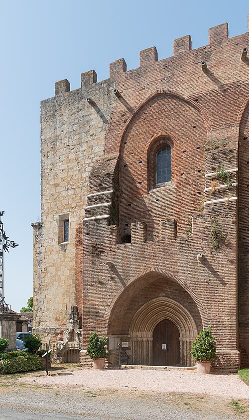 L'église Saint-Cérase, anciennement abbatiale de Simorre, est une construction en brique à plan carré, cantonnée de tourelles et coiffée d'un donjon, surmontée d'une tour octogonale et entourée de créneaux qui lui donnent l'allure d'une forteresse plus que d'un édifice religieux. Elle est sans doute édifiée à l'emplacement d'un bâtiment roman et conserve les reliques de saint Cérase. Le portail méridional, de style gothique, présente une archivolte à quatre ressauts et huit chapiteaux sculptés, ornés de figures comme chimères, hippocampes et basilics. Des verrières des XIVe et XVIe siècles enrichissent l'édifice et des vestiges de peintures murales subsistent dans la sacristie et le sacraire.