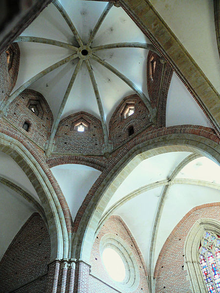 Au XIIIe siècle, de longs différends avec le comte d'Astarac sont tranchés par des arrêts du Conseil du Roi (1284, 1287) et une sanction arbitrale en 1289, permettant à l'abbaye de jouir de revenus qui financent la reconstruction de l'église. Sous l'abbatiat de Bernard II de Saint-Estier, les travaux débutent en 1292 et l'abbatiale est consacrée en 1309 ; l'achèvement se poursuit avec la construction du clocher qui obstrue les baies nord de la nef, ainsi que la mise en place du sacraire et de la sacristie de part et d'autre du chevet. En 1356, une chapelle dédiée à sainte Dode est élevée et reconstruite au XVIe siècle par Jean Marre, évêque de Condom, qui ajoute un vestibule et commande aussi les stalles. La nef est allongée d'une travée en 1442.