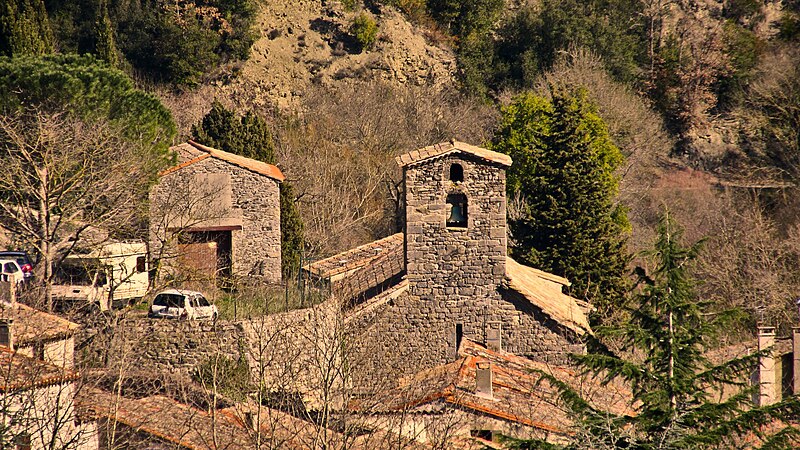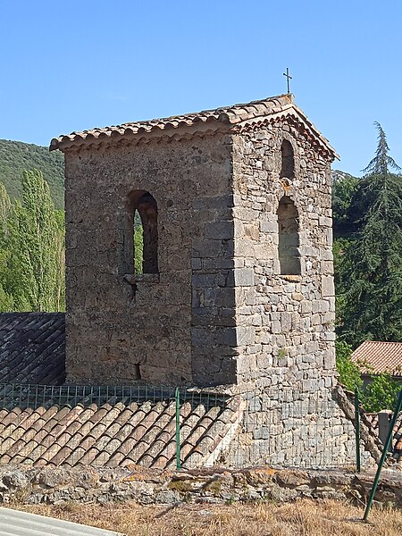 L'église Notre-Dame de Termes, dans l'Aude, est un édifice à nef unique dont le chevet plat a la même largeur que la nef. Les travées sont séparées par des arcs doubleaux. Au-dessus du mur pignon occidental s'élève un clocheton considéré comme aussi ancien que le mur qui le supporte : il s'agit d'une petite tour barlongue percée, sur chaque face, d'une baie en plein cintre, avec une baie supplémentaire à chaque pignon. L'édifice n'a connu que quelques interventions au XIXe siècle : en 1880 le portail a été déplacé du mur sud à l'ouest, les fenêtres actuelles ont été percées, la toiture réparée et des terrassements effectués au nord ; en 1890 le mur gouttereau nord a été légèrement surélevé. L'église est inscrite au titre des monuments historiques en 1951.