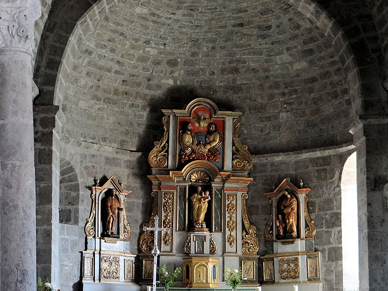 L'église Notre-Dame de Thérondels se situe dans la commune de Thérondels, en Aveyron. Construite au XIIe siècle, elle a été remaniée au XVe siècle par l'adjonction de chapelles et l'agrandissement du bas‑côté nord. L'édifice comprend une nef de trois travées, une partie centrale qui portait le clocher primitif, écroulé en 1600, ainsi qu'un chœur de deux travées. L'abside est à neuf pans à l'extérieur et demi‑circulaire à l'intérieur, voûtée en cul‑de‑four. Les arcades de communication ont été réalisées en sous‑œuvre tout en conservant le berceau roman ; on note des culs‑de‑lampe et des chapiteaux sculptés. Le clocher actuel, du XIXe siècle, est caractéristique de l'architecture rouerguate.