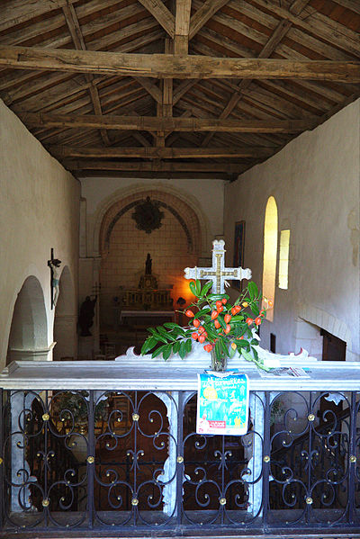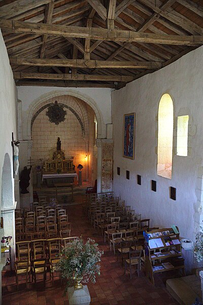 Le mobilier comprend la Vierge noire en noyer, une Madone assise portant l'Enfant datée du XIIIe ou XIVe siècle et liée au pèlerinage médiéval ; cette statue figure sur un sceau paroissial et a été classée comme objet le 30 novembre 1908. L'église conserve également une statue et une fresque représentant le pape Urbain II ; le socle de la statue est un autel votif gallo‑romain orné de branches de laurier, utilisé autrefois comme bénitier avant de servir de piédestal. Parmi les autres éléments figurent une toile moderne de Pierre Théron, plusieurs vitraux, trois autels (dont l'autel majeur et un autel dans le bas‑côté nord) et des fonts baptismaux, ainsi que des éléments liturgiques anciens.