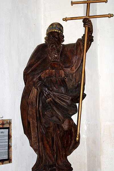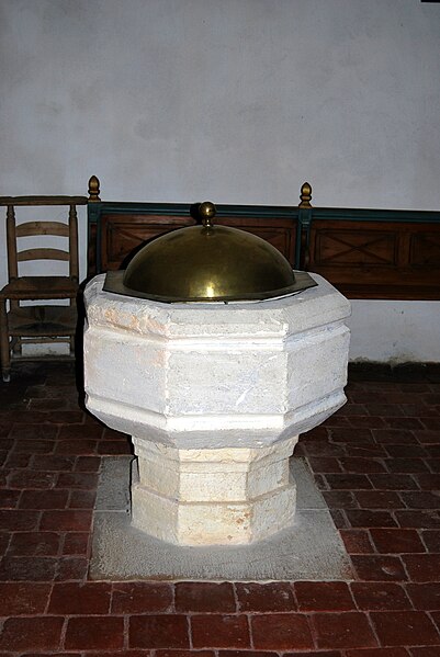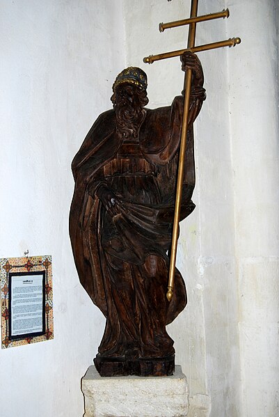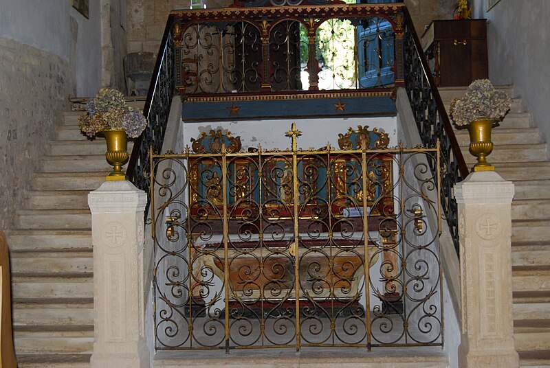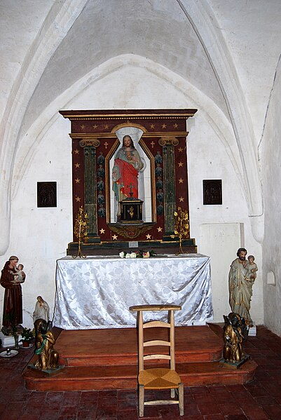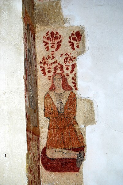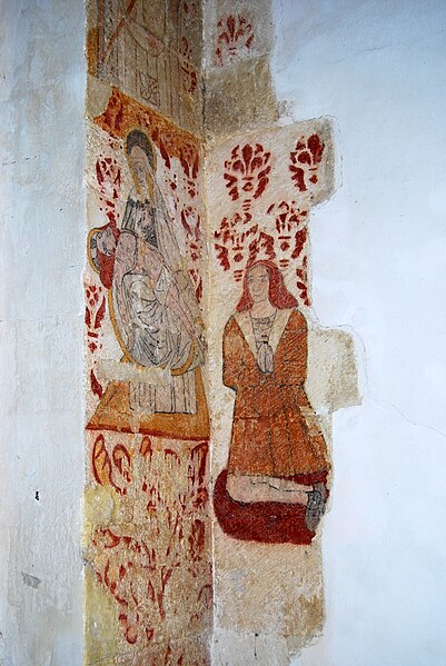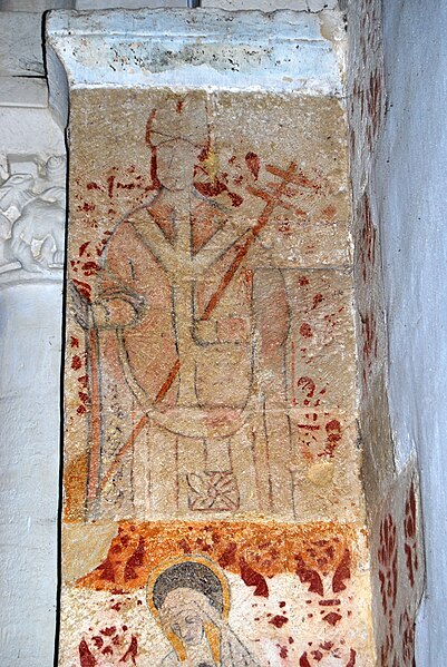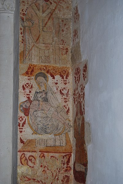 Des peintures murales du XVIe siècle figuraient sur un grand panneau du mur sud de la nef et ont été redécouvertes en 1879 lors de restaurations ; elles n'ont pas été conservées, mais le relevé de l'historien Émilien Piganeau a transcrit une inscription mentionnant l'année 1507 et le nom du donateur, Robert Courraut. Il subsiste aujourd'hui trois sujets identifiés : un prélat probablement reconnu comme le pape Urbain II, une Pietà et le donateur agenouillé.