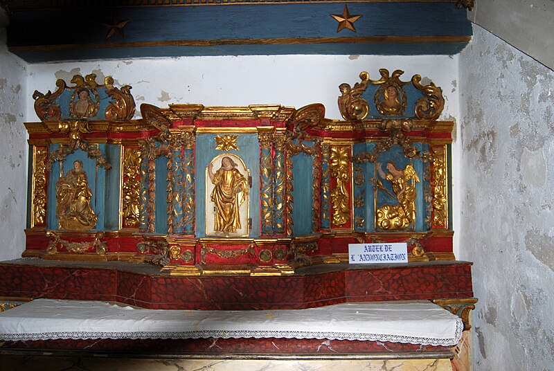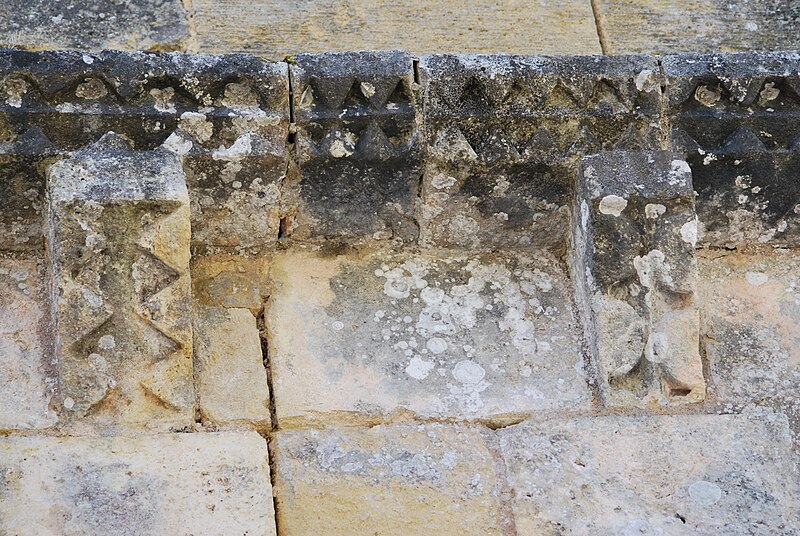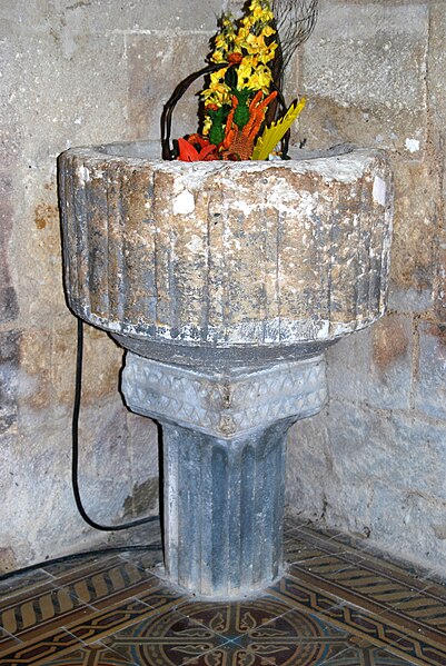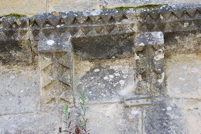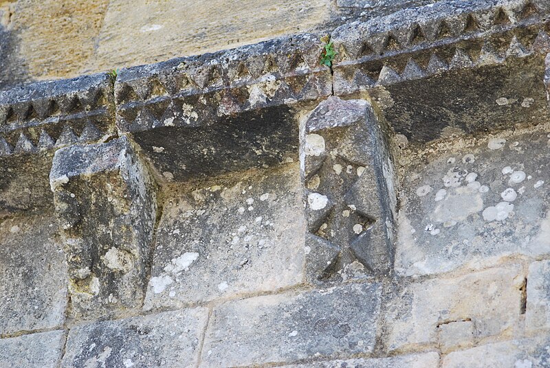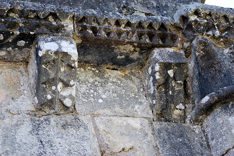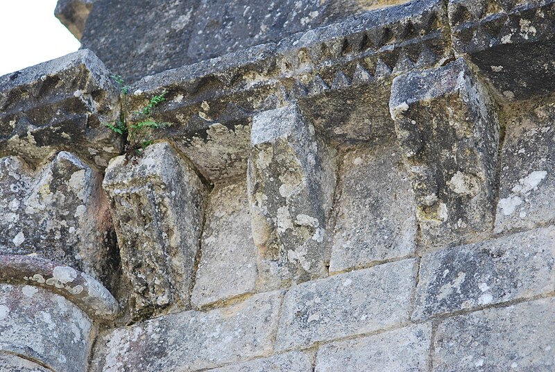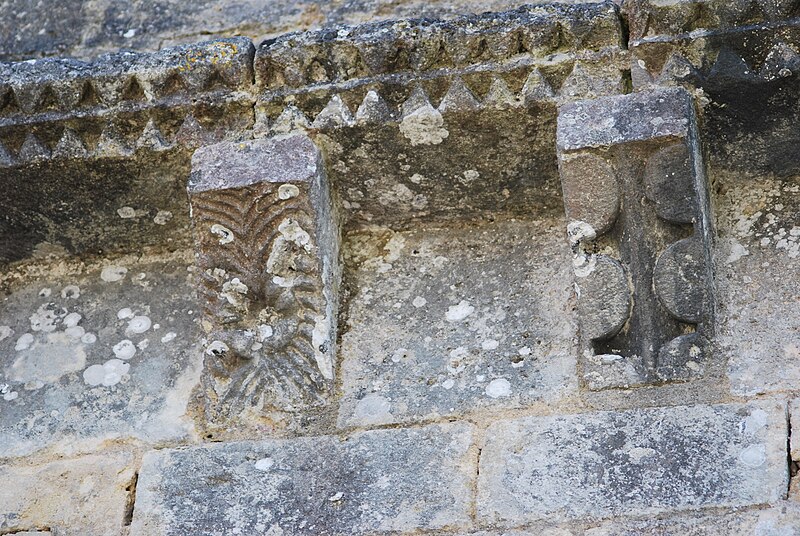 L'ornementation sculptée romane est particulièrement riche au portail, où quatre chapiteaux — dont trois historiés —, une archivolte externe comportant vingt sujets et les deux chapiteaux de l'arc triomphal constituent le programme principal. Le décor secondaire, très abîmé, comprend deux colonnes encadrant la façade, de grandes corbeilles sous la corniche ornée de dents de loup et une série de treize modillons à motifs géométriques ainsi qu'un modillon à tête humaine.
