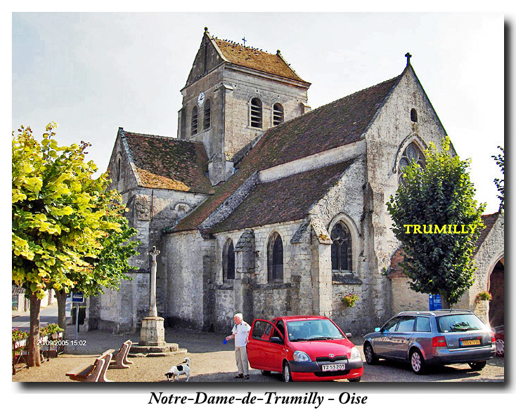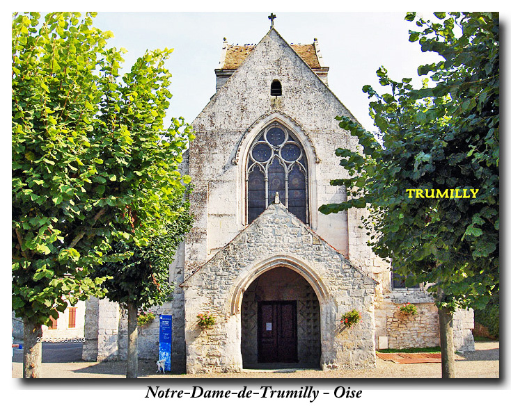 L'église Notre-Dame de Trumilly, dans l'Oise, conserve un portail roman de la fin du XIe siècle qui atteste de l'ancienneté du lieu. Elle résulte de la transformation gothique d'une seconde église romane de la première moitié du XIIe siècle, puis d'une série d'évolutions menées en plusieurs campagnes. Un chœur rayonnant de grande qualité, daté des années 1230/1240, illustre une recherche architecturale et une exécution rares pour une petite église rurale. Le croisillon sud fut reconstruit peu après l'achèvement du chœur, puis les parties plus anciennes furent remaniées et voûtées en ogives, aboutissant à un ensemble harmonieux malgré six campagnes distinctes. Le clocher primitif disparut et fut remplacé peu avant la Révolution par une tour datée 1789, de facture classique tout en rappelant des clochers romans simples. Classée au titre des monuments historiques par arrêté du 22 juillet 1914, l'église a été peu restaurée jusqu'à la fin du XXe siècle et reste remarquable par son authenticité ; elle dépend aujourd'hui de la paroisse Saint‑Sébastien de Crépy‑en‑Valois.