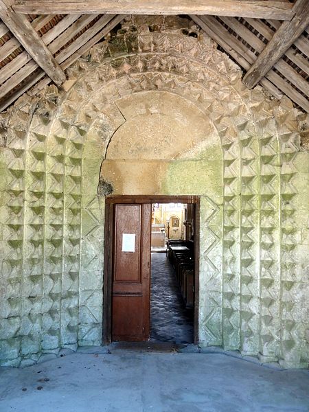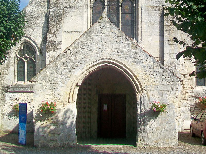 Extérieurement, la façade ouest est flanquée de contreforts et couronnée d'un pignon surmonté d'une petite croix en pierre ; le porche ouvre en arc en tiers‑point sur un portail à cinq archivoltes où apparaissent bâtons brisés et pointes de diamant. Le croisillon nord conserve un vestige de baie romane en plein cintre, et le chœur se distingue par des fenêtres occupant pleinement l'espace entre contreforts et par une corniche ornée de moulures en noeuds de ruban. Les fenêtres de l'église se répartissent en quatre types : les baies raffinées du chœur, à deux lancettes et oculus hexalobé ; une variante unique dans le croisillon nord avec un quatre‑feuilles ; des larges baies à trois lancettes et oculi circulaires datant de la seconde moitié du XIIIe siècle ; et enfin des lancettes plus simples des bas‑côtés couronnées d'un oculus en trèfle.