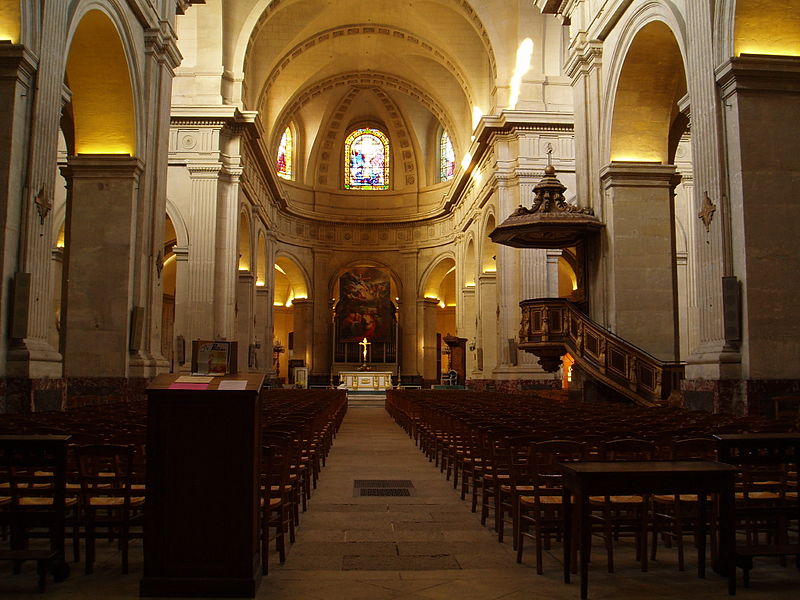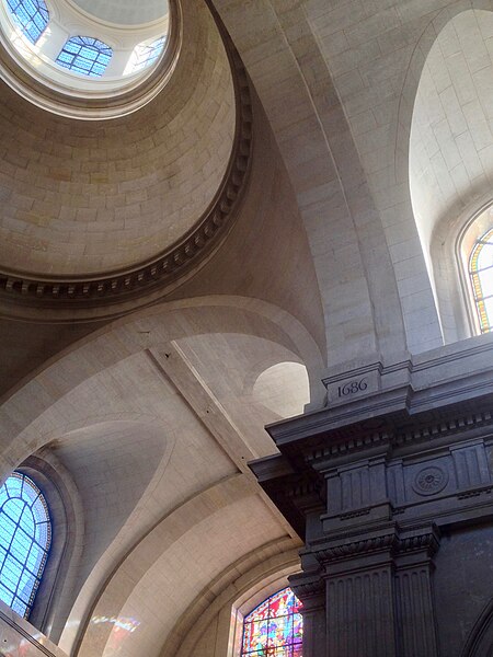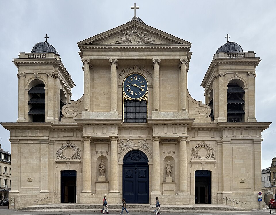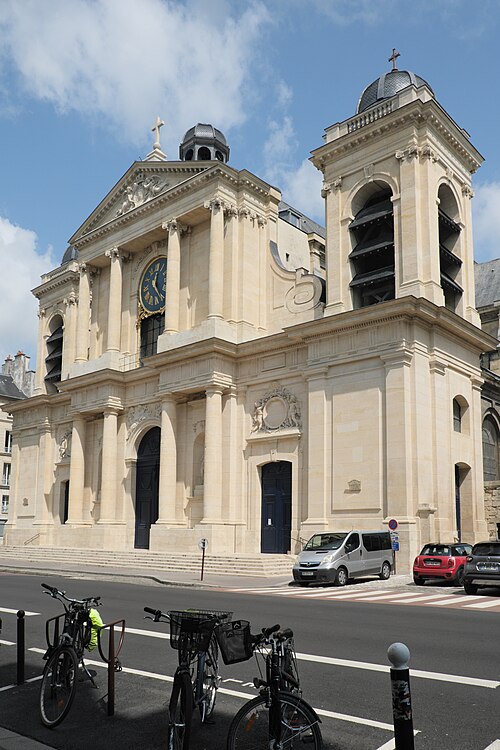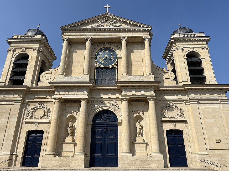 L'église Notre-Dame de Versailles, située rue de la Paroisse dans le quartier Notre-Dame (Yvelines), est la paroisse du château de Versailles ; sa façade donne sur la rue Hoche. Commandée par Louis XIV en 1684, sa construction a été confiée à Jules Hardouin‑Mansart et réalisée entre 1684 et 1686 ; elle a été consacrée le 30 octobre 1686 sous le vocable « Notre‑Dame en son Assomption ». L'édifice adopte un plan classique : une nef à trois vaisseaux flanquée de chapelles latérales, un transept saillant, une coupole à la croisée du transept, un chœur entouré d'un déambulatoire et de chapelles rayonnantes. Sa façade s'inspire de celle du Gesù à Rome et les sculptures sont dues à Pierre Mazzeline et Noël Jouvenet. La paroisse, desservie à l'origine par douze lazaristes attachés à la chapelle royale, a enregistré dans ses registres de nombreux actes concernant la famille royale, notamment les baptêmes de plusieurs souverains et princes (parmi eux Louis XV, Louis XVI, Louis XVII, Louis XVIII, Charles X, Louis XIX, Louis‑Philippe Ier et Philippe V d'Espagne), des mariages princiers et les sépultures de Louis XIV et de Louis XV. Le 4 mai 1789, la procession inaugurale des États généraux part de Notre‑Dame ; pendant la Révolution l'église est pillée et vidée de son mobilier, puis transformée en temple de la Raison en 1793 et utilisée comme lieu de culte décadaire. Déclarée cathédrale en 1791, elle voit toutefois le rôle de cathédrale du nouveau diocèse attribué à l'église Saint‑Louis de Versailles à la fin de la période révolutionnaire ; l'édifice est rendu au culte en 1800 et la croix est rétablie sur sa coupole en 1802. En janvier 1805, le pape Pie VII se rend à Versailles et déclare à la foule : « Est‑ce donc là ce peuple français que l’on disait si irréligieux ? » Au XIXe siècle, l'église est progressivement remeublée et restaurée ; en 1818 on y installe le cénotaphe du comte de Vergennes. De 1858 à 1873, l'architecte Ernest Le Poittevin construit une chapelle axiale consacrée au Sacré‑Cœur et réaménage le chœur ; cette chapelle de plan circulaire, couverte d'une coupole, reprend le thème des chapelles mariales classiques et son tambour est éclairé par des baies ornées de vitraux néo‑Renaissance. L'édifice est classé au titre des monuments historiques depuis le 4 août 2005. En 2021, une horloge en fonte datée de 1763 et commandée par Louis XV, retrouvée en pièces détachées dans un garage de l'avenue de Paris, a été identifiée comme ayant autrefois orné l'église ; après examen des éléments — l'aiguille mesure 1,50 mètre et le cadran a été estimé à 3 mètres — la municipalité prévoit de la remonter et d'en choisir un lieu d'exposition. L'église conserve également un Christ en croix de marbre de 1690 par Laurent Magnier, entouré de statues de la Vierge et de saint Jean ajoutées ultérieurement ; les statues originelles provenant du prieuré du Val‑Saint‑Éloi sont conservées à l'église Saint‑Étienne de Chilly‑Mazarin, et le monument funéraire de Vergennes occupe une chapelle latérale. Depuis sa fondation en 1686 la paroisse a compté trente‑deux curés ; parmi les premiers et les plus notables figurent le père François Hébert, curé de 1686 à 1704 avant d'être nommé évêque d'Agen, et plusieurs prêtres présents aux cérémonies royales ; le curé actuel est le père Guillaume Boidot, en poste depuis 2022. L'église demeure un lieu de culte actif et une composante importante du patrimoine historique et architectural de Versailles.