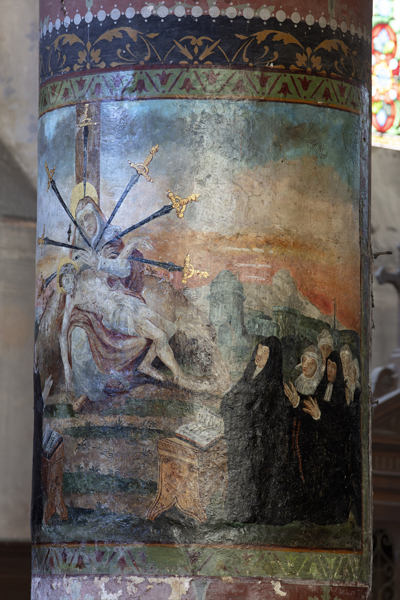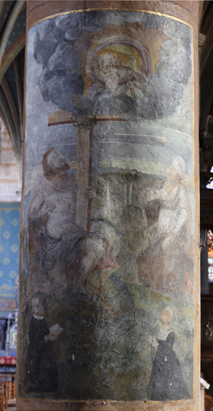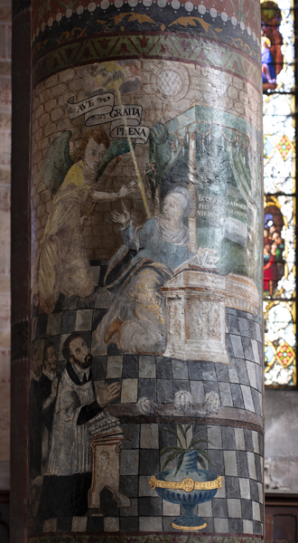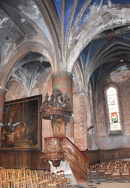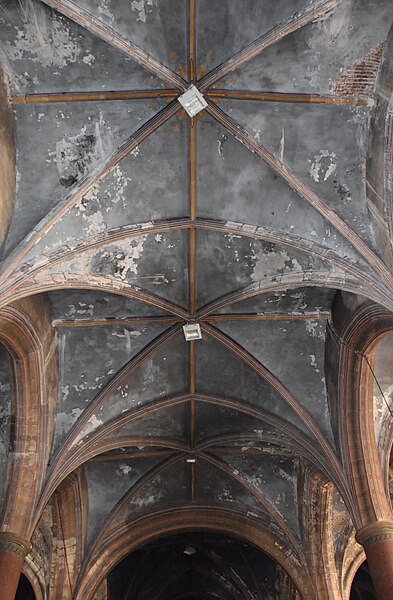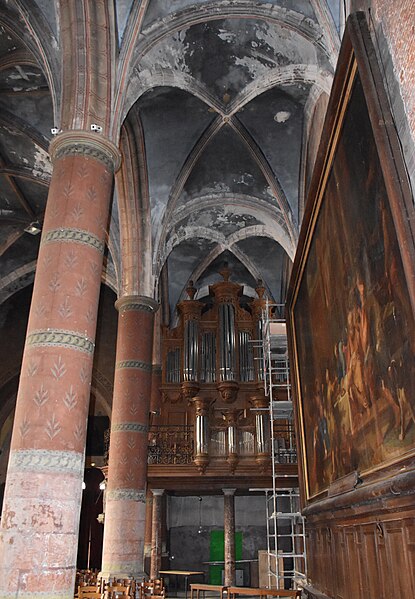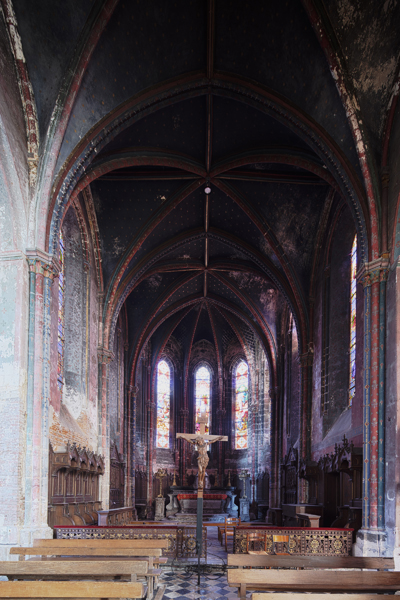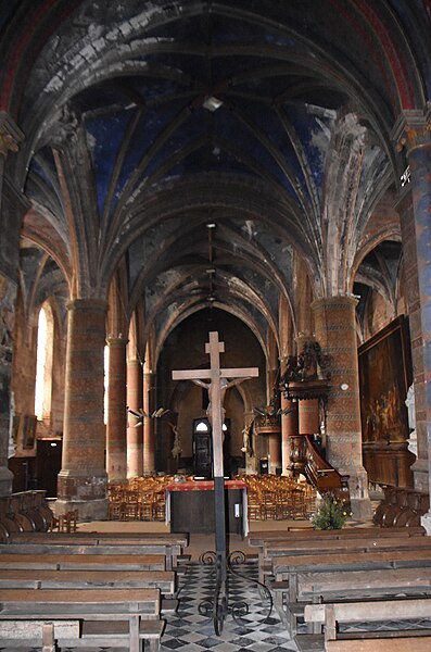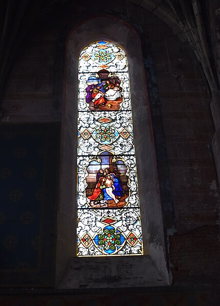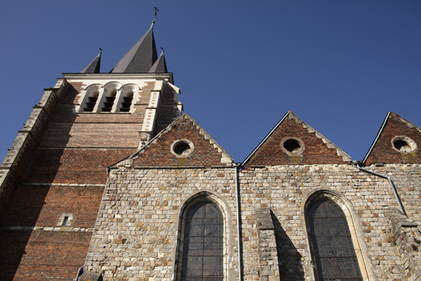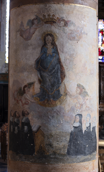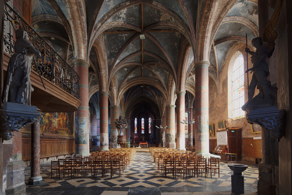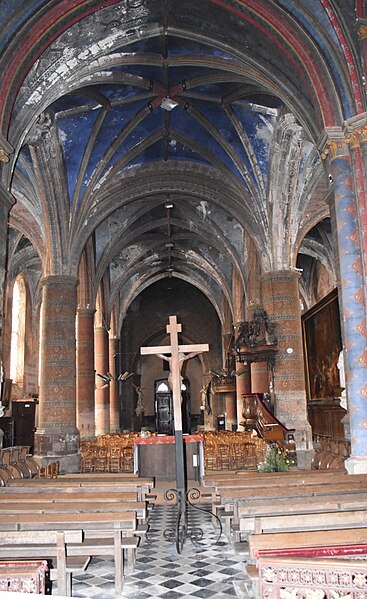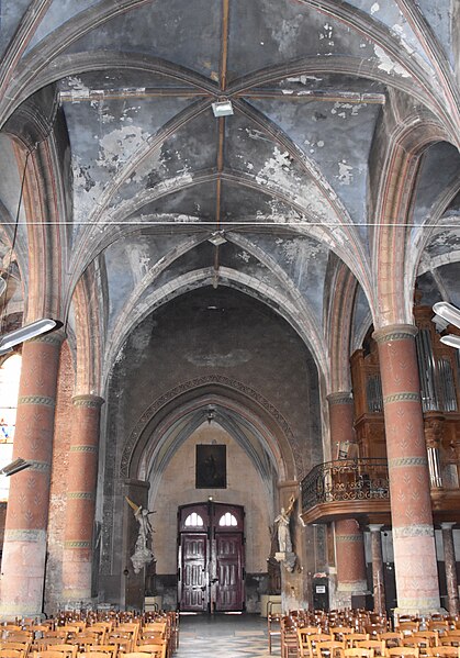 L'église Notre-Dame-de-l'Assomption de Vervins (Aisne) est mentionnée dès 1135 ; une première église est attestée au XIe siècle et l'édifice a été reconstruit autour de 1200. De plan en croix latine, il a été fortement remanié après sa destruction par les Espagnols en 1552. À partir de 1553, Robert de Coucy entreprend des travaux de restauration et d'agrandissement, avec l'ajout d'une travée au transept vers le chœur ; les voûtes sont relevées entre 1553 et 1566. Le clocher-porche est élevé en avant de la nef en 1555. Les piliers reçoivent un décor peint réalisé entre 1566 et 1590. Une sacristie est bâtie au XVIIe siècle et, en 1675, un portail occidental commencé par Pierret reste inachevé. En 1700, Prévot réalise un portail de style baroque et, en 1701, Grettepin construit une abside semi-circulaire peinte par Vitoux en 1703. L'édifice reçoit un nouveau pavement en 1723 ; le cimetière attenant est transféré en 1788 et la charpente de la nef est refaite par Cottenet en 1789. Au XIXe siècle, l'architecte Pierre Bénard agrandit le chœur entre 1870 et 1872 de deux travées ; les chapiteaux sont sculptés par Buisine et le décor du chœur peint par Zéphir Amasse. En 1876, Bénard reconstruit le portail occidental en style néo-gothique. Les verrières sont posées entre 1871 et 1889 ; l'église compte une trentaine de vitraux, dont plusieurs signés du maître-verrier Louis-Charles-Marie Champigneulle de Bar-le-Duc, datés de 1880. Entre 1879 et 1890, la nef et le transept sont ornés d'une peinture monumentale par Francis et Alphonse Jacquier, inspirée des modèles médiévaux étudiés par Viollet-le-Duc ; cet ensemble est aujourd'hui très dégradé. L'intérieur conserve plusieurs peintures monumentales, notamment l'Assomption, l'Annonciation, la Vierge des sept Douleurs et des scènes de la vie du Christ et de la Vierge, certaines ayant été restaurées au XIXe siècle. L'orgue actuel, de facture romantique, a été construit en 1885 par Pierre Schyven dans un buffet de la fin du XVIIe siècle ; il a été offert à la paroisse en 1886 par des membres des familles Larue et Montagnan-Larue et restauré en 1989. L'instrument est installé sur un balcon du bas-côté gauche, et non en tribune. L'église est l'église principale de la paroisse Sainte-Anne en Thiérache, dans le diocèse de Soissons, Laon et Saint-Quentin ; la paroisse de Vervins a existé jusqu'en 1999. Classée au titre des monuments historiques le 10 octobre 1975, elle occupe une place centrale à Vervins, entre la place de l'Église, la rue de la Liberté et la rue du Vieux-Château.