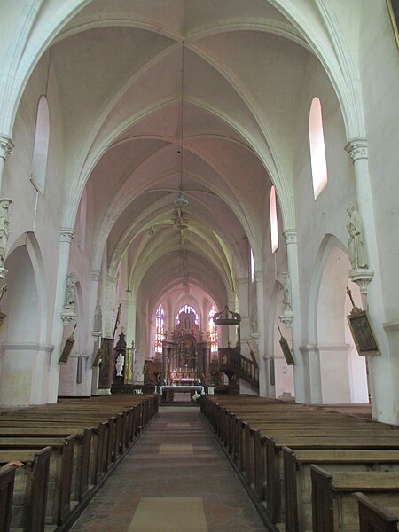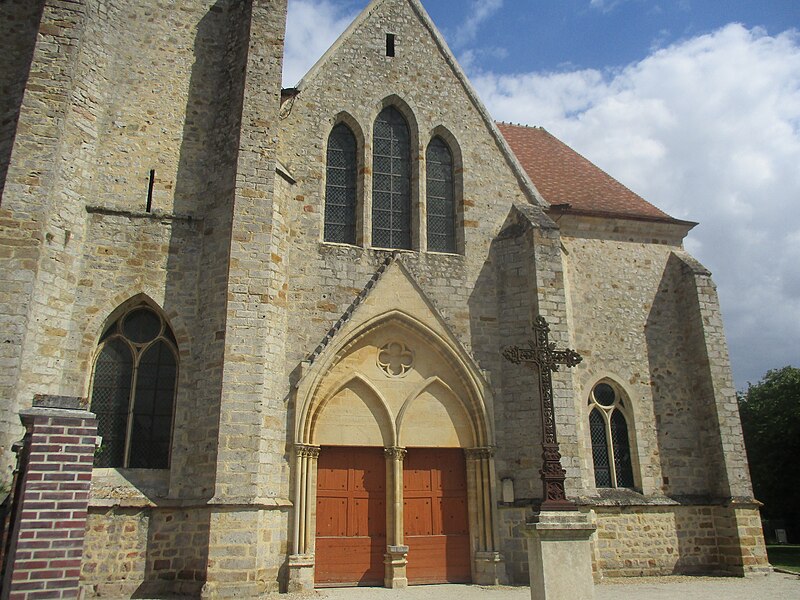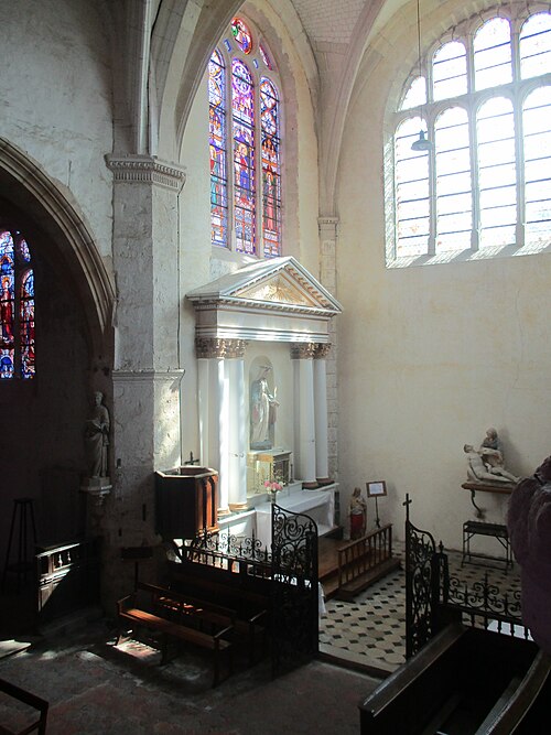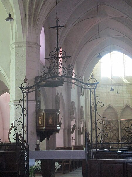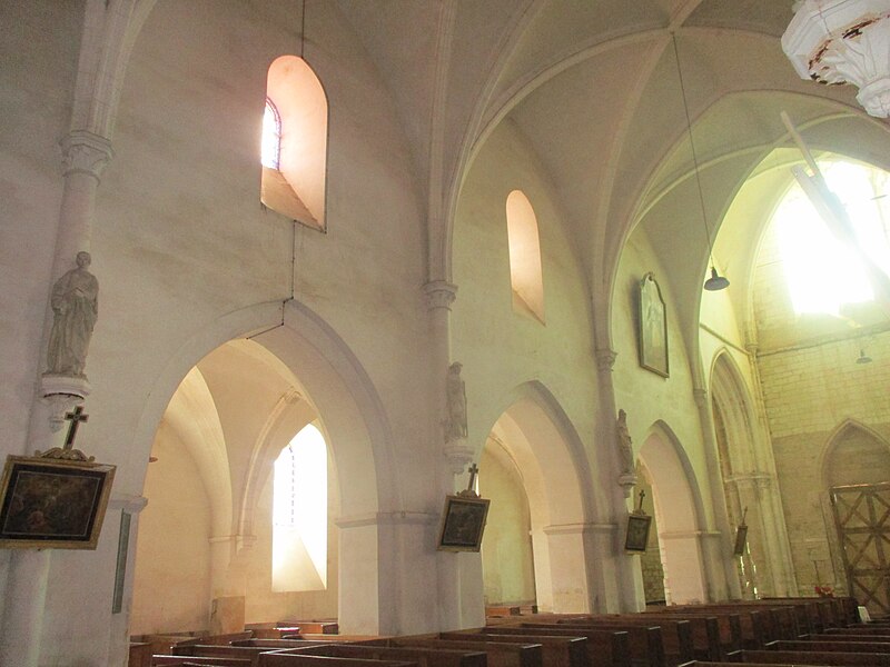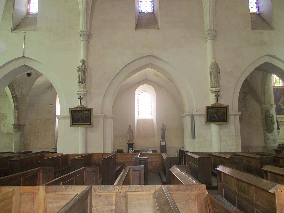 L'intérieur, de plan en croix latine, présente une nef gothique séparée du sanctuaire par une grille en fer forgé; une statue de saint Paul est adossée au pilier de gauche et une statue de saint Pierre au pilier de droite. Le maître-autel, de style baroque, porte un tableau représentant l'Annonciation; à gauche se trouve une statue de saint Louis tenant la Couronne d'épines, rappelant que le roi accueillit ici la Sainte Couronne le 10 août 1239, pour laquelle il fit construire la Sainte-Chapelle à Paris, et à droite une statue de saint Jean-Baptiste. Une Mise au Tombeau provenant de l'abbaye de Vauluisant, datée de 1528 et attribuée au Maître de Chaource, est installée dans la première chapelle du côté sud, au-dessus d'un autel néoclassique offert par le baron Campi en 1845 et consacré aux âmes du purgatoire. Une table de marbre rappelant les morts au combat de la guerre de 1914-1918 est apposée au mur. L'église conserve une statuaire de la Renaissance, notamment deux statues de sainte Anne et une pietà remarquable, ainsi que des statues sulpiciennes de la seconde moitié du XIXe siècle. Les vitraux datent du XIXe siècle et ont été restaurés en 2009; la même année, l'atelier Miller a réalisé le vitrail des Tous les Saints. Parmi les éléments remarquables se trouvent le portail ouest, l'autel baroque, la nef, les grilles et la chaire, ainsi que la Mise au Tombeau.