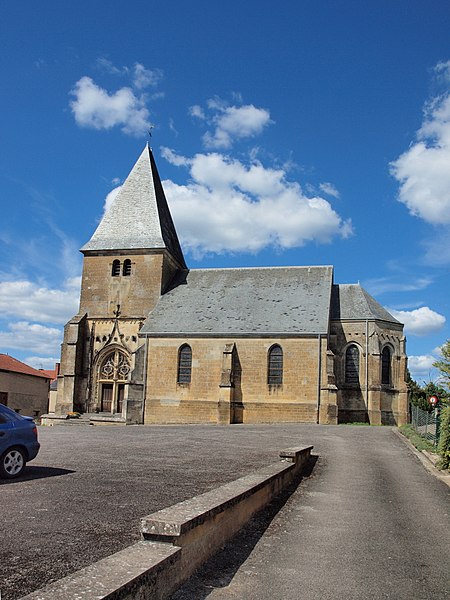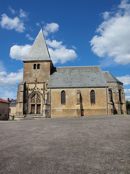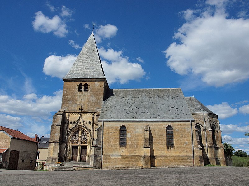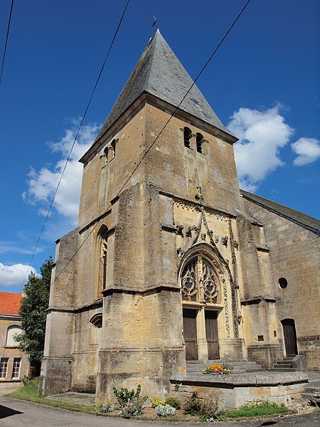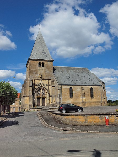 L'église Notre-Dame de Voncq, dans les Ardennes, domine le village depuis un éperon surplombant la vallée de l'Aisne. Le site, emprunté dès l'époque romaine par la voie de Reims à Trêves, figure plus tard sur la carte de Cassini sur l'axe reliant Reims à Sedan. L'église occupe la partie supérieure de l'ovale villageois, au nord-est, et la cité a longtemps compté un second édifice dédié à Saint-Martin (IXe–XVIIe siècle), aujourd'hui disparu. Le bâtiment présente un profil trapu, avec une tour-porche massive et une nef relativement courte, illustrant la fonction de refuge que pouvaient remplir ces édifices. Le portail sud, de style flamboyant, se distingue par des voussures finement sculptées et des pieds-droits ornés d'entrelacs végétaux creusés en relief. Le chœur pentagonal, la partie la plus ancienne, date du XIIIe siècle : ses ogives reposent sur des colonnettes baguées, ses formerets encadrent les fenêtres et ses chapiteaux portent des motifs de feuilles et de crochets. Dans le bas-côté nord, plusieurs chapiteaux offrent des décors végétaux entrelacés représentant des feuilles de chêne, de vigne, de houblon et de mûrier. La tour-porche et la nef datent du XVIe siècle. Un chapiteau à feuilles d'acanthe d'époque gallo-romaine a été retrouvé dans le sous-sol. Parmi le mobilier, on relève un autel du XVIIIe siècle composé de quatre colonnes corinthiennes en marbre aux chapiteaux dorés supportant un baldaquin, ainsi qu'une Vierge à l'Enfant du XVIIe siècle placée sous le porche. L'édifice a été classé au titre des monuments historiques en 1920.