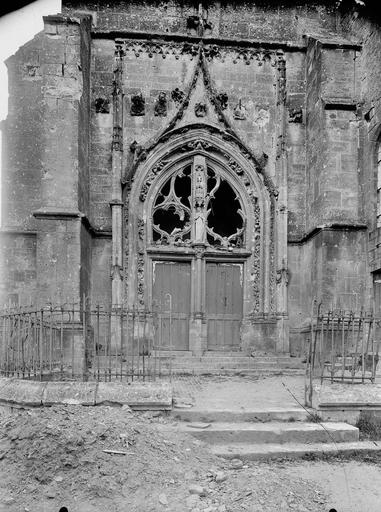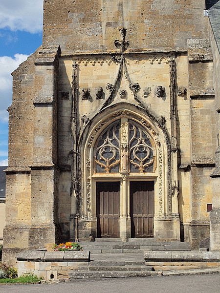 Le portail sud de style flamboyant est sculpté avec des voussures et des pieds-droits ornés.