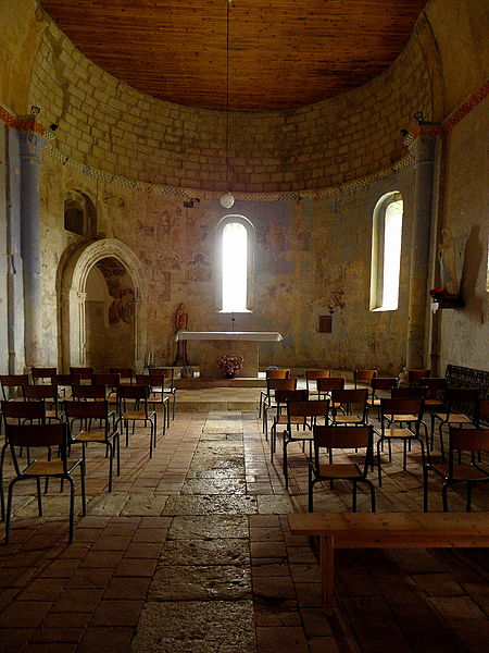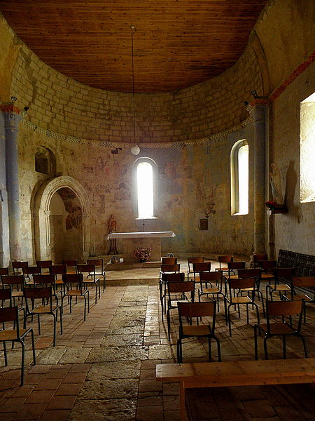 L’église Notre-Dame de Vopillon, située à Beaumont dans le Gers, est un édifice de style roman majoritairement construit par l’ordre de Fontevrault. Elle fut fondée par le sire Arnaud de Vopillon, qui finança l’église et le prieuré vers 1140 à la suite d’un pèlerinage au Paravis, près de Port-Sainte-Marie. Le monastère de Vopillon, dont l’église reste le seul vestige significatif, a exercé une influence sur le Condomois pendant plus de quatre siècles. En 1569, l’ensemble monastique fut en grande partie ruiné par les protestants conduits par Montgomery ; c’est vraisemblablement à cette époque que la voûte s’est écroulée et qu’une partie occidentale de la nef a été détruite. Avant la fin du XVIIIe siècle, il ne subsistait déjà plus que deux des trois ou quatre travées initiales de la nef, traces d’arrachement étant encore visibles sur l’élévation occidentale. Un porche fut ouvert dans le mur sud en 1774 et la voûte en cul-de-four du chœur s’est effondrée en 1826. La Révolution a entraîné la destruction du prieuré et la transformation de l’église en grange. D’importants travaux de restauration ont été réalisés dans les années 1960 et des campagnes de sauvegarde sont aujourd’hui soutenues par la Fondation du Patrimoine et l’association locale Artiga. L’édifice présente une nef unique avec abside semi-circulaire et était autrefois voûté. Un damier encadre, à la hauteur des chapiteaux, l’ensemble du chœur et de la nef ; les chapiteaux reposent sur des colonnes engagées. Les chapiteaux du chœur portent un décor végétal plat, tandis que ceux de la nef semblent représenter Daniel parmi les lions. D’importants vestiges de peintures murales subsistent, notamment l’ornementation de l’intrados de l’arc conduisant à la sacristie et sur le mur nord du chœur, datées des XIIIe–XIVe siècles. Parmi les peintures conservées figure notamment une Adoration des mages. L’église est inscrite à l’inventaire des monuments historiques depuis 1971.