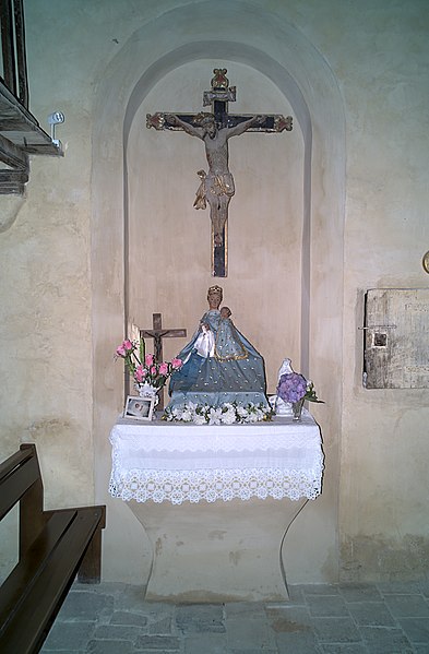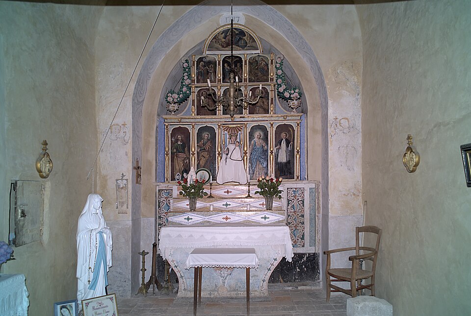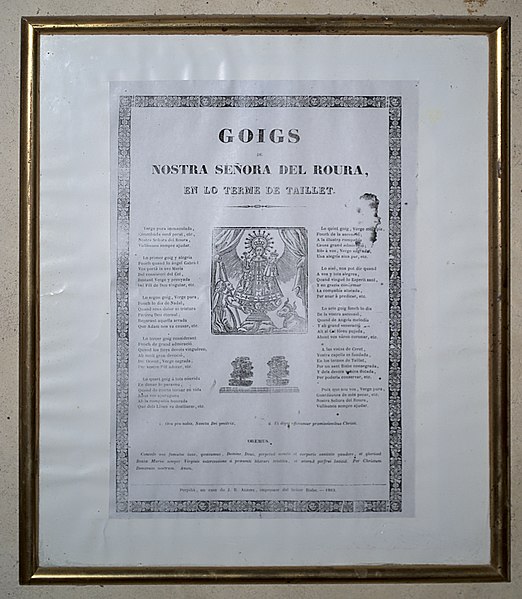 La chapelle Notre‑Dame del Roure, dite Santa Maria de la Roure en catalan, se situe au hameau de la Roure sur la commune de Taillet, dans les Pyrénées‑Orientales. Le bâtiment est protégé au titre des monuments historiques, la totalité de l'église étant inscrite depuis le 7 juin 2006. Elle occupe le secteur sud‑est de la commune, à l'est du Mas Sala et du Puig de la Carretal, et domine le hameau qui porte son nom. Liée à une tradition populaire de vénération du chêne rouvre, la chapelle conserve un morceau de tronc de chêne présenté comme un remède contre les fièvres. Les maçonneries de schiste remontent au XIIe siècle ; il s'agit d'une église à nef unique accompagnée d'un chœur de petite taille. L'abside en cul‑de‑four abrite des peintures murales datées de la fin du XIIe siècle, protégées pendant de longues années par le retable qui ferme l'abside. La façade ouest est couronnée par un clocher‑mur portant deux cloches. La première mention documentaire de l'église apparaît en 1288 sous la forme S. Maria de Ruyra, puis en 1371 comme eccl. Sce. Marie de la Ruyra, ce qui suggère que le nom originel du sanctuaire pouvait être Santa Maria de la Rovira. En 1381 la chapelle reçoit la visite de Ramon de Vallbona ; après la disparition de l'abbaye, elle passe en 1578 aux mains des seigneurs d'Oms. On connaît deux titulaires du bénéfice de l'ermitage : Joachim Balderan en 1715 et Jean‑Laurent d'Aguillon en 1768, ce dernier étant anciennement attaché à la cathédrale Saint‑Jean‑Baptiste de Perpignan. La tradition rapporte que le lieu devint un lieu de pèlerinage après la découverte d'une image primitive de la Vierge : selon la légende, un bœuf qui paissait dans le pré appelé Camp de Maria s'approchait souvent d'un chêne et le jeune berger qui gardait l'animal découvrit l'icône au sommet de l'arbre. Non loin de là, et aux frais de l'abbé de Santa Maria de Vallbona, on aurait alors construit un édifice pour recevoir l'icône aux alentours des années 1100, récit qui entre toutefois en contradiction avec la fondation de l'abbaye en 1242 ; l'ermitage serait néanmoins, selon les sources, l'une de ses premières possessions. Des vues de la nef, de l'abside et de l'atrium (porte et escalier du chœur) illustrent le site ; des références se trouvent notamment dans les publications de Géraldine Mallet et dans le Corpus des Vierges à l'Enfant des Pyrénées‑Orientales, ainsi que dans les bases Mérimée et les dossiers Clochers de France et de l'Observatoire du patrimoine religieux.