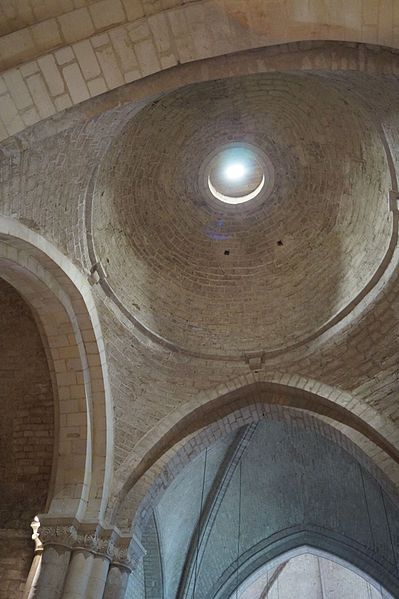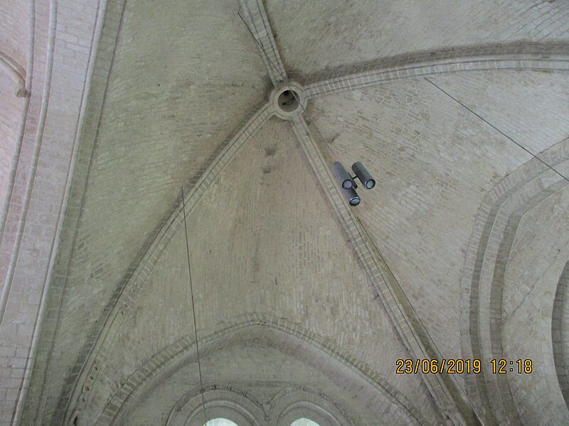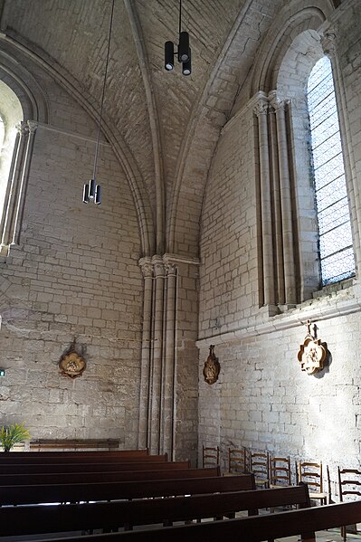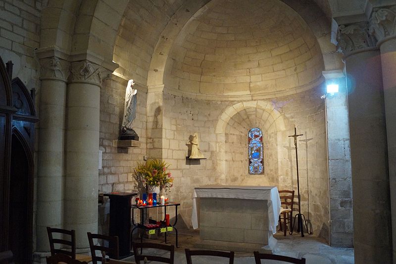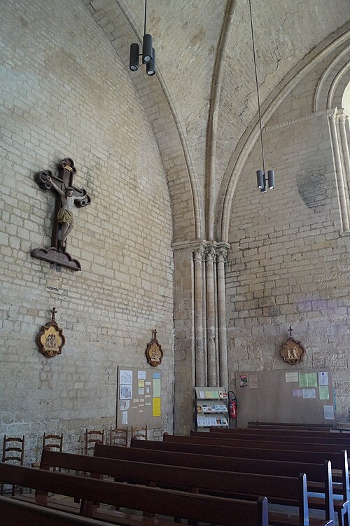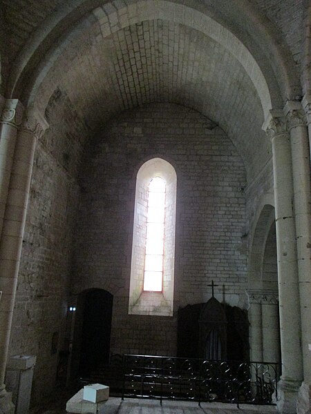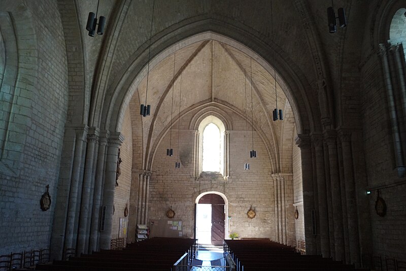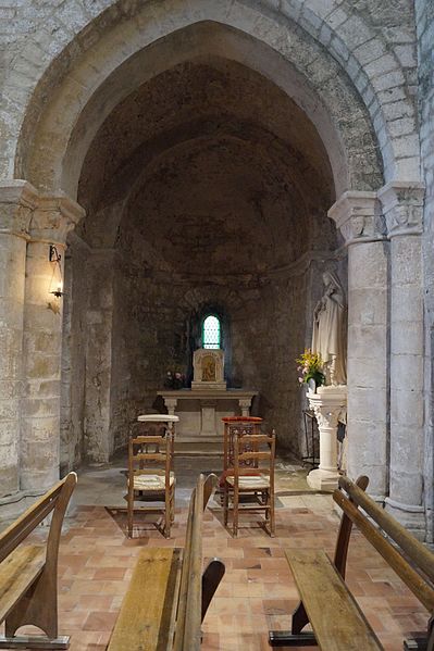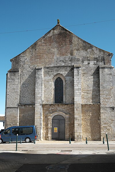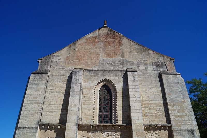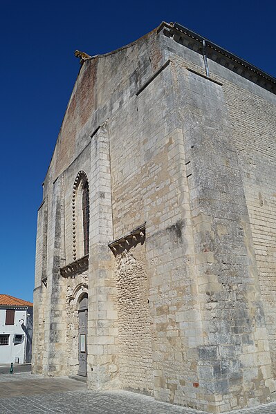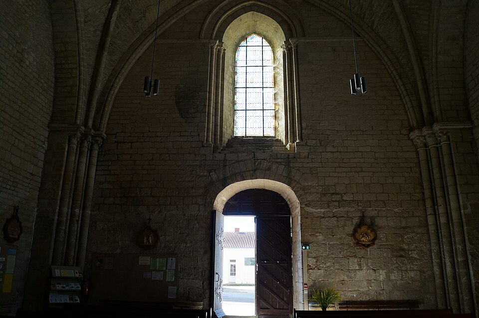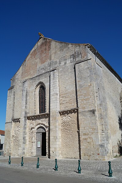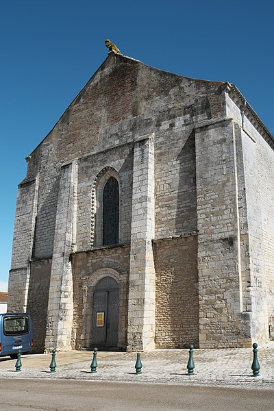 L'église Notre‑Dame‑des‑Anges, aussi appelée Notre‑Dame‑de‑l'Assomption, est classée Monument historique en 1913 et se situe à Angles, en Vendée. Elle appartient à la paroisse catholique de Notre‑Dame de Lumière et des messes y sont célébrées aujourd'hui. Selon les sources, sa construction est datée soit de la fin du XIe siècle (vers 1075‑1080), soit vers 1210 ; elle faisait à l'origine partie d'un ensemble monastique. Ce prieuré, placé sous le patronage de Sainte‑Marie, abritait des chanoines réguliers suivant la règle de saint Augustin et comprenait cloître, dortoirs, réfectoire et salle capitulaire. Du XIe au XIVe siècle, les chanoines élisaient un prieur ; après 1342, alors qu'il y avait plus d'une dizaine de chanoines, le prieuré fut élevé en abbaye et Pierre Mesnard fut le premier abbé élu. En 1371, pendant la guerre de Cent Ans, les bâtiments furent sérieusement endommagés par des troupes royales. Aux guerres de Religion à la fin du XVIe siècle, les ailes du monastère furent détruites et une partie de l'église endommagée, entraînant la fin de la vie monastique ; l'édifice subsista comme église paroissiale desservie par deux prêtres séculiers. Le domaine fut géré par des abbés commendataires, souvent absents, qui nommaient un fermier général sur place ; le système de la commende dura jusqu'en 1791, date à laquelle les restes de l'abbaye furent vendus comme bien national. L'église a fait l'objet de restaurations aux XVIIe et XIXe siècles, notamment vers 1870 et à la fin du XIXe siècle. De la première église subsistent le bras sud du transept, son absidiole, la croisée du transept, la coupole sur pendentifs et peut‑être le clocher ; le plan primitif était très vraisemblablement une croix latine avec transept flanqué d'absidioles et chœur terminé par une abside. Le chœur et les bras de transept sont voûtés en berceau brisé, tandis que les absidioles et l'abside sont voûtées en cul‑de‑four ; la crypte et plusieurs parties du côté nord furent endommagées au XVIe siècle et leur restauration commença au XVIIe siècle. La nef, de style gothique angevin datée de la fin du XIIe siècle au début du XIIIe, comporte deux travées larges couvertes de coupoles nervurées et sans bas‑côtés, d'une largeur exceptionnelle pour l'époque de 11,40 mètres. Ces coupoles, originellement couvertes de tuiles, ont nécessité des renforts par de fortes colonnes groupées ; au XIXe siècle une toiture à deux pans fut ajoutée, entraînant la surélévation des murs gouttereaux. Les deux travées présentent des coupoles différentes — l'une à quatre nervures, l'autre à huit — ce qui indique qu'elles n'ont pas été réalisées en même temps et traduit des restaurations et remontages, notamment au XVIIe siècle après les guerres de Religion. De nombreux éléments antiques ont été remployés lors des restaurations et la plupart des sculptures du chœur furent refaites vers 1870, à l'exception d'un atlante à l'absidiole sud ; les parements et corniches extérieurs furent également largement restaurés. Le sol actuel, dallé en pierre calcaire, se trouve environ un mètre au‑dessus du sol primitif, masquant la base des colonnes, et un affaissement du XVIIe siècle imposa la construction de gros contreforts qui ont enfoui des décors d'origine, dont deux portails aveugles encadrant le portail central. La façade ouest est ornée d'une gargouille représentant une bête sauvage ; selon la légende locale, l'évêque Martin aurait jadis dompté la créature puis la pétrifia pour la placer en haut de l'église, où elle serait devenue la cause mythique de la perte de la beauté des jeunes filles passant sous elle, ce récit expliquant aussi, selon la tradition, l'ouverture d'une porte latérale pour les préserver.