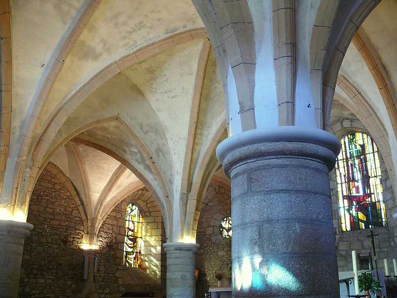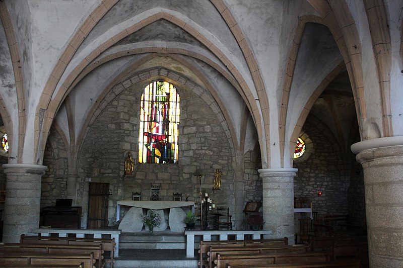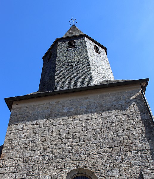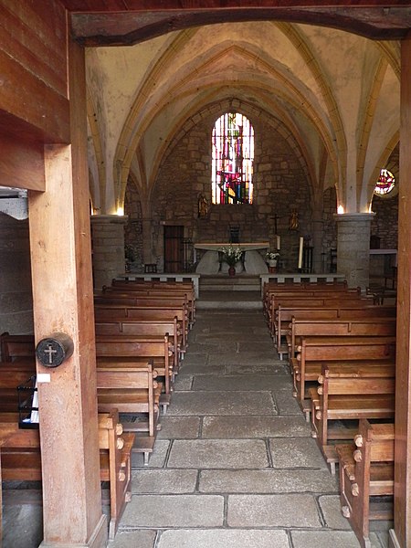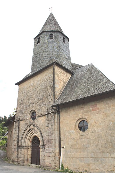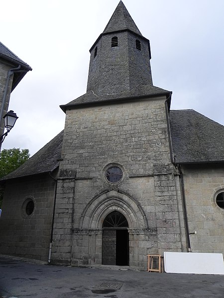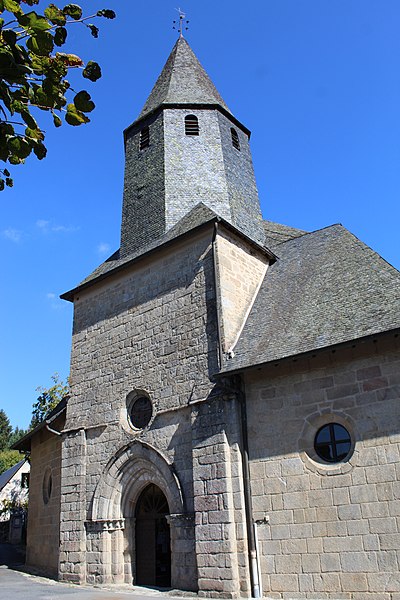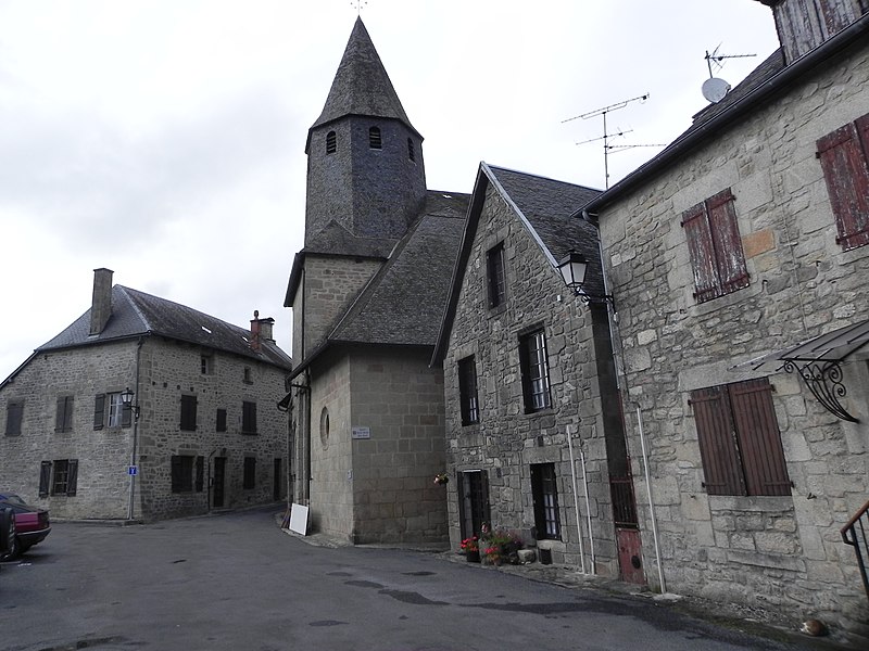 Chapelle castrale d’abord appelée Notre-Dame-de-la-Basse-Cour puis Notre-Dame-des-Bancs, l’édifice était à clocher-mur dont subsiste le portail sud-ouest. Elle aurait été édifiée par la famille de Comborn au cours de la première moitié du XIIIe siècle. L’édifice a été intégralement remanié à partir de 1471, date portée sur le linteau d’une porte latérale, puis au début du XVIe siècle, apparemment par la famille de Pompadour, qui procéda à son agrandissement et au voûtement ogival sur piliers circulaires. Une porte à bossages orne la façade côté château et un clocher-tour, élevé sur l’ancien mur pignon au début du XVIIe siècle, porte la date de 1602. La chapelle est devenue paroissiale lors de la ruine de l’église Saint-Martin, au lieu-dit les Eglises, à la fin du XVIIIe siècle. La couverture et le dallage ont été refaits en 1905.