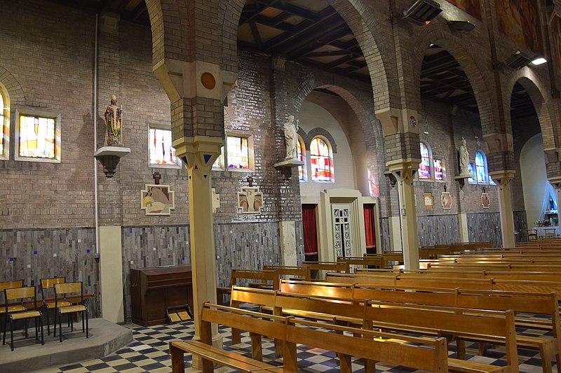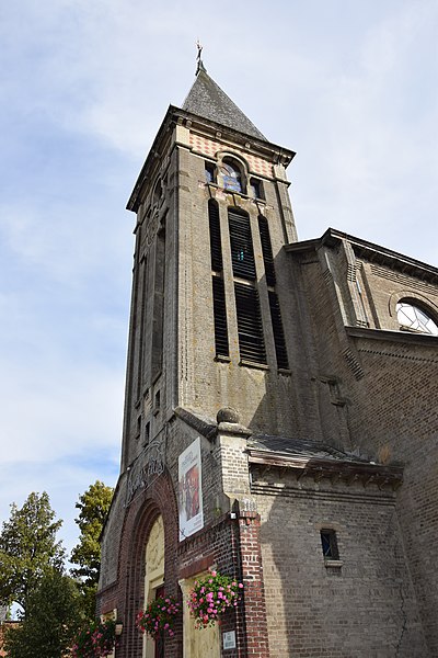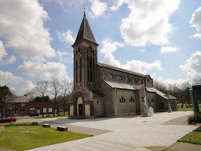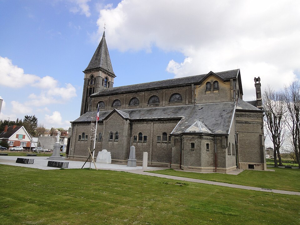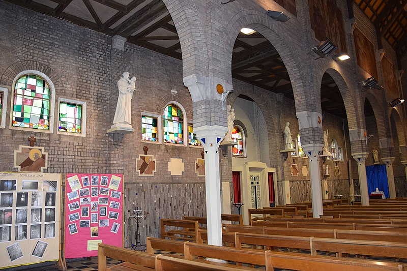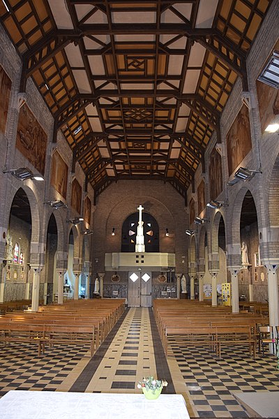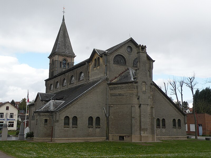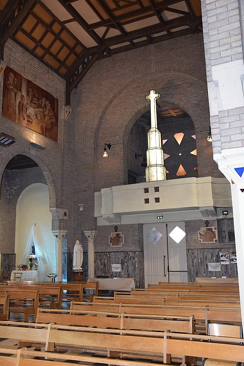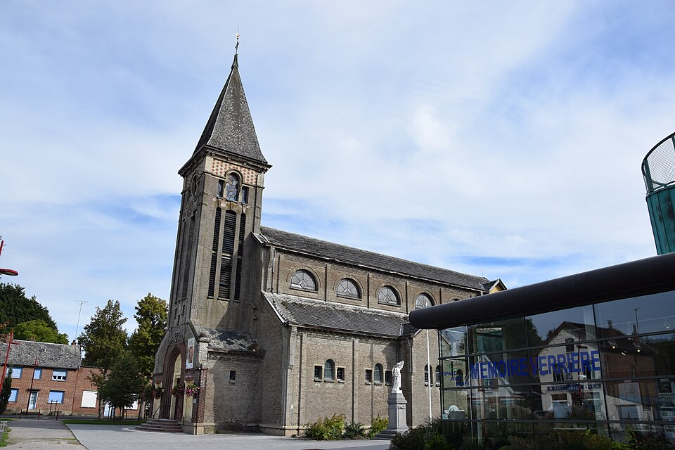 Dans les années 1920, Boussois était le centre d'une des plus importantes manufactures de verre d'Europe. Après la destruction de l'église lors du siège de Maubeuge pendant la Première Guerre mondiale, les ouvriers offrirent de reconstruire le bâtiment. La municipalité envisagea la reconstruction, réalisée en grande partie par les ouvriers de la Manufacture des Glaces de Boussois d'après les plans des architectes maubeugeois Henri Lafitte (1888-1966) et probablement Jacques Lafitte, son frère, plutôt que Jean Lafitte, son père, décédé en 1928, année de la construction. Les artisans mirent en œuvre leurs savoir-faire verriers pour la maçonnerie, le parement, le décor intérieur, le mobilier et les objets de culte, largement réalisés en verre. Henri et Jacques Lafitte conçurent le maître-autel (détruit), la chaire de vérité (disparue), les confessionnaux et les fonts baptismaux. Henri Lafitte réalisa les fresques murales de la nef et du chœur en 1928-1929. La croix lumineuse fut exécutée par le maître verrier Gaétan Jeannin et Mademoiselle S. Charlemagne, qui réalisa également le chemin de croix. À l'origine, les plafonds en charpente de bois apparente formaient des caissons vitrés ; ces verrières de la nef ont ensuite été supprimées, à l'exception de celles du chœur. Si l'extérieur de l'église n'offre pas de caractère remarquable, son intérieur mérite une attention particulière malgré ces transformations. Il s'agit du seul édifice religieux construit par Henri et Jacques Lafitte, dont l'activité a été féconde dans le Val de Sambre. L'usine céda l'église au diocèse vers 1977-1979. Les vitraux furent remplacés en 1987.
