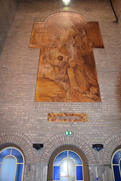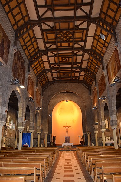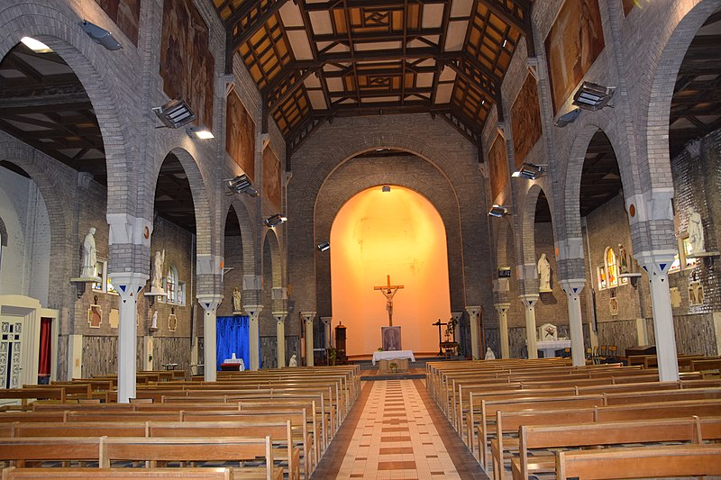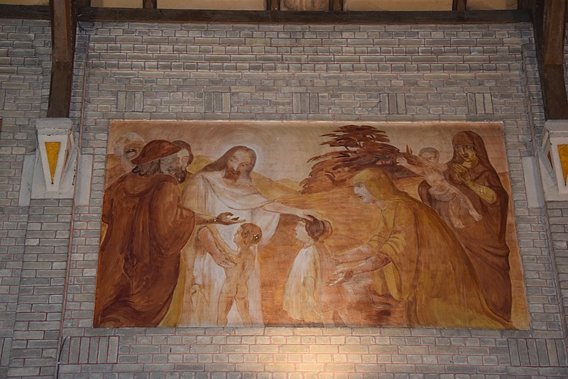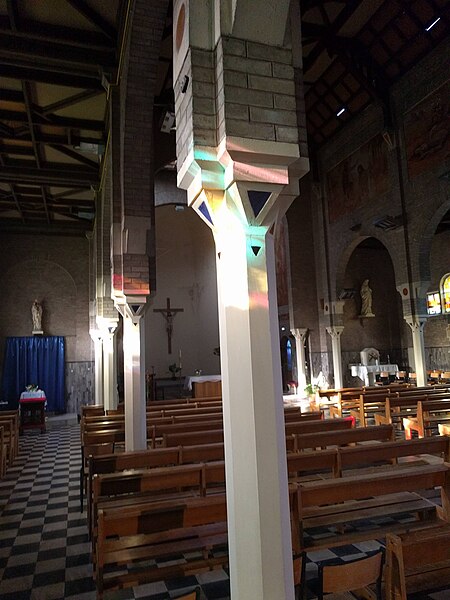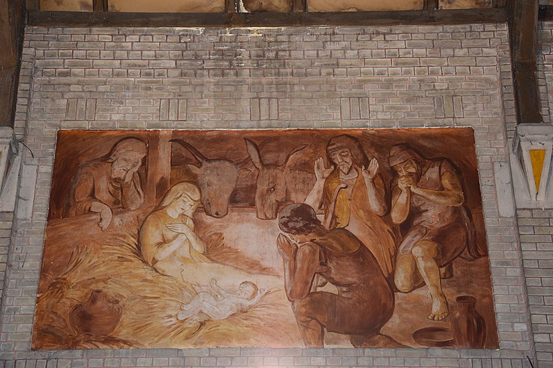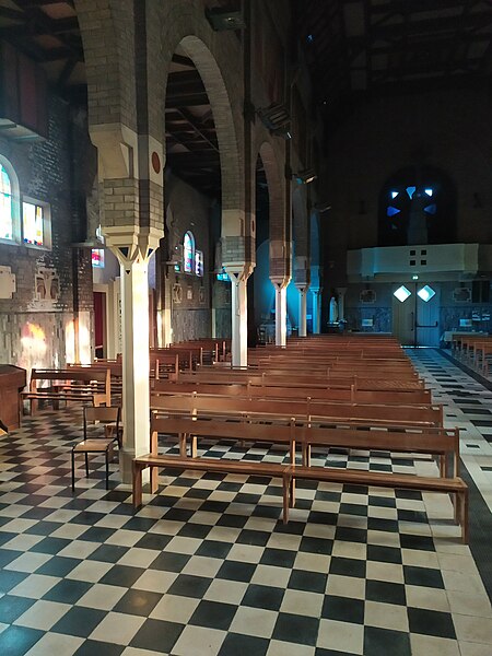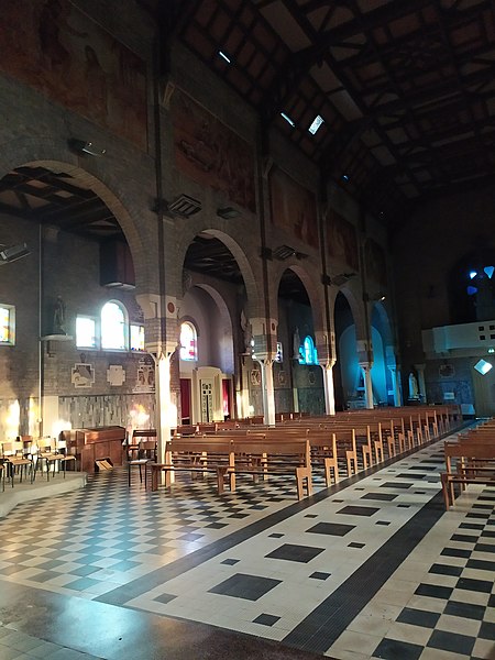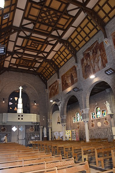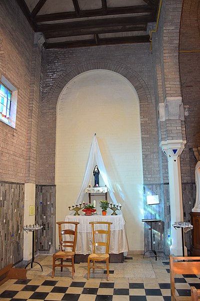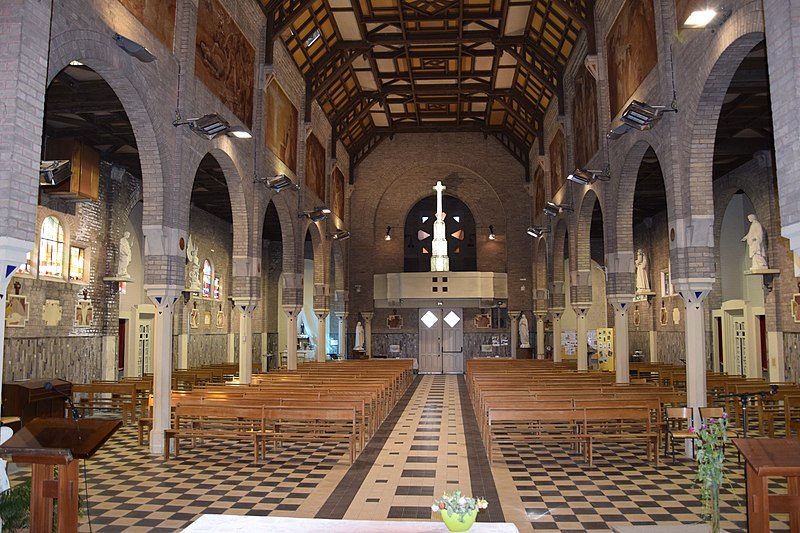 Dans les années 1920, Boussois était le centre d'une des plus importantes manufactures de verre d'Europe. Après la destruction de l'église lors du siège de Maubeuge pendant la Première Guerre mondiale, les ouvriers offrirent de reconstruire le bâtiment. La municipalité envisagea la reconstruction, réalisée en grande partie par les ouvriers de la Manufacture des Glaces de Boussois d'après les plans des architectes maubeugeois Henri Lafitte (1888-1966) et probablement Jacques Lafitte, son frère, plutôt que Jean Lafitte, son père, décédé en 1928, année de la construction. Les artisans mirent en œuvre leurs savoir-faire verriers pour la maçonnerie, le parement, le décor intérieur, le mobilier et les objets de culte, largement réalisés en verre. Henri et Jacques Lafitte conçurent le maître-autel (détruit), la chaire de vérité (disparue), les confessionnaux et les fonts baptismaux. Henri Lafitte réalisa les fresques murales de la nef et du chœur en 1928-1929. La croix lumineuse fut exécutée par le maître verrier Gaétan Jeannin et Mademoiselle S. Charlemagne, qui réalisa également le chemin de croix. À l'origine, les plafonds en charpente de bois apparente formaient des caissons vitrés ; ces verrières de la nef ont ensuite été supprimées, à l'exception de celles du chœur. Si l'extérieur de l'église n'offre pas de caractère remarquable, son intérieur mérite une attention particulière malgré ces transformations. Il s'agit du seul édifice religieux construit par Henri et Jacques Lafitte, dont l'activité a été féconde dans le Val de Sambre. L'usine céda l'église au diocèse vers 1977-1979. Les vitraux furent remplacés en 1987.