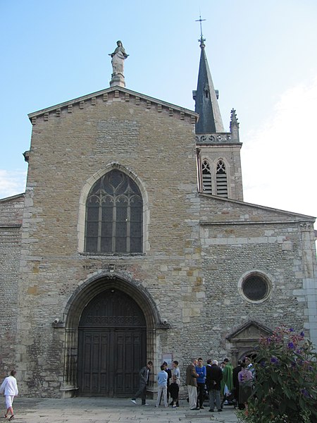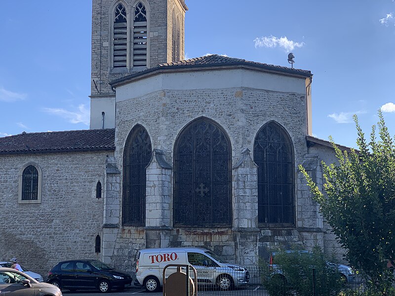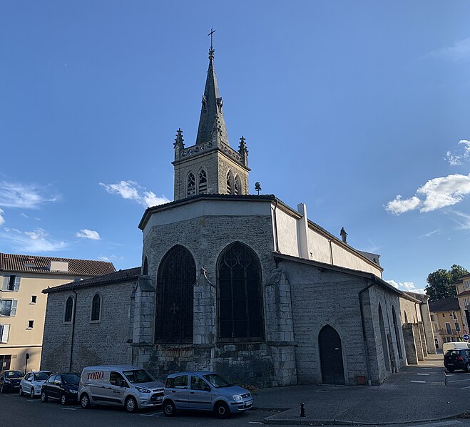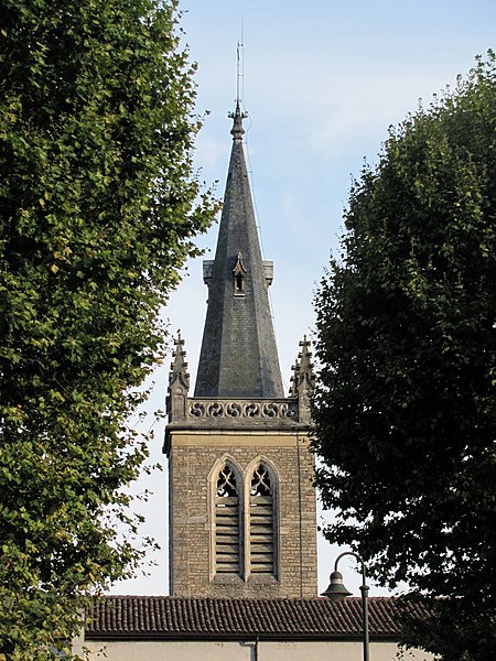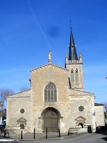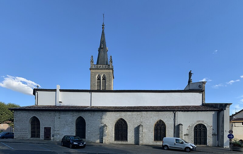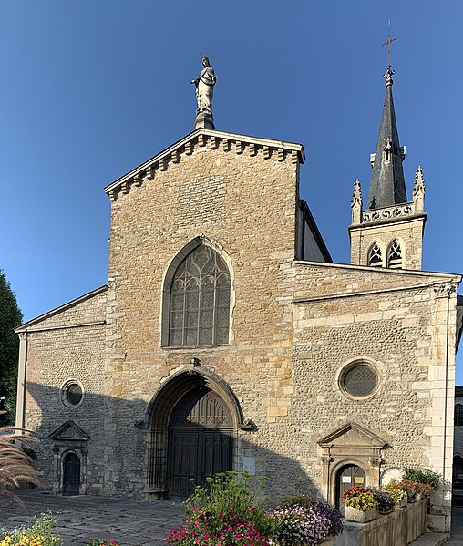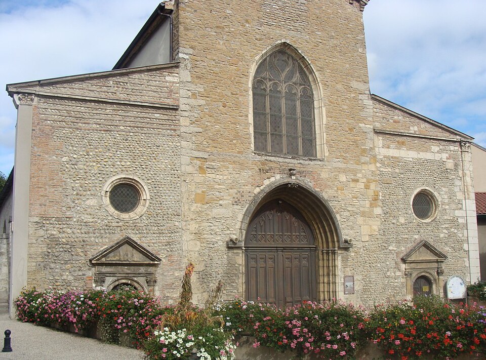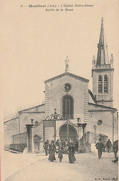 L'église Notre-Dame-des-Marais, également appelée collégiale Notre-Dame-des-Marais selon les sources et officiellement nommée église de la Nativité de la Sainte Vierge par le diocèse de Belley-Ars, est une ancienne collégiale située à Montluel dans le département de l'Ain. Selon la tradition, une statue de la Vierge retrouvée au XIe siècle dans les marais bordant le Rhône provoqua l'édification d'une chapelle de pèlerinage, remplacée au XIVe siècle par un nouvel édifice commencé vers 1380 sur l'emplacement probable d'un prieuré médiéval et achevé au XVIIe siècle, d'où le mélange des styles roman, gothique et Renaissance. Les chapelles Renaissance furent élevées par Philibert Pupunat, dont les armoiries, les initiales PP et la date de 1530 attestent la richesse des travaux. L'église fut promue collégiale par une bulle du pape Clément VII datée du 10 avril 1530. Saint François de Sales visita Notre‑Dame‑des‑Marais et sa dépouille y fut exposée lors de son transfert vers Annecy en 1622 ; sainte Jeanne de Chantal visita les sœurs en 1641 et reçut la même vénération après sa mort. L'édifice a fait l'objet d'une rénovation globale en 1971 et, à l'exclusion de son clocher et de sa façade ouest, est inscrit au titre des monuments historiques depuis le 17 février 1982 ; il a été fermé pour profanation le 8 février 2015. Sur le plan architectural, l'église comporte trois nefs aux voûtes différentes — voûtes d'arêtes, croisées d'ogives et caissons dans la nef latérale sud — les plafonds à caissons ne se rencontrant en France qu'à Montluel et Annecy. La façade reflète cette trichotomie avec un porche central surmonté d'une fenêtre ogivale et deux portes secondaires à frontons triangulaires couronnées d'œils-de-bœuf ; l'essentiel de la façade est construit en galets de la moraine de la Dombes, la partie la plus haute étant en pierre de moyen appareil.