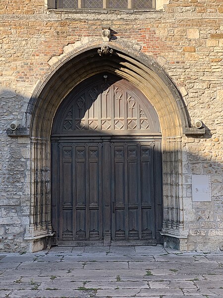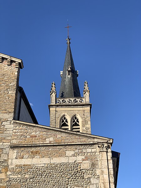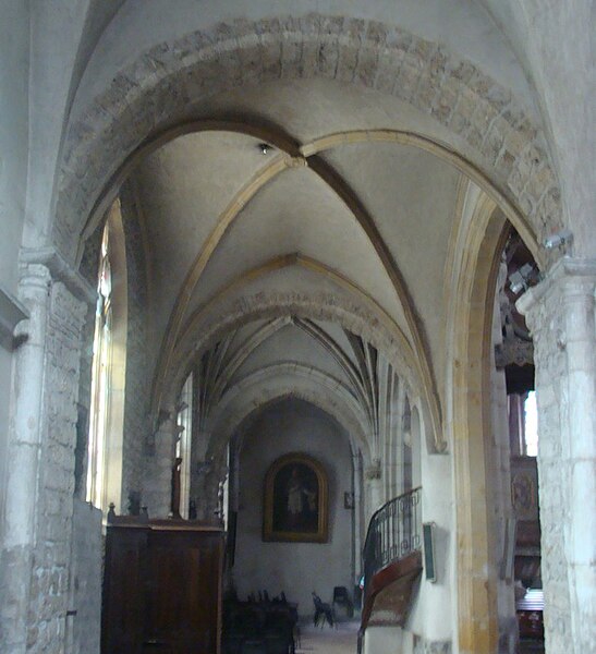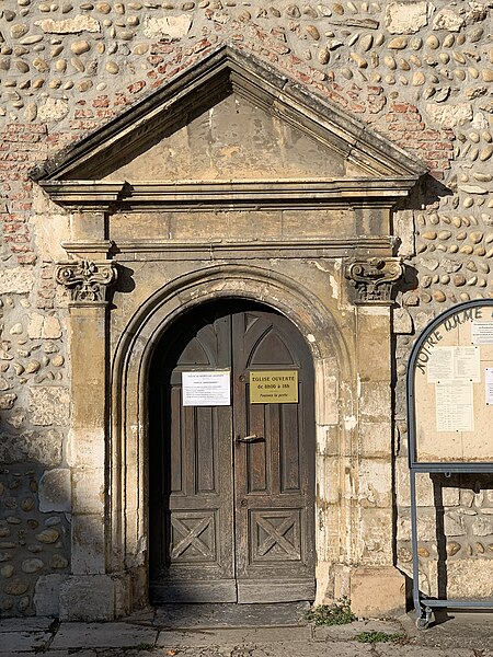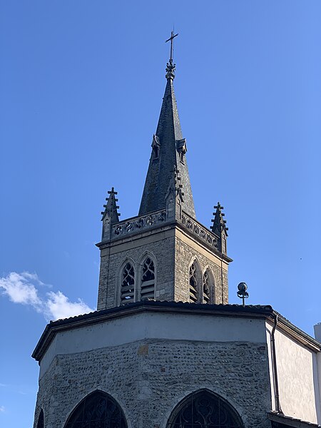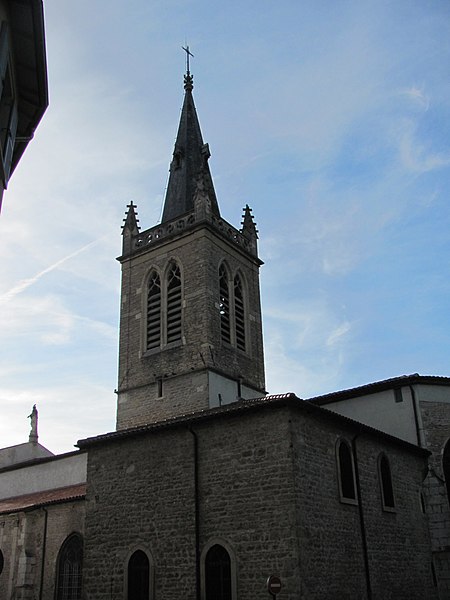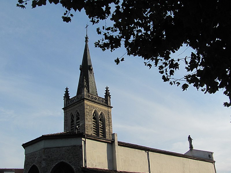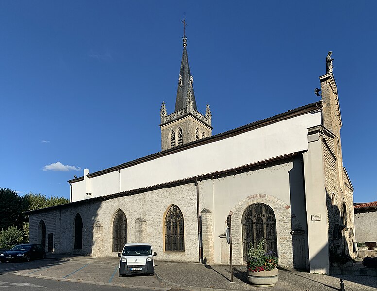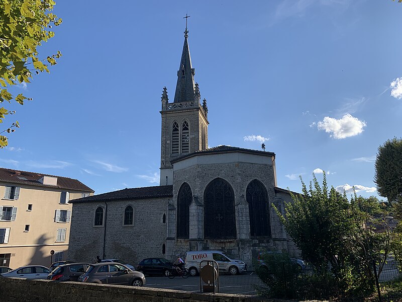 L'église Notre-Dame-des-Marais, également appelée collégiale Notre-Dame-des-Marais selon les sources et officiellement nommée église de la Nativité de la Sainte Vierge par le diocèse de Belley-Ars, est une ancienne collégiale située à Montluel dans le département de l'Ain. Selon la tradition, une statue de la Vierge retrouvée au XIe siècle dans les marais bordant le Rhône provoqua l'édification d'une chapelle de pèlerinage, remplacée au XIVe siècle par un nouvel édifice commencé vers 1380 sur l'emplacement probable d'un prieuré médiéval et achevé au XVIIe siècle, d'où le mélange des styles roman, gothique et Renaissance. Les chapelles Renaissance furent élevées par Philibert Pupunat, dont les armoiries, les initiales PP et la date de 1530 attestent la richesse des travaux. L'église fut promue collégiale par une bulle du pape Clément VII datée du 10 avril 1530. Saint François de Sales visita Notre‑Dame‑des‑Marais et sa dépouille y fut exposée lors de son transfert vers Annecy en 1622 ; sainte Jeanne de Chantal visita les sœurs en 1641 et reçut la même vénération après sa mort. L'édifice a fait l'objet d'une rénovation globale en 1971 et, à l'exclusion de son clocher et de sa façade ouest, est inscrit au titre des monuments historiques depuis le 17 février 1982 ; il a été fermé pour profanation le 8 février 2015. Sur le plan architectural, l'église comporte trois nefs aux voûtes différentes — voûtes d'arêtes, croisées d'ogives et caissons dans la nef latérale sud — les plafonds à caissons ne se rencontrant en France qu'à Montluel et Annecy. La façade reflète cette trichotomie avec un porche central surmonté d'une fenêtre ogivale et deux portes secondaires à frontons triangulaires couronnées d'œils-de-bœuf ; l'essentiel de la façade est construit en galets de la moraine de la Dombes, la partie la plus haute étant en pierre de moyen appareil.
