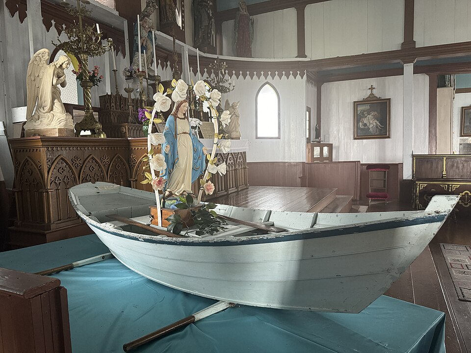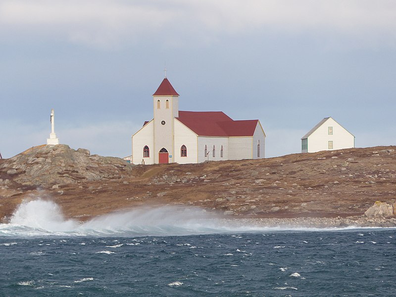 L'église Notre‑Dame‑des‑Marins, parfois qualifiée de chapelle dans les sources, se situe sur l'Île‑aux‑Marins, au sud de l'île, dans l'archipel de Saint‑Pierre‑et‑Miquelon, à la sortie du port de l'Île Saint‑Pierre. Elle a été édifiée entre 1872 et 1874 pour la paroisse de l'Île aux Chiens, devenue en 1931 l'Île‑aux‑Marins, et a été meublée par le Père Gueguen. À la fin du XIXe siècle, la paroisse comptait plus de 600 membres. La sacristie a été détruite dans les années 1930 et l'édifice a bénéficié d'une restauration récente. Témoignage de la vie locale à l'époque de la Grande Pêche, l'église reste utilisée malgré l'absence d'habitants sur l'île depuis les années 1960. Le chemin de croix est l'œuvre de Joseph Lemoine. Après la suppression du vicariat apostolique de Saint‑Pierre‑et‑Miquelon le 1er mars 2018, l'édifice a été rattaché au diocèse de La Rochelle.