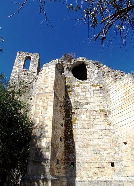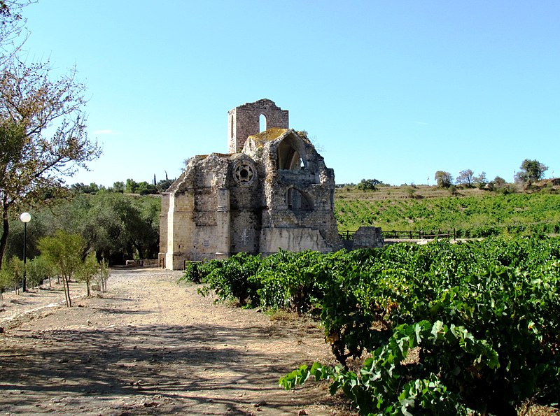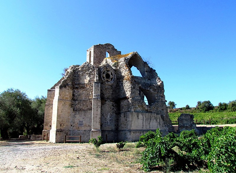 Les ruines de l'ancienne église Notre‑Dame‑des‑Oubiels se trouvent à un kilomètre à l'ouest de Portel‑des‑Corbières, dans l'Aude. Elles occupent l'emplacement de la localité disparue des Ouviels, mentionnée en 990, et d'une église citée en 1080 lors d'une collation de l'archevêque de Narbonne. Le site, proche du défilé de la Reïnadouïre et du cours de la Berre, était un lieu de passage ancien franchi à gué ou par barques et desservi par des voies antiques. Un oratoire païen et un mansio y avaient été établis ; une chapelle dédiée à la Vierge est attestée en 1175. La construction des parties conservées peut être rapportée à la seconde moitié du XIIIe siècle ; une datation entre 1285 et 1310 est également évoquée dans les sources. Au début du XVIIe siècle l'édifice fut abandonné et, pour plus de commodité, une nouvelle église paroissiale dédiée à Notre‑Dame de l'Assomption et des Oubiels fut édifiée dans le village, en service en 1644. L'ancienne église était la paroissiale de Portel et desservait aussi Castellas et Lastours ; elle dépendait de l'archevêque de Narbonne et du chapitre de la cathédrale. Des travaux réalisés en 1909 au niveau de l'ancienne église du village mirent au jour des pierres et un ensemble sculpté provenant de Notre‑Dame‑des‑Oubiels. Les vestiges sont classés au titre des monuments historiques depuis 1973 et l'église, ses abords et le plan d'eau sont inscrits au titre des sites naturels depuis 1942 ; des campagnes de sauvetage ont lieu depuis 1988. Du premier édifice subsistent le chevet pentagonal, le clocher, une partie du transept et la première travée de la nef ; l'église était autrefois entièrement voûtée. Le sanctuaire et le transept sont couverts d'ogives dont les nervures sont profilées en boudin à bec méplat et renforcées par des dosserets ; des chapiteaux sont sculptés. Les voûtins appareillés supportent la maçonnerie en blocage de la couverture via de grands carreaux peu épais. Le sanctuaire comporte deux niches, dont la plus grande est une piscine double reconnaissable à son arcature géminée. Dans la face nord‑est, à environ six mètres du sol, une pierre remployée porte un entrelacs roman archaïque sculpté en réserve, noué en huit avec des extrémités ramifiées symétriquement. La première travée de la nef, prolongée latéralement par deux chapelles, forme un transept voûté ; le clocher s'élève au‑dessus du bras sud. La partie supérieure de la tour paraît plus récente et n'est pas en pierre d'appareil ; l'étage supérieur est ajouré par des baies en plein cintre. Le nom de l'église, qui renvoie aux agneaux en occitan, se retrouve sur la clé de voûte du chœur où figure un agneau sculpté.