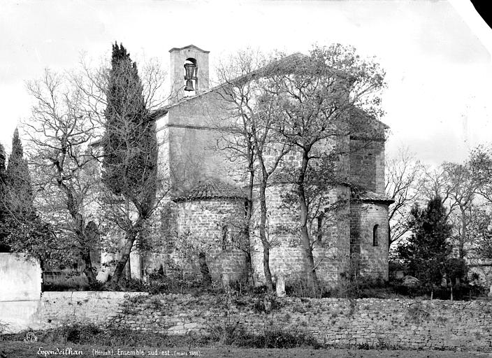 L'église a été édifiée au XIIe siècle et a connu deux campagnes de construction s'étalant sur environ soixante ans : la nef centrale fut bâtie vers 1120, puis les bas-côtés et les absidioles furent ajoutés lors d'une seconde phase. Le plan comporte trois nefs : la nef centrale est couverte d'une voûte en berceau, tandis que les nefs latérales sont voûtées en quart de cercle. Cette influence auvergnate, attribuée à l'une des possessions des religieuses de l'abbaye de la Chaise-Dieu dans le voisinage, est une exception en Languedoc.