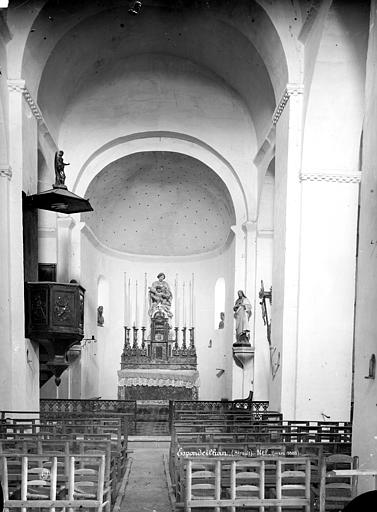 Le mobilier comprend une table d'autel pré-romane, une cuve baptismale creusée dans la margelle d'un puits gallo-romain, une statue de la Vierge du XVIIIe siècle, une cloche datée de 1665 et, à l'extérieur près du portail, un sarcophage wisigothique.