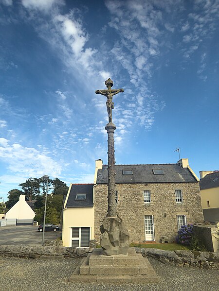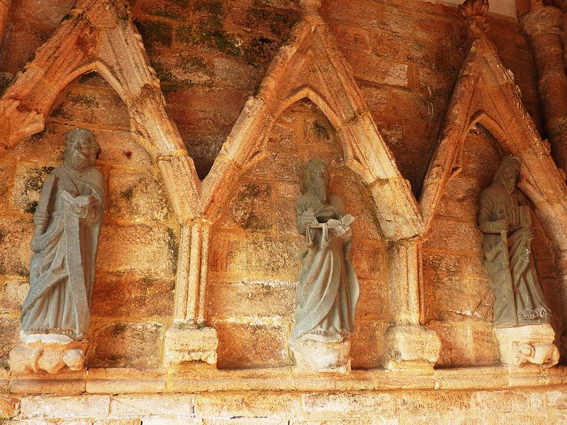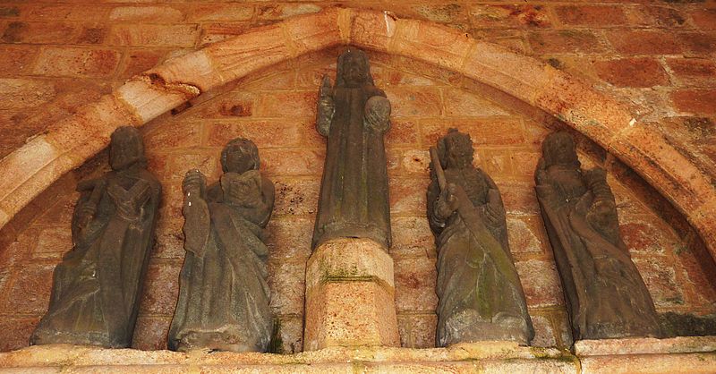 Le porche de l'église abrite des statues d'apôtres disposées sous les niches des parois latérales et sur le tympan, où, au centre, un Christ porte la boule du monde.