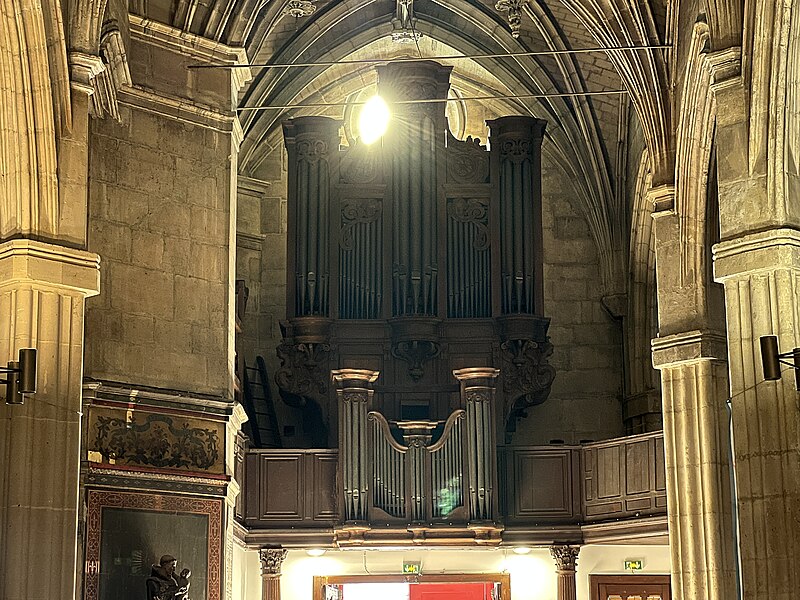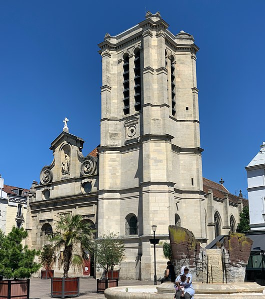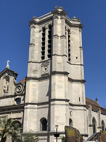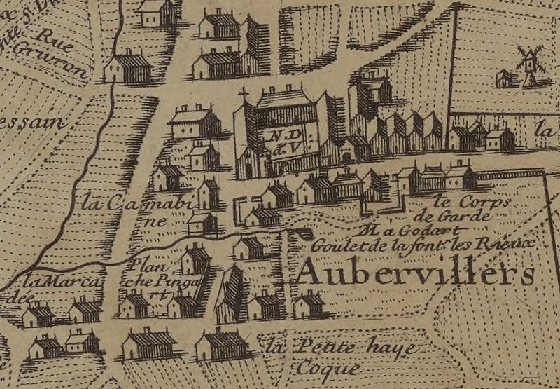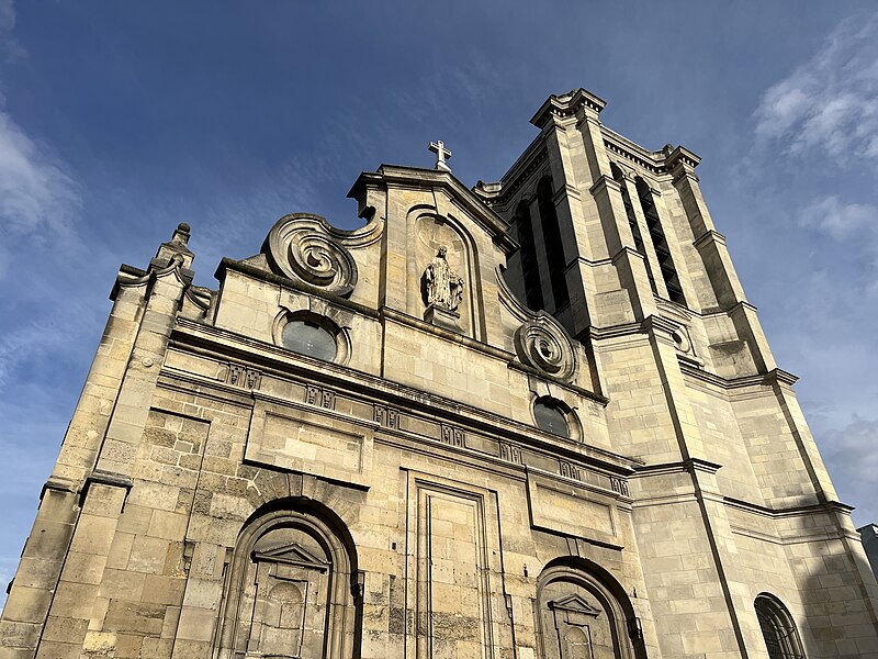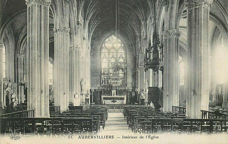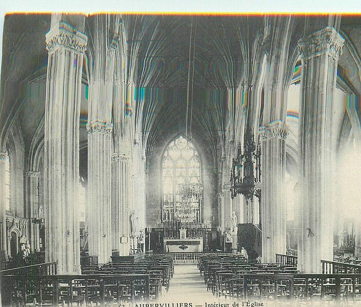 L'église Notre‑Dame‑des‑Vertus se trouve 1, rue de la Commune de Paris, connue depuis la fermeture à la circulation comme la place de la Mairie à Aubervilliers. Elle est le lieu de culte de la paroisse catholique d'Aubervilliers, dans le diocèse de Saint‑Denis‑en‑France. Située en Seine‑Saint‑Denis, l'église est classée au titre des monuments historiques depuis le 17 juillet 1908. Une église est attestée sur ce site au début du XIIIe siècle, dédiée à saint Christophe et peut‑être d'origine carolingienne. En 1242 elle est rattachée à Saint‑Marcel de Saint‑Denis. Un événement miraculeux est rapporté le 14 mai 1336 : la statue de la Vierge aurait fait ruisseler une pluie qui sauva les cultures lors d'une sécheresse. Cet épisode, associé à de nombreuses guérisons, attira de nombreux pèlerins, dont des rois et des saints. Incapable d'accueillir l'afflux de fidèles, le lieu fut reconstruit au XVe siècle. L'édifice présente un style gothique rayonnant ; ses chapiteaux sont ornés de feuillages, d'animaux et de symboles chrétiens, et les voûtes à liernes et tiercerons retombent en pénétration dans les piliers. Une tour massive d'environ 30 mètres, datée de 1541, fut rattachée à l'église lors de l'agrandissement de la nef entre 1616 et 1621. En 1628 l'église reçoit une façade de style classique dont la niche centrale abrite une statue de la Vierge Marie ; des niches au‑dessus des portes latérales accueillaient probablement des statues. Le curé Laurent Amodru (1872‑1886) entreprit la relève de l'église après le saccage survenu lors de la Commune. Une flèche de neuf mètres ajoutée au XIXe siècle fut détruite par un incendie en 1900. Les vitraux posés en 1914 furent détruits le 15 mars 1918 par l'explosion d'un dépôt de munitions de la Courneuve et furent restitués en 1919 par la maison Champigneulle. Le vitrail central représente le Christ tenant le livre de la vie, entouré des premiers protecteurs de la paroisse, saint Christophe et saint Jacques. Les vitraux du collatéral nord illustrent notamment le Miracle de la pluie de 1336, plusieurs guérisons miraculeuses et des résurrections d'enfants, ainsi que le repentir du maréchal de Toulouse et le baptême d'un enfant ressuscité en 1582. Du côté sud, les vitraux montrent des pèlerins illustres du XVIIe siècle, le baptême du Christ par saint Jean‑Baptiste, sainte Jeanne d'Arc, le pèlerinage des paroisses de Paris de 1529, l'apparition du Christ à sainte Marguerite‑Marie et Louis XIII offrant Notre‑Dame‑des‑Victoires à Notre‑Dame des Vertus ; la chapelle Saint‑Joseph contient un vitrail de saint Fiacre, patron des agriculteurs. La présence de choux sur ce vitrail rappelle la spécialité maraîchère de la Plaine des Vertus, citée dans la tradition locale. L'orgue, réalisé entre 1630 et 1635 par Pierre Pescheur, présente un buffet en chêne composé d'un grand corps de 1630 et d'un positif du XVIIIe siècle, décoré d'harpies aux angles des tambours. L'instrument de trente jeux comporte trois claviers et un pédalier à la française ; certaines tourelles ont perdu leurs statues ou vasques de couronnement. La restauration de 1987, tenant compte du matériel des XVIIe et XVIIIe siècles, a rendu à l'orgue son état de 1780 ; le facteur Robert Chauvin rallongea des tuyaux coupés au XIXe siècle. L'orgue fut inauguré le 10 novembre 1990 par l'organiste Michel Chapuis, lors d'un concert où Alain Cuny lut des textes de Claudel et Péguy. Après une restauration manquée entre 1980 et 1989, l'édifice a bénéficié en 2012 de travaux pour un montant de 1,367 M€, financés à 40 % par la DRAC, à 30 % par la Ville et avec le soutien des conseils régional et général. La statue en bois de Notre‑Dame des Vertus fut brûlée le 12 octobre 1793 ; une copie conservée à Paris permit la réalisation en 1873 d'une nouvelle statue en tilleul, entourée de deux anges en bois du XVIe siècle. Le pèlerinage à Notre‑Dame des Vertus est ancien : on y commémore notamment le rassemblement des paroisses de Paris le 17 avril 1529 et des pèlerinages royaux, parmi lesquels deux visites attestées de Louis XIII en 1614 et 1621. De nombreux ex‑voto témoignent de la reconnaissance des fidèles, notamment de prisonniers de la Commune de Paris qui attribuent à la Vierge leur libération le 27 mai 1871. Pendant la Première Guerre mondiale, séminaristes et prêtres vinrent se confier à Notre‑Dame des Vertus, et un vitrail, réalisé avec un procédé photographique, représente des prêtres célébrant la messe dans l'église durant le conflit. Chaque année part un pèlerinage de la basilique de Saint‑Denis jusqu'à Notre‑Dame des Vertus ; une ancienne procession depuis l'église Saint‑Denys de la Chapelle, aujourd'hui abandonnée, accordait une indulgence plénière aux participants. La dévotion s'ancre au XIVe siècle : des jours de pèlerinage historiques incluent l'Annonciation, le lundi et le mardi de Pâques et le 1er mai, jour du pèlerinage actuel, et des indulgences furent confiées par Guillaume d'Estouteville en 1452 puis étendues par Paul V. La paroisse, devenue en 1300 Saint‑Christophe d'Aubervilliers, a vu se succéder de nombreux curés depuis le milieu du XVIe siècle ; la cure fut confiée aux Oratoriens en 1618, qui s'installèrent en 1623 dans la maison de l'Oratoire.