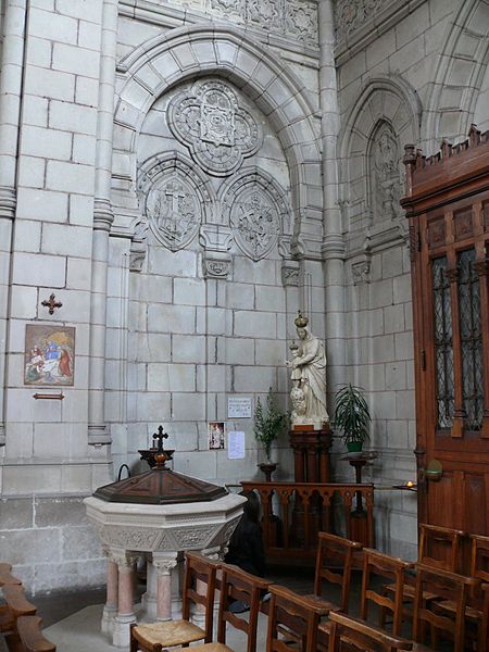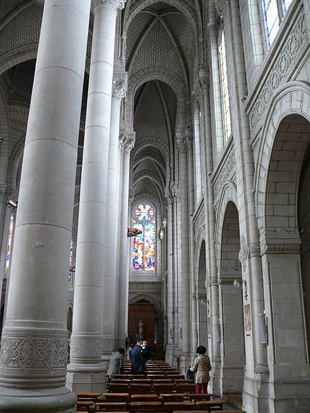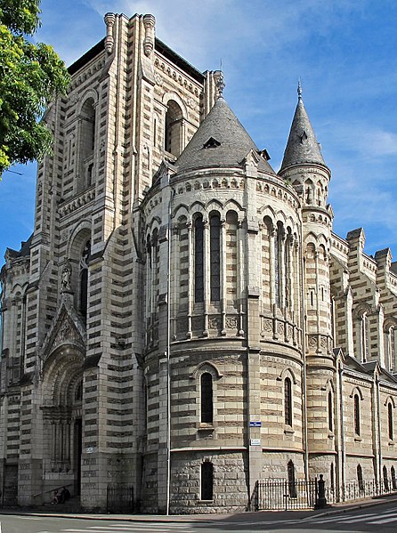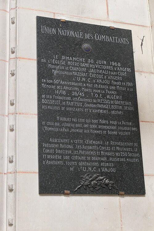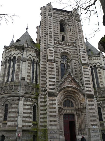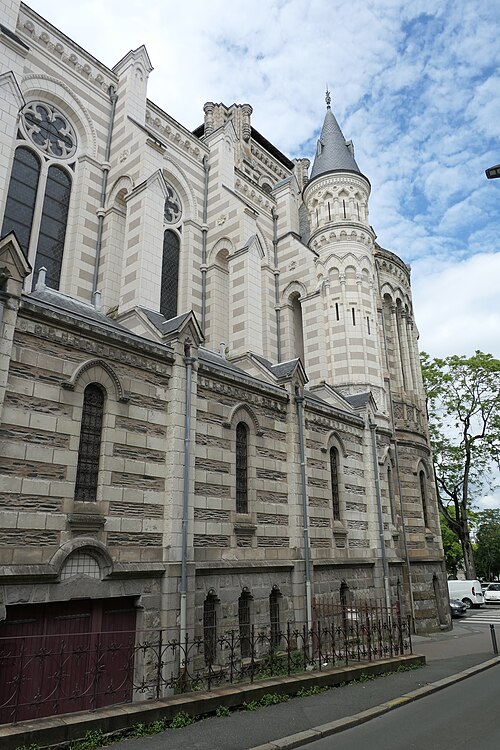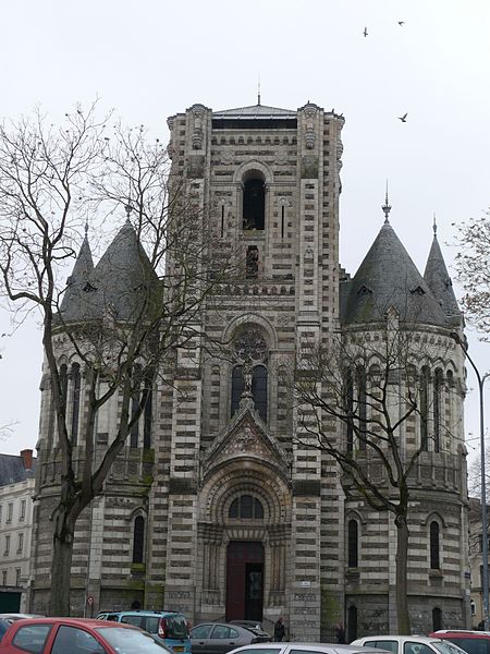L'église Notre-Dame des Victoires d'Angers se situe en centre-ville, place Louis-Imbach, dans le Maine-et-Loire. L'édifice actuel est le résultat d'une longue histoire de reconstructions et d'aménagements successifs. Une chapelle relevant de l'aumônerie Saint-Michel du Tertre fut bâtie vers 1332 à l'initiative de Jean Dubois, évêque de Dol. L'église succède aussi à une petite chapelle dédiée à Notre-Dame, édifiée au XVIIe siècle et agrandie en 1842. En 1621 la chapelle fut acquise par les oratoriens, qui firent reconstruire le transept et le chœur entre 1674 et 1677 ; une pierre de fondation retrouvée en 1899 sur la face sud du chœur atteste de ces travaux. Le clocher et les sacristies semblent avoir été aménagés après le plan de 1689. En 1802 l'édifice devint paroissial sous le vocable de Notre-Dame, remplaçant l'église voisine de Saint-Michel-du-Tertre. Entre 1843 et 1847 l'architecte François Villers remania fortement l'ensemble : il rebâtit la nef dans l'axe du chœur, créa une façade sur la rue Saint-Michel, un porche latéral sur la rue Flore et une chapelle des fonts baptismaux adossée au flanc sud de la nef ; le projet de reconstruction du clocher fut toutefois abandonné et les travaux furent conduits par l'entrepreneur François Denou. Dans les années 1880 la décision de construire une nouvelle église fut prise, financée par le legs de la paroissienne Marie Guitton, décédée en 1883. L'ancienne église fut démolie en 1898 au profit de l'édifice actuel. Après une longue période de projets engagés dès 1879, et malgré les réflexions sur le déplacement dans le cadre d'un réaménagement du quartier, la reconstruction s'effectua finalement sur le même site. Les travaux de la nouvelle église se déroulèrent entre 1898 et 1904 selon des plans attribués à Beignet et sous la conduite d'entrepreneurs dont Étienne Martin ; l'ouvrage fut achevé en 1904 sans que la flèche du clocher fût réalisée. L'aménagement des abords, notamment l'élargissement de l'ancienne place des Halles et l'aménagement des rues limitrophes, ne fut mis en œuvre qu'après 1908. L'église est une église-halle d'éclectisme romano-byzantin, organisée selon un plan en croix latine avec un clocher-porche en façade encadré de deux tours circulaires et des chapelles latérales le long de la nef. Les façades extérieures présentent une polychromie obtenue par l'emploi de moëllons de schiste alternant avec des assises de tuffeau de taille. Parmi les éléments intérieurs figurent la nef et le chœur, des vitraux représentant notamment le mariage de Marie et Joseph et la présentation de Marie au Temple, ainsi que des stations du Chemin de croix. L'église est inscrite en totalité au titre des monuments historiques depuis le 1er septembre 2006.