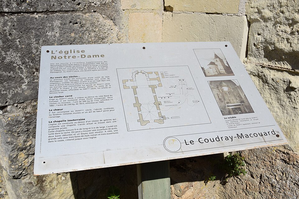 L'église Notre-Dame, également appelée église Saint-Aubin, est une église catholique située au Coudray-Macouard dans le département de Maine-et-Loire. Datant des XIIe et XIIIe siècles, elle est inscrite aux Monuments historiques. Elle se situe à l'entrée du village, dans le Saumurois, au sud-est du département. L'édifice conserve une voûte gothique angevine de la fin du XIIe siècle et abrite une chapelle souterraine. L'autel, le tabernacle et le retable sont inscrits aux Monuments historiques au titre d'objets. Construite aux XIIe et XIIIe siècles, l'église a été remaniée aux XVIIe et XVIIIe siècles. Elle est l'ancienne chapelle du château édifié par le comte d'Anjou Geoffroy Plantagenêt et était alors dédiée à Notre-Dame. Après la destruction de l'église du village en 1640 lors des guerres de religion, elle devient l'église paroissiale dédiée à saint Aubin. De l'édifice primitif subsistent principalement la voûte de type Plantagenêt à l'entrée de la nef et quelques éléments du chevet. Un retable dédié à la Vierge a été installé dans l'abside à la fin du XVIIe siècle. L'édifice a été inscrit au titre des monuments historiques le 20 septembre 1968. Pour compléter ces informations, on peut consulter les listes des monuments historiques et des églises de Maine-et-Loire ainsi que les ressources Mérimée, Clochers de France et l'Observatoire du patrimoine religieux.