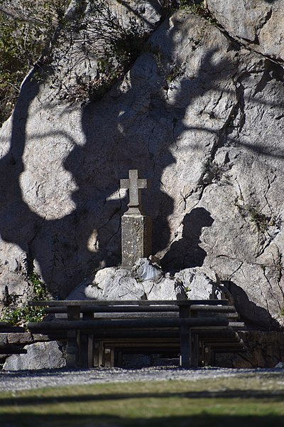 L’église Notre‑Dame‑du‑Cros, aussi appelée chapelle de Notre‑Dame‑du‑Cros, se situe au hameau du même nom, au pied de la Montagne Noire, à 1,5 km au nord‑est de Caunes‑Minervois (Aude, Occitanie), à proximité d’une carrière de marbre encore exploitée. Le lieu de culte est associé à plusieurs légendes autour d’une source réputée miraculeuse pour guérir les fièvres ; ces croyances ont nourri une dévotion durable marquée par de nombreuses processions et la présence d’un ermitage. La première mention écrite apparaît en 1119 dans une bulle du pape Gélase II, qui affirme que la « villa » du Cros et son église sont des possessions de l’abbaye de Caunes. L’abbaye a exercé une forte influence sur les habitats voisins et les textes médiévaux conservent la trace de sept terroirs liés à des églises ou hameaux pour la plupart disparus ; le terroir du Cros s’est maintenu sous la forme d’une chapelle vouée à la Vierge et à un pèlerinage. D’après D. Baudreu et l’analyse de plans anciens, une limite parcellaire enveloppante autour de l’église suggère l’existence d’un enclos sacré d’environ 56 m de diamètre, proche des enclos ecclésiaux fondés lors de la Paix de Dieu à la fin du Xe siècle. De nombreux actes notariés renseignent sur d’importants travaux d’entretien et d’embellissement aux XVIIe et XVIIIe siècles : la porte d’entrée sculptée par Jean Baux en 1660, les retables du maître‑autel et latéraux réalisés de 1681 à 1687, les retables des chapelles de 1691 à 1693, la chaire à prêcher de 1706 et la construction du maître‑autel par Étienne Cauquil entre 1748 et 1775. D’autres interventions ont lieu dans la seconde moitié du XIXe siècle et au début du XXe siècle, avec la construction de deux chapelles (dont l’une remplace l’ancienne sacristie), un remaniement de la toiture et la reconstruction partielle de l’ermitage après démolition d’une portion. Lors de la Révolution française, l’église et l’ermitage sont vendus comme biens nationaux ; achetés par Antoine Bouclet, frère de l’ermite, ils sont ensuite rétrocédés en 1797 à 300 habitants de Caunes qui en deviennent propriétaires en indivision. En 1997, les héritiers cèdent leurs parts à l’évêché, l’association diocésaine devient propriétaire et l’association « Les amis de Notre‑Dame‑du‑Cros » est créée ; en 2001, des pères passionnistes s’installent dans le presbytère entièrement restauré. Le décor et le mobilier riches en marbre témoignent de l’intense activité marbrière de Caunes du XVIIe au XIXe siècle. L’édifice est inscrit au titre des monuments historiques depuis le 28 mai 2018, et le pèlerinage de Notre‑Dame‑du‑Cros ainsi que la gorge et le ruisseau du Souc sont inscrits au titre des sites naturels depuis 1943. Le plan de l’église comprend une nef de trois travées, deux chapelles latérales de chaque côté et un chevet plat ; elle est construite en blocs calcaires rectangulaires de teinte ocre. Le porche d’entrée, côté sud, présente un portail d’inspiration classique sous lequel se trouve une niche gothique abritant une Vierge à l’Enfant polychrome du XIVe siècle ; un second porche s’ouvre sur le mur ouest.