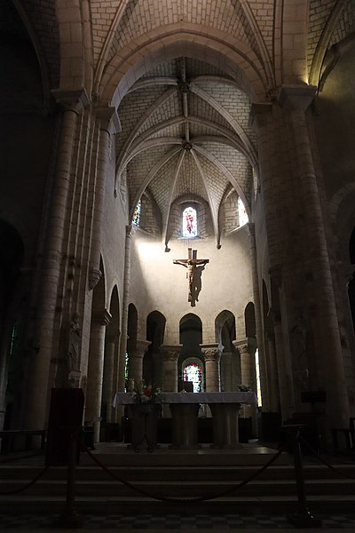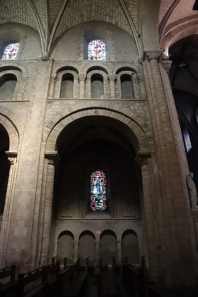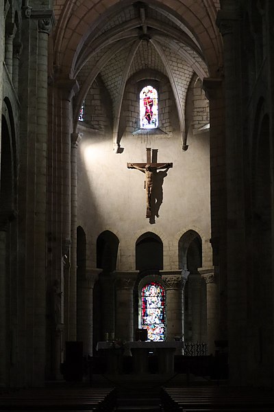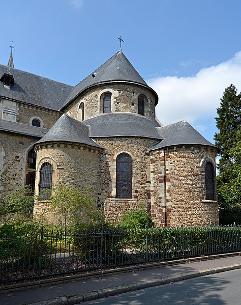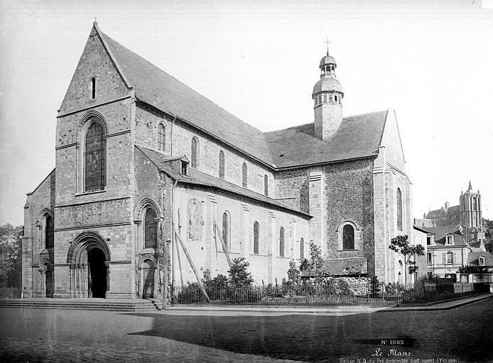 L'église Notre-Dame-du-Pré est un édifice catholique situé au Mans, dans la Sarthe, sur la rive droite de la Sarthe, au cœur du quartier du Pré. À l'origine un monastère établi au VIe siècle, l'église actuelle fut commencée aux XIe–XIIe siècles et élevée sur les restes d'un ancien oratoire que la tradition attribue à saint Julien. Ses dimensions sont de 58 mètres sur 10 mètres, ce qui en faisait alors le troisième édifice de la ville après la cathédrale et la Couture, bien qu'elle se trouvât hors des murs, dans un faubourg. Elle était l'église abbatiale de l'abbaye Saint-Julien-du-Pré, qui accueillait des religieuses bénédictines. La nef présente une alternance de piliers ronds et carrés ornés de chapiteaux romans. Le chœur, légèrement incliné vers la droite et surélevé d'environ un mètre, est bâti au‑dessus de la crypte de l'ancien monastère et s'ouvre sur un déambulatoire desservant trois chapelles absidiales. À la même époque furent construits le croisillon nord et la première travée du croisillon sud, chacun pourvu d'une absidiole, ainsi que la première travée de la nef. Les travaux se poursuivirent au début du XIIe siècle et l'abbatiale fut alors achevée, conférant au monument une grande homogénéité et un caractère essentiellement roman. Les voûtes de pierre, ajoutées au XVe siècle, modifièrent le profil intérieur de l'édifice; divers travaux et restaurations eurent lieu aux siècles suivants, dont une restauration générale au XIXe siècle qui se conclut par l'ajout d'un vaste clocher en forme de porche à l'avant de la façade. Le chœur présente une structure comparable à celle de l'église de la Couture, avec des arcs en plein cintre très surhaussés et une alternance de supports. Dans le déambulatoire, de grandes fenêtres légèrement ébrasées, encadrées de colonnettes élancées, apportent de la lumière aux chapelles; celles-ci, traitées de façon archaïque, sont voûtées en cul-de-four et dépourvues de contreforts extérieurs et de colonnes. La crypte a livré les reliques de saint Julien, transférées à la cathédrale en 1835. En 1950, Max Ingrand a réalisé un chemin de croix et des vitraux pour l'église. L'édifice fait l'objet d'un classement au titre des monuments historiques depuis la liste de 1840. L'église comporte, entre autres éléments, une nef, un chœur, la crypte du tombeau de saint Julien, une statue de saint Michel archange à l'entrée, un christ en croix et des vitraux, et elle est illustrée par des vues historiques, notamment une photographie de 1881. Parmi les abbesses, Catherine‑Marie d'Aumont est attestée (décédée en 1708). Marie‑Louise de Laval‑Montmorency (1723‑1794) quitta l'abbaye du Pré pour devenir abbesse de l'abbaye de Montmartre. Une étude d'André Mussat est consacrée à l'église Notre‑Dame‑du‑Pré.
