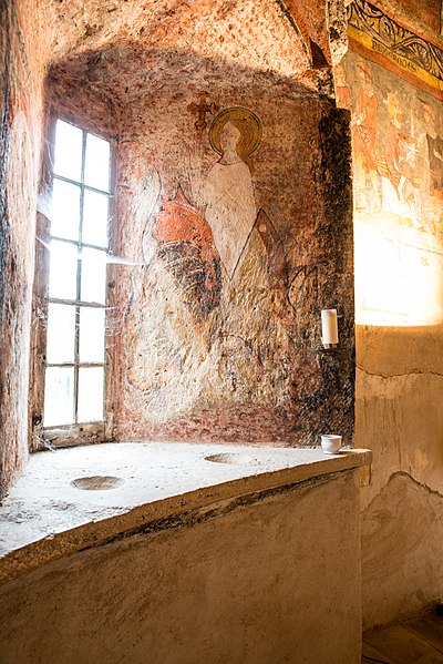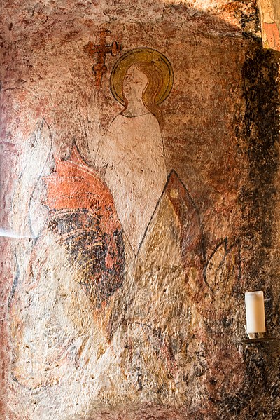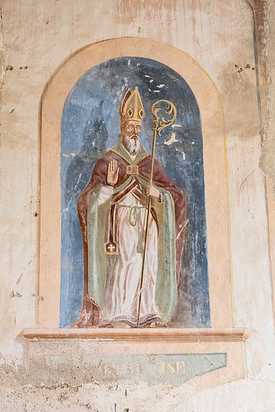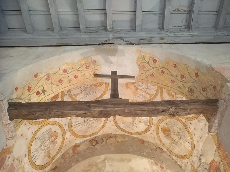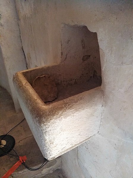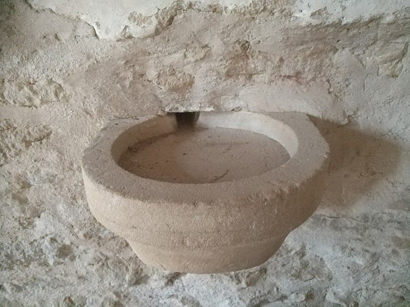 Sur une pierre d'angle de l'édifice figurent des stries et des cupules ; les croyants et pèlerins grattaient cette pierre pour recueillir une poudre utilisée comme protection du saint, comme talisman ou mélangée aux aliments donnés aux malades. Cette poudre, parfois employée avec de l'eau ou des plantes, était censée posséder des vertus curatives et témoigne d'une pratique visant à transmettre le sacré au‑delà des murs physiques de l'église.
