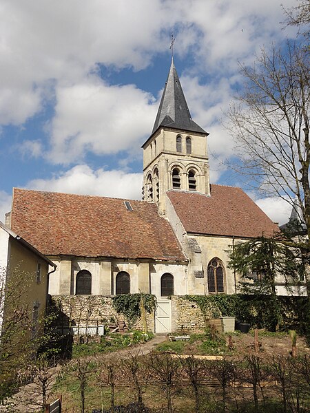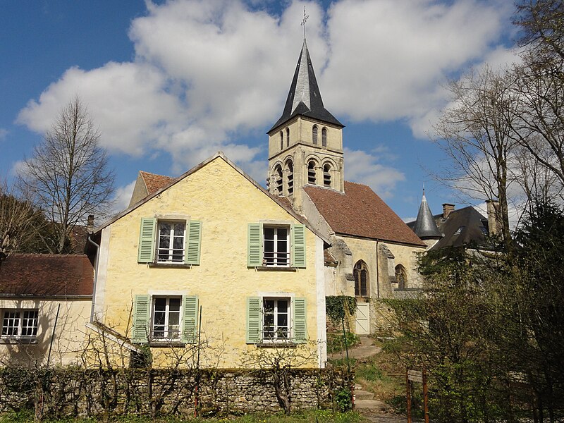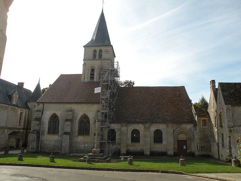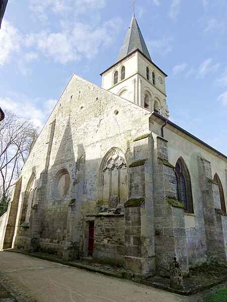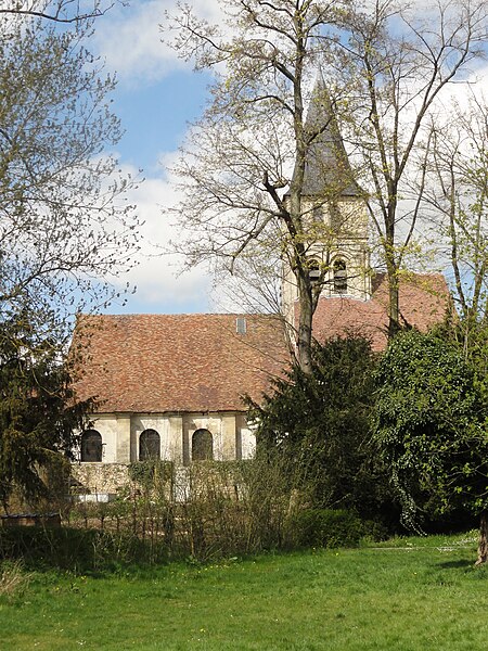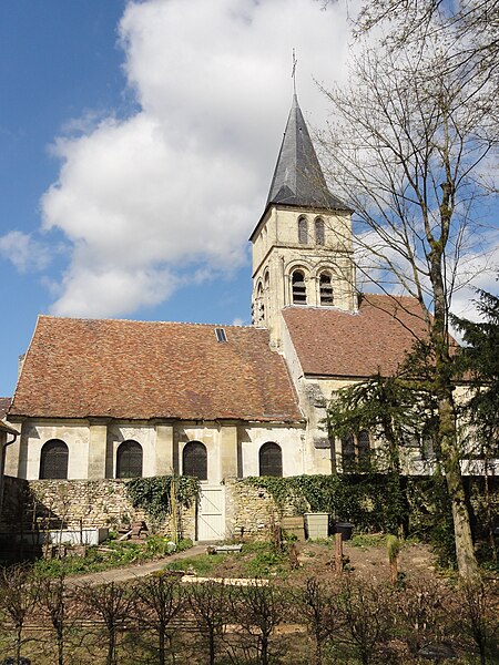 Située place Saint‑Lô sur l'emplacement d'un ancien cimetière, l'église donne sur une place engazonnée ; l'ancien presbytère vendu à la Révolution se trouve à l'ouest et le château abritant l'administration du parc à l'est, tandis que les anciens communs accueillent les collections du musée du Vexin français. L'ancien cimetière a été transféré en dehors du village sur la route d'Avernes et le terrain autour de l'église est resté clos de murs; on y trouve notamment une statue de la Vierge à l'Enfant et la croix pattée dite de l'Ormeteau‑Marie, datée du XIIe siècle et classée monument historique le 21 avril 1938. De la façade occidentale on n'aperçoit guère que le mur du bas‑côté sud; son portail est généralement ouvert mais fermé par une grille permettant l'aération.