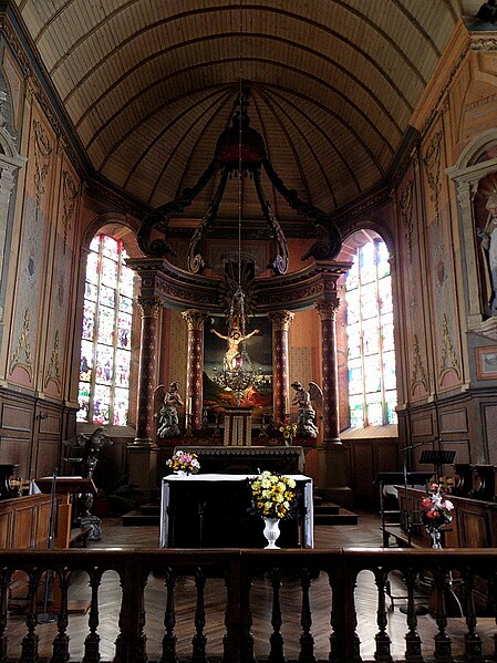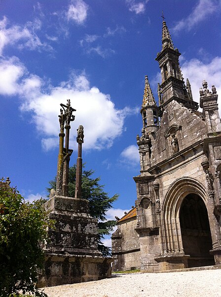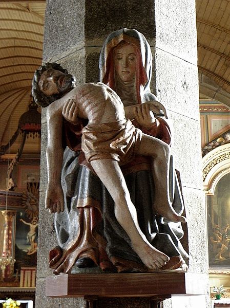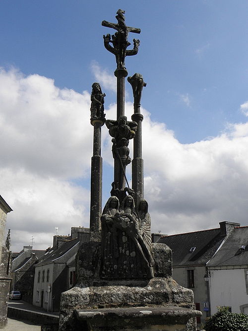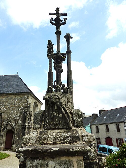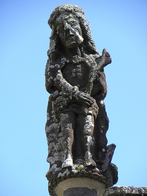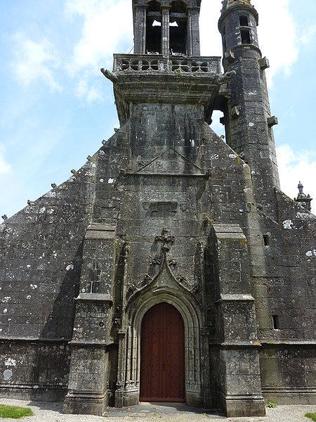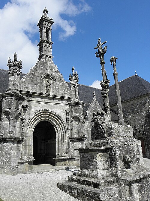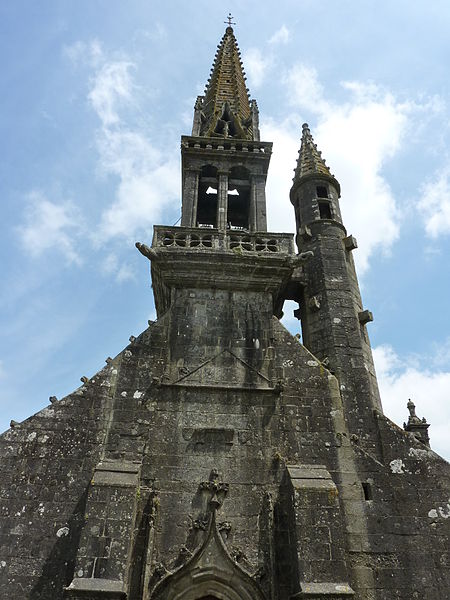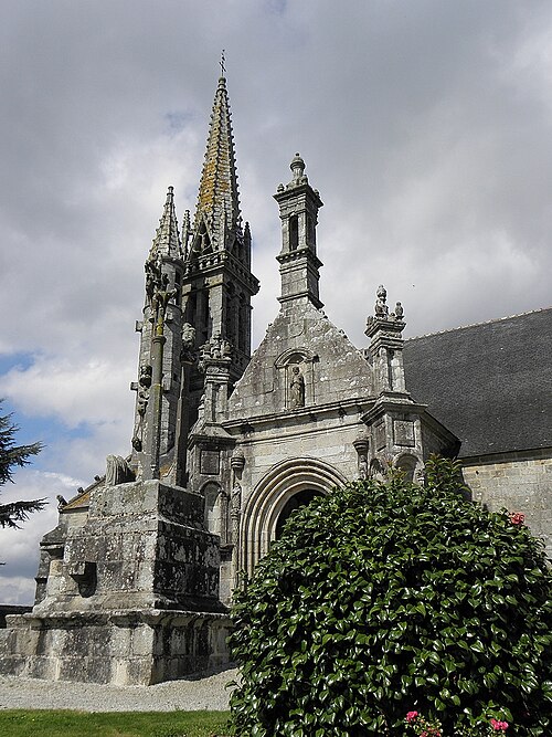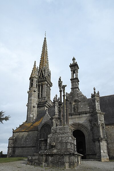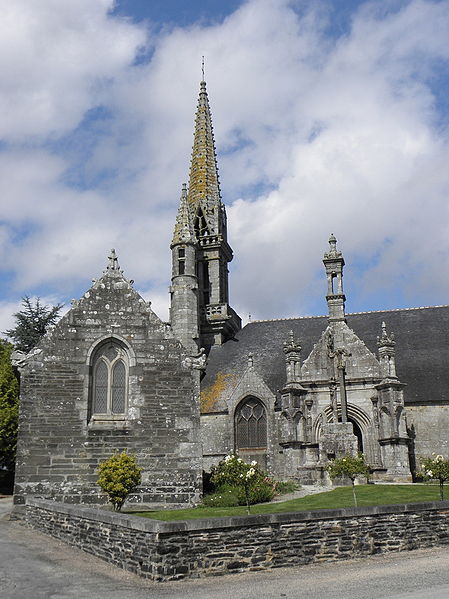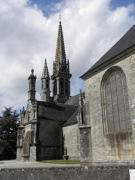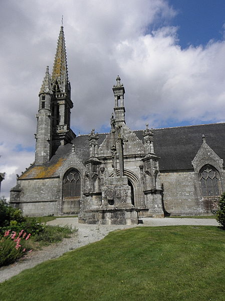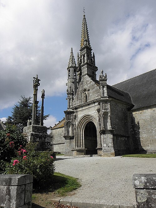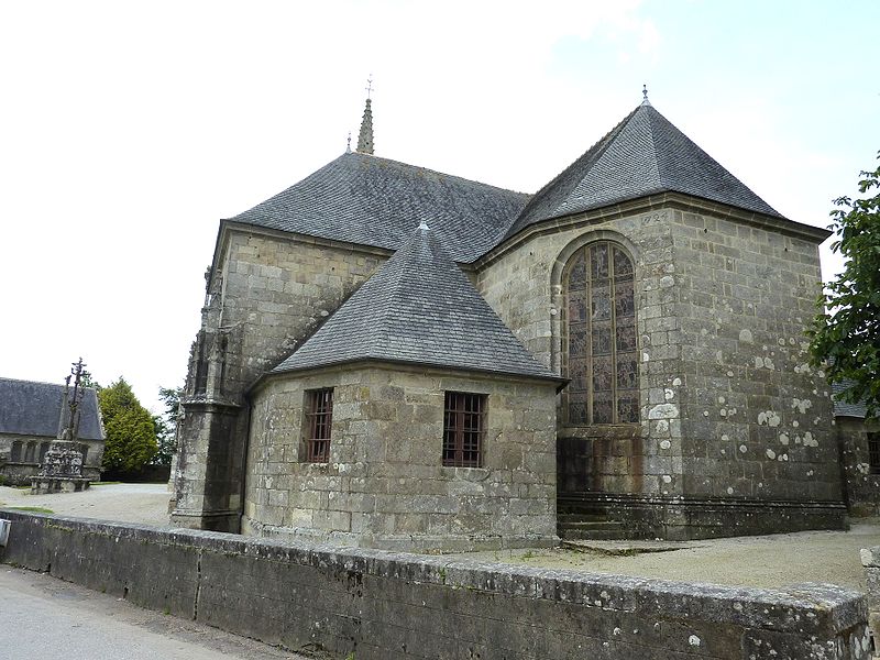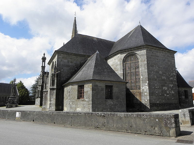 L'église Notre-Dame-et-Saint-Tugen, souvent appelée église de Brasparts, est une église bretonne en granite située à Brasparts (Finistère), dédiée à la Vierge-Marie et à saint Tugen. Elle est classée monument historique par arrêté du 21 décembre 1914 et s'inscrit dans un enclos paroissial. La construction a commencé en 1551 ; le clocher et la nef datent du milieu du XVIe siècle, tandis que le transept et le chœur appartiennent au XVIIIe siècle. La porte de la façade ouest, formant la base du clocher, porte la date 1551 et le porche méridional est daté de 1587. Le clocher de style léonard, pourvu d'une galerie et de lanternons, relève du XIXe siècle et abrite quatre cloches datées de 1904, chacune portant un nom. Le porche méridional, de facture classique, conserve douze niches avec les statues des apôtres et des peintures sur la voûte figurant les attributs des évangélistes. Près du porche sud se dresse un calvaire du XVIe siècle : au sommet figurent le crucifix et, au revers, un Ecce Homo ; plus bas, saint Michel terrasse le dragon et le soubassement porte une pietà. L'enclos comprend également un ossuaire rectangulaire du XVIe siècle, percé de six baies en anse de panier, deux portes et un œil-de-bœuf ; il a été reconstruit et présente sur ses rampants des sculptures macabres et des inscriptions dont l'une proclame "JE VOUS TUE TOUS". L'église adopte un plan en croix latine avec une nef de six travées flanquée de bas-côtés, deux chapelles formant le transept et un chœur profond à pans coupés. Le vitrail nord du chœur, daté de 1543 et restauré en 1983, représente successivement des scènes de la Passion — lavement des pieds, entrée à Jérusalem, Cène, agonie à Gethsémani, Pilate se lavant les mains, épisodes chez Hérode, moqueries, flagellation, couronnement d'épines, portement de croix, crucifixion et ensevelissement — tandis que le vitrail sud, daté de 1860, illustre divers épisodes évangéliques de la Nativité à la Transfiguration. Le maître-autel ou autel du Saint-Sacrement présente un grand baldaquin soutenu par quatre colonnes corinthiennes datées du XIXe siècle et porte une grande peinture du Christ en croix datée de 1844, encadrée par deux anges adorateurs. Deux niches encadrant le chœur abritent des statues en bois polychrome du XVIIe siècle : Notre-Dame-de-Brasparts à gauche et saint Tugen à droite, ce dernier représenté traditionnellement avec un chien et invoqué contre la rage. L'église conserve également une ancienne statuaire comprenant notamment une pietà, saint André, saint Michel terrassant le dragon, saint Herbot et saint Éloi. L'autel du Rosaire, dans le transept nord, date de 1658 et est attribué à Maurice Le Roux ; il présente quatre colonnes torses ornées de pampres et d'animaux, un panneau central montrant la Vierge remettant le chapelet à saint Dominique et sainte Catherine de Sienne, quinze médaillons figurant les mystères du Rosaire et un panneau supérieur représentant saint Joseph avec l'Enfant. Dans le transept sud, l'autel de Saint-Pierre-aux-Liens comporte une grande peinture datée de 1844. Les fonts baptismaux à baldaquin, la chaire à prêcher de style Louis XIV ornée des Évangélistes et le mobilier de la sacristie datent en grande partie du XVIIe siècle. Enfin, la pietà du calvaire et d'autres éléments sculptés témoignent de l'ancienneté et de la richesse artistique de l'ensemble paroissial.