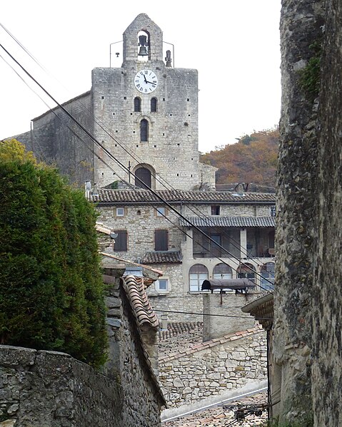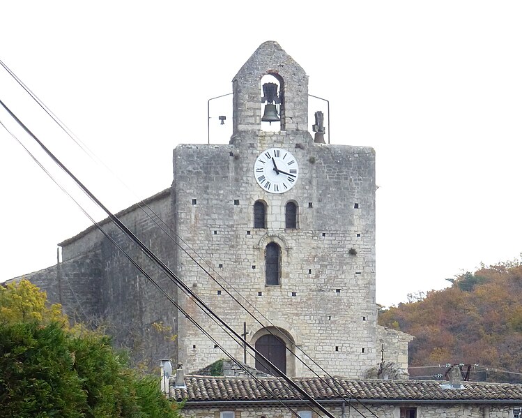 L'église romane Notre-Dame-la-Brune, située à Pont-de-Barret dans la Drôme (Auvergne-Rhône-Alpes), est un ancien prieuré dépendant de l'abbaye de Saint-Chaffre. Elle est classée au titre des monuments historiques depuis le 9 septembre 1908. Construite en pierres de taille assemblées en appareil irrégulier, l'édifice présente une façade occidentale haute et rectangulaire. Cette façade affiche de nombreux trous de boulin alignés en rangs réguliers et s'ouvre sur une baie en plein cintre surmontée d'un larmier en sourcil orné d'une frise de billettes. Au-dessus se trouvent deux baies cintrées plus petites à simple ébrasement. Une grande horloge couronne la façade, elle-même surmontée d'un clocheton à baie campanaire unique, et des supports métalliques latéraux sont prévus pour porter deux cloches supplémentaires.