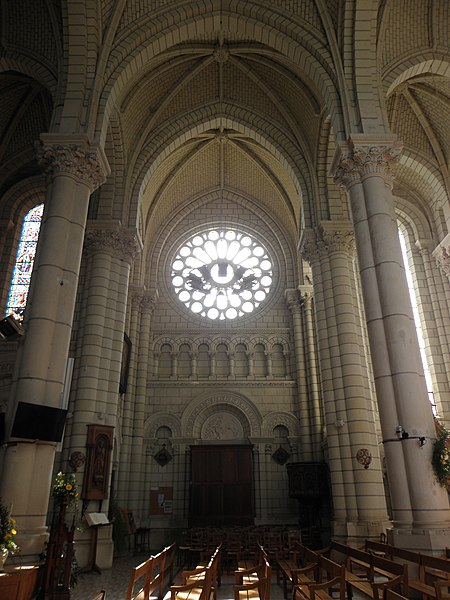L'église Notre-Dame-la-Neuve de Chemillé, située place des Perrochères à Chemillé-Melay (Maine-et-Loire), est une église-halle à trois vaisseaux réalisée de 1879 à 1884 d'après les plans de Dainville et Dussauze, s'inspirant de modèles d'architecture et de sculpture plantagenêt et roman selon les principes de l'éclectisme. À l'initiative du curé Brémon, elle a été élevée pour remplacer une ancienne église devenue trop petite et vétuste ; il a choisi d'adopter le style gothique angevin de la fin du XIIe siècle, style de transition entre le roman et l'ogival, peu courant dans la région. L'édifice comprend trois chapelles absidiales : la chapelle Notre-Dame de l'Assomption, principale et placée dans l'axe, ainsi que les chapelles du Sacré-Cœur et de Saint-Joseph, situées à gauche et à droite du déambulatoire. À mi-hauteur de la nef, deux vitraux évoquent des épisodes liés à l'histoire religieuse locale : celui de la gauche représente, selon la légende, le passage du pape Urbain II par Chemillé et montre en partie supérieure l'ancienne église Notre-Dame de Chemillé ; celui de la droite illustre la consécration de Notre-Dame-la-Neuve par l'évêque d'Angers Charles-Émile Freppel, en présence des abbés de Bellefontaine et de Ligugé, et comporte en partie inférieure la façade de l'église ainsi qu'une Vierge semblable à celle visible sur la façade. L'orgue, construit en 1914 par le facteur Joseph Merklin, a d'abord été placé dans la tribune de la nef puis déplacé et reconstruit à plusieurs reprises (1946, 1960, 1993) ; il se trouve aujourd'hui au sol dans le transept gauche. L'édifice a été inscrit au titre des monuments historiques en 2006. Parmi ses éléments remarquables figurent le clocher, le portail et la nef, ainsi que les chapelles et vitraux déjà évoqués.