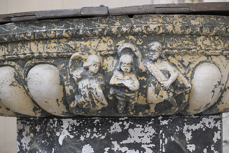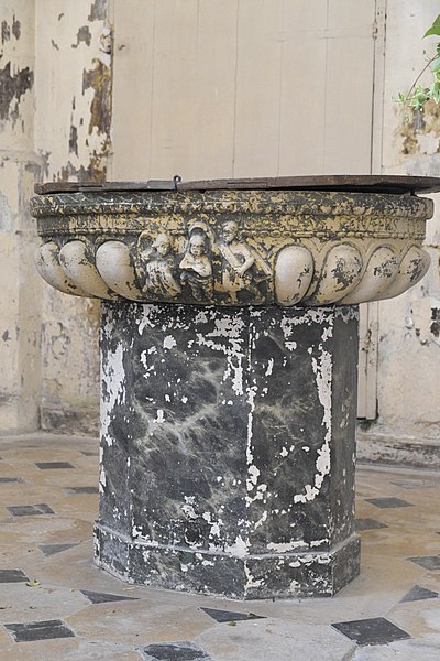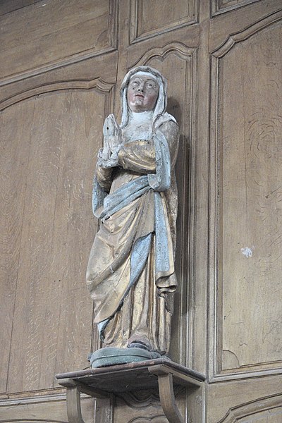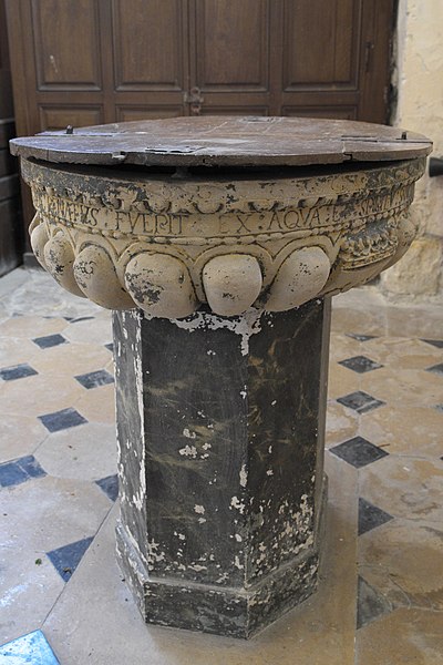 Le mobilier rassemble plusieurs œuvres datées et classées. Les fonts baptismaux en pierre, datés de 1570, présentent une cuve ovale godronnée sculptée d'un bas-relief représentant le baptême du Christ ; l'inscription latine NISI QUIS RENATUS FUERIT EX AQUA ET SPIRITU est gravée sur le bord et, au revers, figurent les armoiries de la famille de Savoie-Nemours ; ces fonts sont classés au titre d'objet depuis 1905. Une statue en bois taillé du XVIe siècle représente saint Antoine avec une cloche à la main, un cochon et le feu, signe du Mal des Ardents ; du même siècle datent aussi les statues des apôtres saint Pierre, portant une clé en fer forgé, et saint Paul, ainsi que la Vierge à l'Enfant, la Vierge de l'Éducation, sainte Marie-Madeleine tenant un flacon de nard et saint Roch montrant ses plaies à un ange. D'autres sculptures, dont saint Nicolas accompagné des trois enfants dans un saloir, saint Sébastien percé de flèches et le groupe de la Vierge de Pitié, appartiennent aux XVIe ou XVIIe siècles. Deux bâtons de procession sont installés dans des baies de la nef : l'un du XVIIe siècle représente saint Nicolas sur un bateau votif, l'autre, daté du XIXe siècle, représente saint Éloi. Dans le déambulatoire est accrochée une crucifixion du Christ légèrement mutilée.