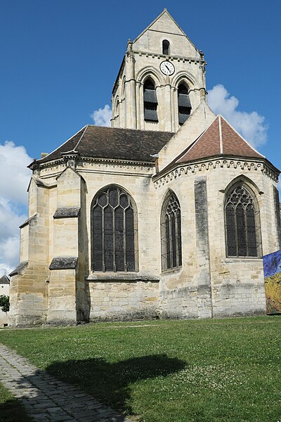 L'église Notre‑Dame‑de‑l'Assomption d'Auvers‑sur‑Oise est une église catholique paroissiale du Val‑d'Oise. Une église à cet emplacement est attestée en 1131 par un acte par lequel le roi Louis VI la donne à l'abbaye Saint‑Vincent de Senlis. La construction s'est étalée du XIIe au XIIIe siècle : l'absidiole septentrionale remonte au début du XIIe siècle, le chevet et le transept au milieu du XIIe siècle, et la nef au début du XIIIe siècle. Les ouvertures du chœur ont été remaniées au milieu du XIIIe siècle. Une chapelle accolée au sud du chœur a été édifiée au XVIe siècle et l'escalier d'accès à l'église date des XVIe‑XVIIe siècles. La reconstruction du chœur et des croisillons est attribuée à l'impulsion d'Adélaïde de Savoie ; la nef et la façade occidentale furent achevées dans la première moitié du XIIIe siècle et l'édifice devint église paroissiale entre 1222 et 1250. L'édifice a traversé les conflits sans dommages majeurs ; la principale transformation médiévale notable reste la chapelle de la Vierge du XVIe siècle. Au XVIIIe siècle et pendant la Révolution, l'église a perdu des statues et des vitraux, mais la structure et les autels ont été globalement préservés ; la cloche dite « Madeleine‑Louise » fut installée en 1733. Classée au titre des monuments historiques en 1856, elle subit des restaurations intérieures maladroites au XIXe siècle qui provoquèrent son déclassement en 1874, puis un nouveau classement en 1915 ; l'escalier d'accès a été inscrit en 1947. D'importantes campagnes de restauration ont eu lieu au XXe siècle, notamment entre 1935 et 1978 sous la direction de J. Formigé, et un vaste plan de rénovation a été lancé en 2016 après des dégâts à la toiture. La représentation de l'église par Vincent van Gogh dans sa peinture de 1890 a contribué à sa renommée internationale. L'édifice conserve des éléments romans et gothiques successifs et constitue un témoin significatif du gothique primitif en Île‑de‑France.
